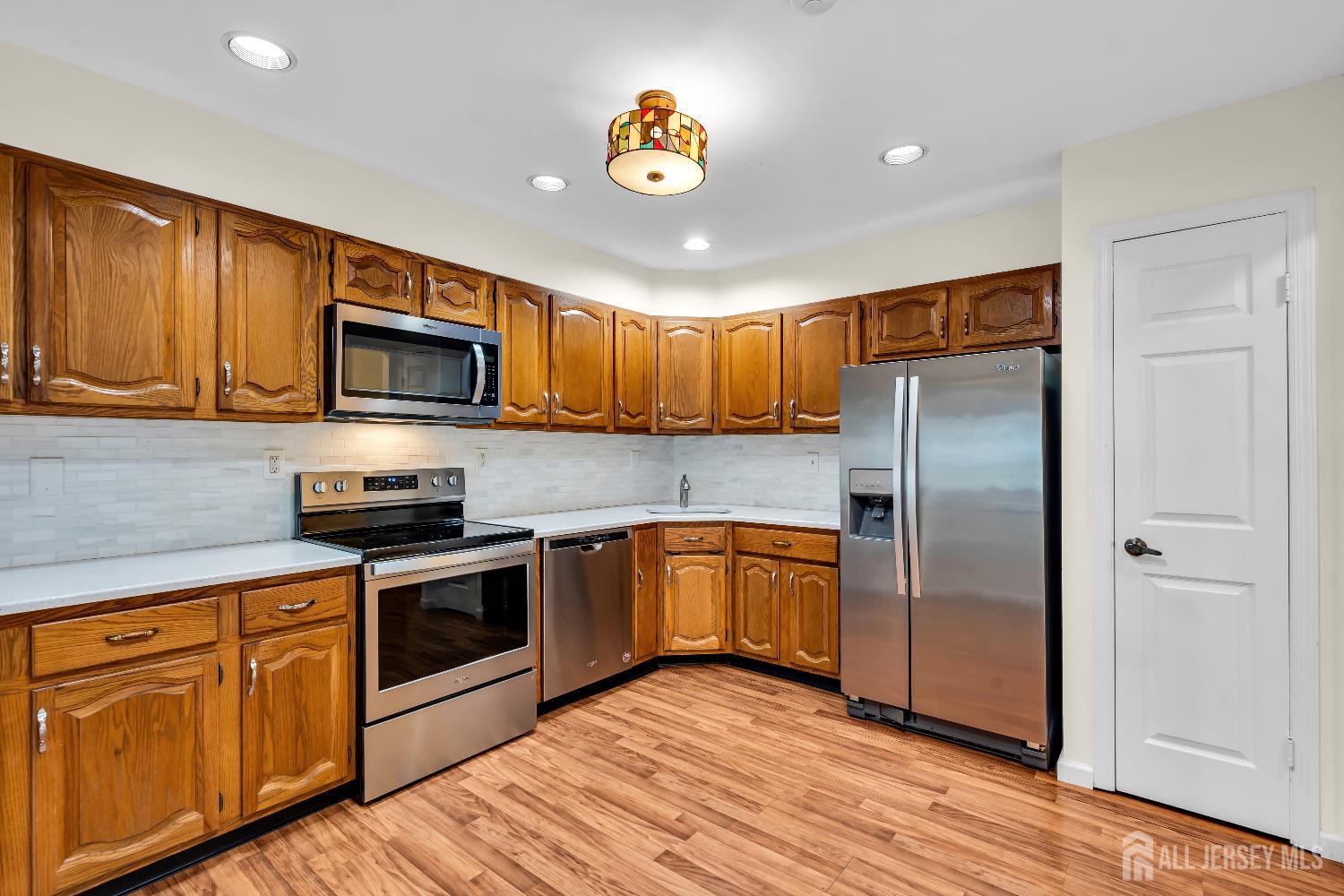 Welcome to 10 B Yorkshire Dr, a stunning semi-detached condo located in the heart of Monroe Township, NJ. This beautifully maintained home offers 1,404 square feet of thoughtfully designed living space, featuring 2 spacious bedrooms, 2 bathrooms, and a total of 6 inviting rooms. The property seamlessly combines comfort and functionality, making it an ideal space for your next chapter. From the moment you step inside the foyer, you'll be greeted by sleek laminate and tile flooring, which adds both style and easy upkeep throughout the home. The kitchen is a true culinary delight, equipped with stainless steel appliances, an electric stove, refrigerator, dishwasher, premium counters, and a pantry for added storage. An eat-in kitchen layout ensures meals are both convenient and enjoyable. The home also boasts a cozy library/den, perfect for unwinding or working from home. The secure gated access and dedicated security staff offer peace of mind. Laundry convenience is a given, with a washer and dryer located within the unit itself. Whether you're looking for modern amenities, practicality, or a blend of both, this home has it all. Don't miss your chance to own this exceptional property in Monroe Township. Schedule a showing today and make 10 B Yorkshire Dr your new address! CJMLS 2612304R