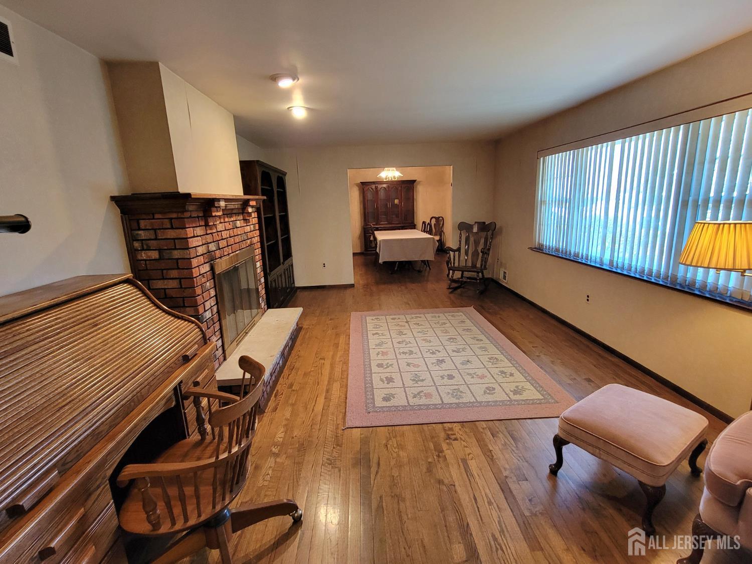 Spacious 4-bedroom, 2.5-bath ranch offering comfortable one-level living with plenty of room to spread out. This home features a double-sided fireplace that beautifully connects the family room and living room, creating a warm and inviting atmosphere. Enjoy a formal dining room and an updated eat-in kitchen complete with stainless steel appliances and recessed lighting throughout. The property includes a fenced yard perfect for outdoor entertaining, pets, or play as well as a 2-car garage and an oversized driveway providing ample parking. A full, partially finished basement offers additional living or storage space and outside entrance with great potential for customization and updates to suit your needs. CJMLS 2613747R