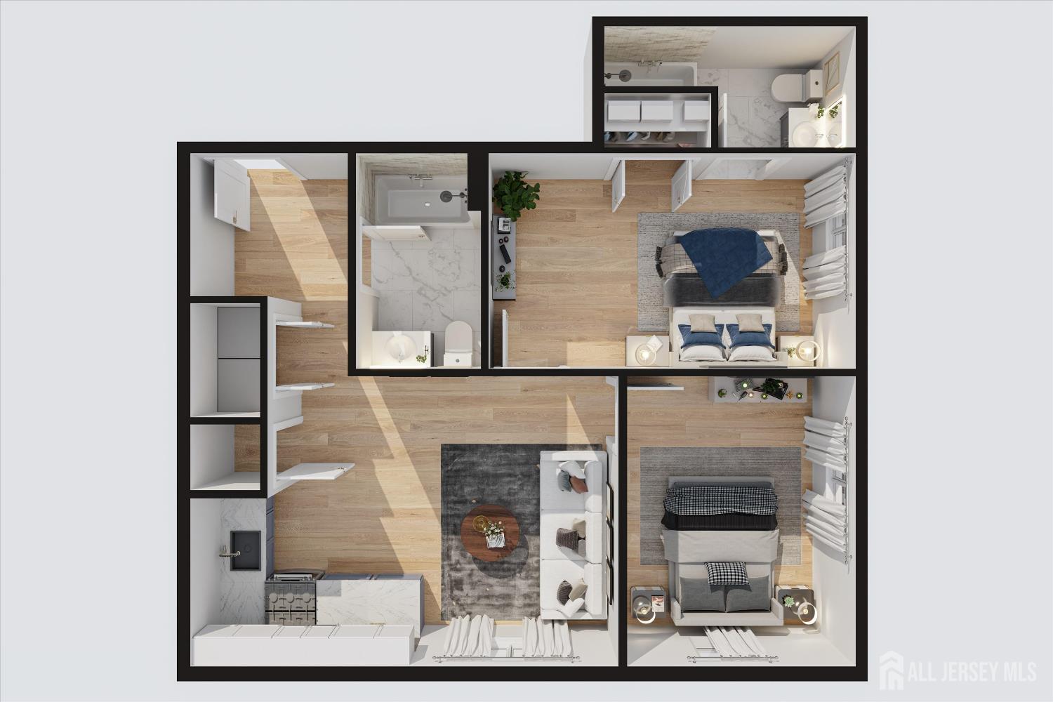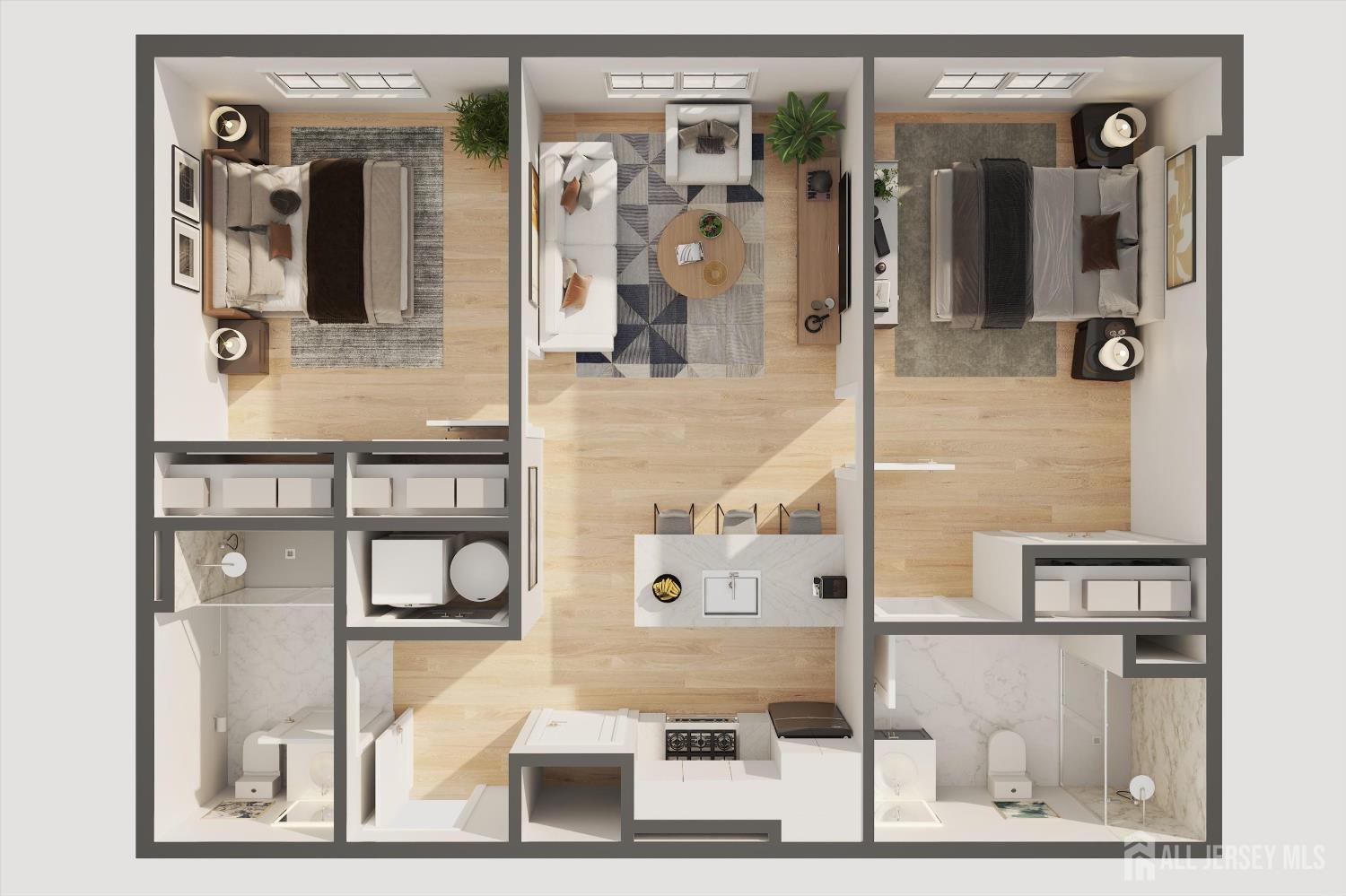 Calling all members of the Rutgers University community, working professionals, healthcare professionals, or those simply looking to lease at the heart of New Brunswick! 50 Easton Ave, a brand new 18-unit apartment building, welcomes you with 6 different 2-bedroom, 2 full-bathroom units to choose from and 2 different layouts. Enter the foyer and take the elevator straight to your 2nd, 3rd, or 4th floor apartment, because here at 50 Easton Ave is where luxury meets convenience. As you step into your residence, the open-concept living/dining room combo greets you. The kitchen awaits you with ample cabinet space, top-of-the-line stainless steel appliances, and sleek quartz countertops to bring out your inner chef. An abundance of windows invite sunlight into the apartment, creating a bright and airy atmosphere. Retreat into the primary bedroom with a full en suite bathroom and generous closet space. The second bathroom is perfectly situated outside of the second bedroom for easy access for suitmates or guests. Enjoy an in-unit washer and dryer for the utmost convenience. Hungry? Ride the elevator down to the ground floor to 50 Easton Ave's mini market with selections curated with its very own residents in mind. Just a leisurely 2-block stroll from New Brunswick Train Station, offering a swift commute to New York City and a convenient ride to Philadelphia. Your new home is ideally near major employers and hospitals, including Johnson & Johnson, Robert Wood Johnson, Saint Peter's, and the burgeoning Tech Hub & Cancer Research Center. Schedule an appointment today to experience urban living, where local restaurants, coffee shops, schools, transportation, nightlife, and more are at your fingertips. Lease Options Available: June 2026-May 2027 January 2026-May 2026 (flexible lease options between January and May) January 2026-May 2027 CJMLS 2609680R