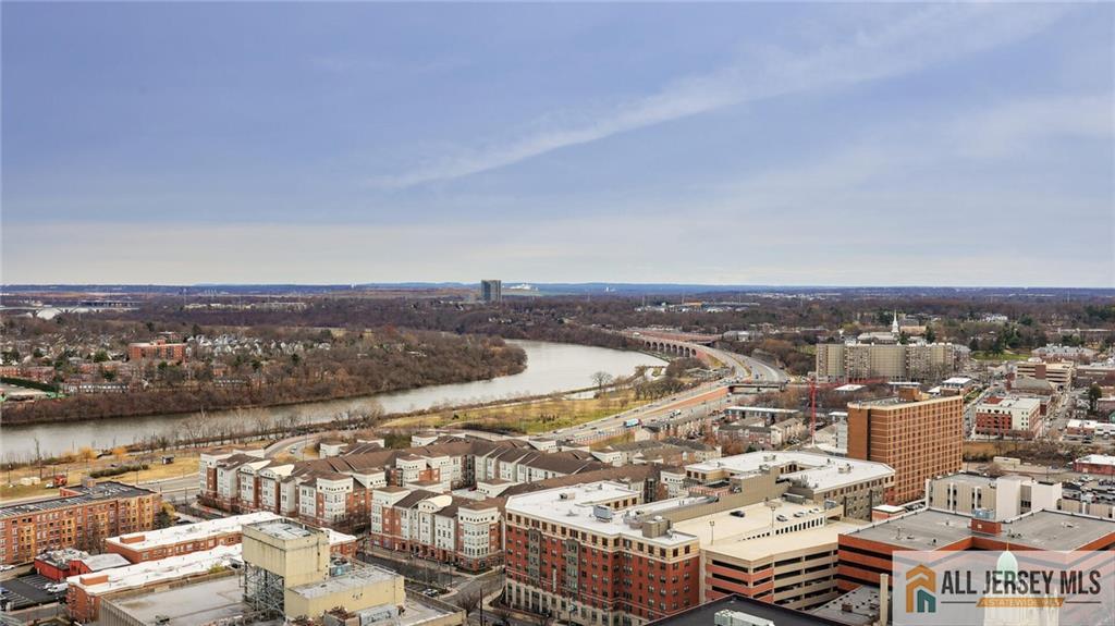 Overlooking the NYC skyline and with stunning panoramic views of the Raritan River, this luxury highrise offers resort-style livingheated indoor/outdoor pool, state-of-the-art gym, multiple lounge rooms for work/study or relaxation, plus a huge outdoor BBQ & entertainment area on Deck 6. Truly luxury living at its best. Unit 1102 one of the largest layouts in the building features two spacious bedroom suites, each with its own full bath. The oversized primary suite includes a large full bath with Jacuzzi and separate stall shower; the second suite offers its own beautifully updated stall shower bath. Brand-new gleaming hardwood floors run throughout the home. The open floor plan includes a stylish kitchen with SS appliances, granite countertops, and tall cabinetry, flowing into a gorgeous living area with 11' ceilings and full panoramic windows that flood the space with natural light. A private balcony off the living room delivers breathtaking city views, especially in the evenings. Additional perks include an in-unit washer/dryer combo and a large private storage room in the building's basement. Walk to the NYC train & Bus station. CJMLS 2660949M