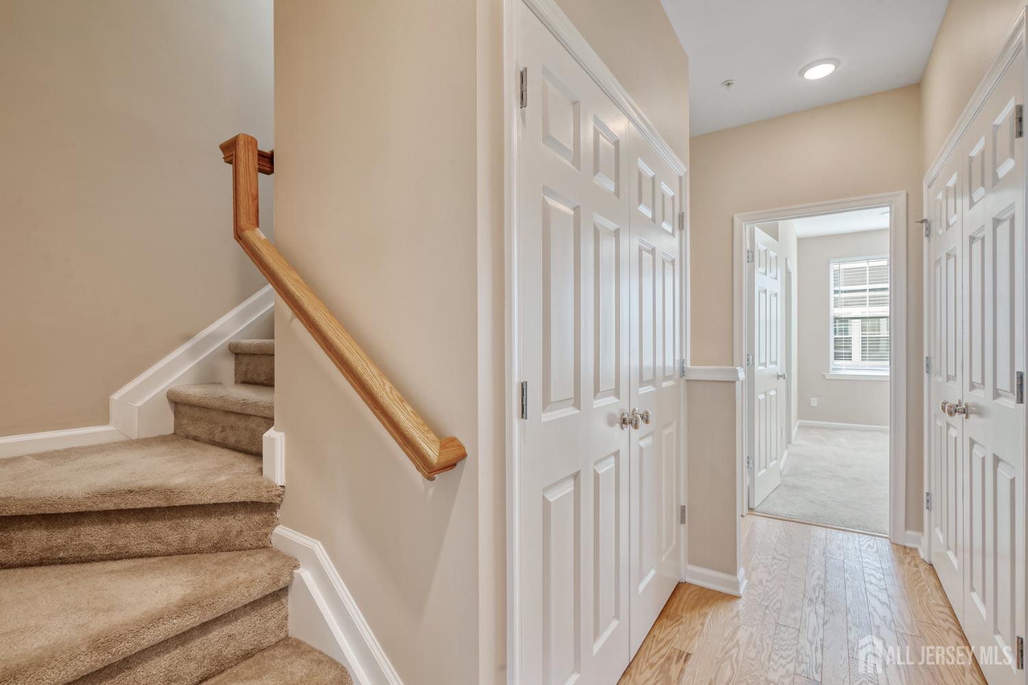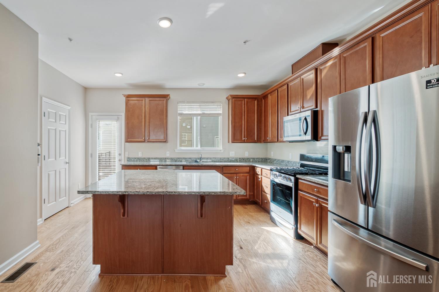 Luxurious and spacious, this exquisite newer, North Facing townhouse boasts 4-BR, 3.5 baths & 2-car garage Townhouse is located in the sought after Heights at Main Street development in North Brunswick. This Crestwind model has a bedroom and a full bath on first floor. Solid oak stairs lead to level 2 which features an open and spacious floor plan with gourmet kitchen, including beautifully upgraded maple wood cabinets and granite countertops, SS appliances with counter depth refrigerator, a large center island and powder room. 3rd level has master bedroom with master bath, 2 additional bedrooms, an additional bath and a conveniently located laundry room. Additional loft on level 4 can be used as a study, playroom or media room and leads to roof top balcony with a hookup for gas grill. Townhouse features many upgrades including hardwood flooring, upgraded tiles in the bathrooms, 220V outlet in the garage for Electric vehicle charging, Cat6 data jacks, upgraded 65 gallon water heater garage door opener, railing and balusters on the staircases. CJMLS 2601941R