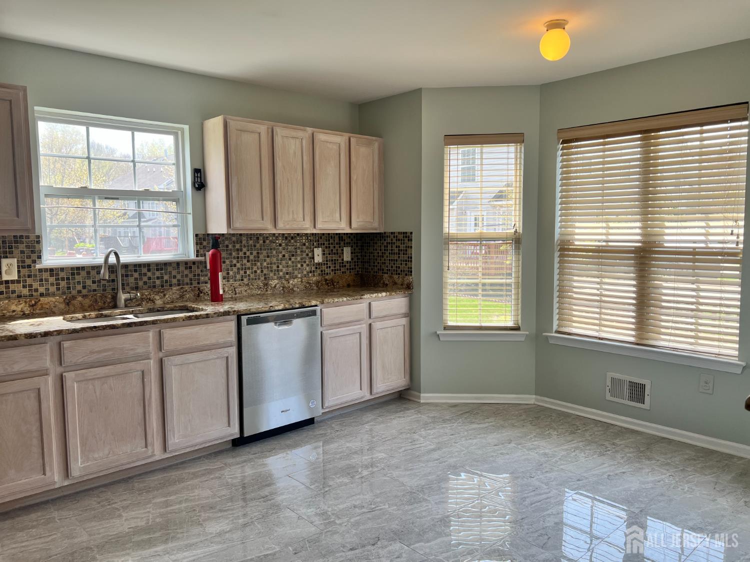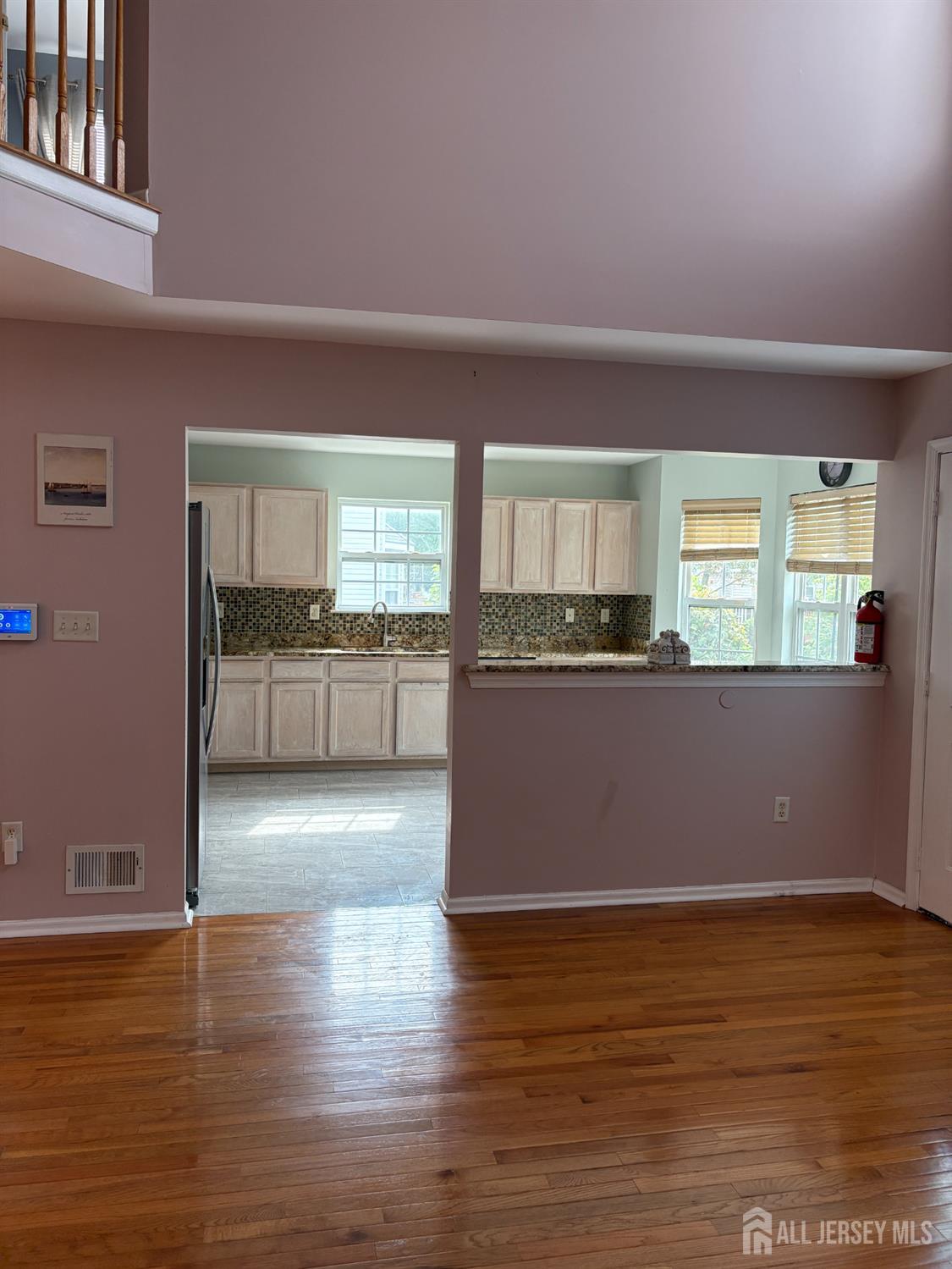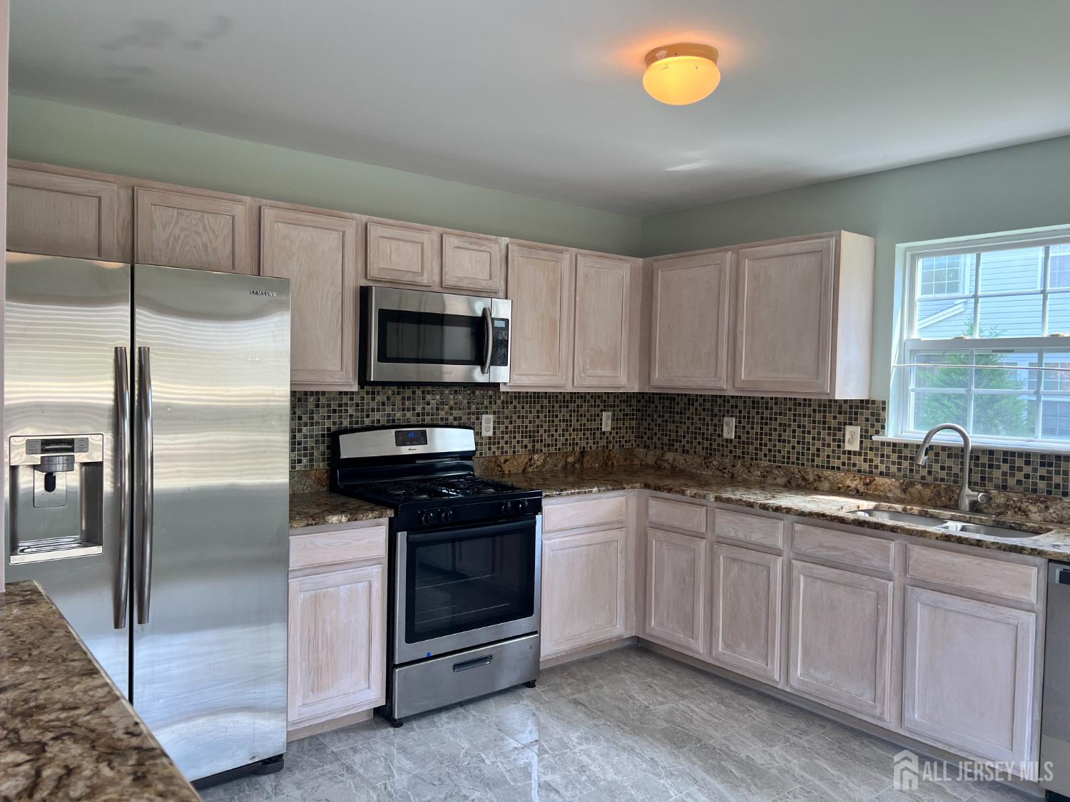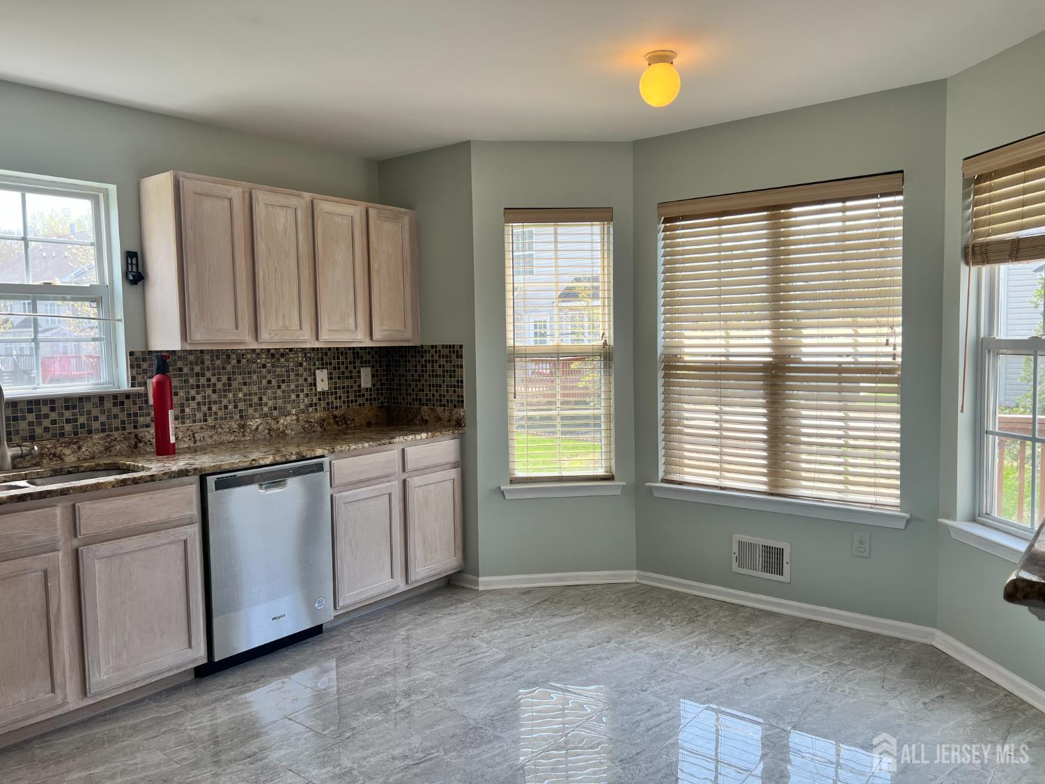 This beautifully kept end-unit townhome offers a spacious and open floor plan. The first floor features hardwood flooring, recessed lighting, formal living and dining rooms, and a dramatic double-height ceiling in the family room. The kitchen is generously sized with plenty of counter space, granite countertops, stainless steel appliances, and an eat-in area. The family room flows seamlessly onto the back deckperfect for barbecues or enjoying fresh air with your morning coffee. Upstairs, you'll find three nicely sized bedrooms. The primary suite includes a walk-in closet with built-in shelving and a private bath with dual sinks, a soaking tub, and a stall shower. A convenient laundry area is also located upstairs. Two additional bedrooms share a well-appointed hall bath. The finished basement provides versatile space for a media room, home office, playroom, or additional entertaining area, complete with wood flooring and extra storage. An attached one-car garage and driveway parking for a second car add to the convenience. Close to grocery stores, shopping, restaurants, movie theaters, major highways, and train stations, this home is ready for immediate move-in CJMLS 2605001R
