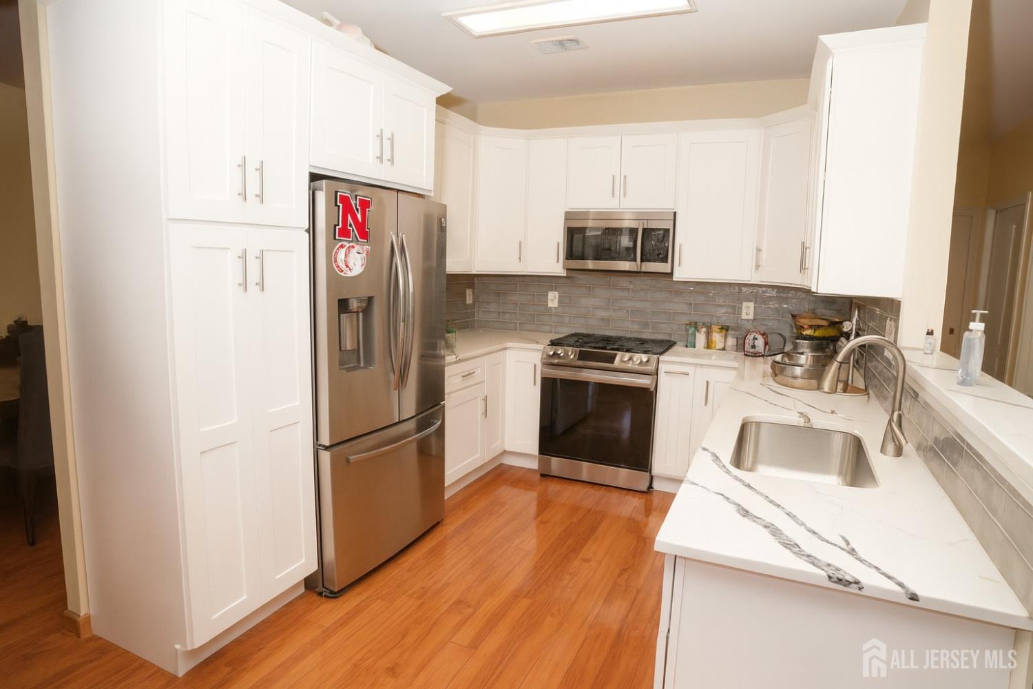 Welcome to Forest Park at 903 Swallow Ct! This stunning 4-bedroom, 2.5-bath colonial, built in 2004 and offering 2,130 sq ft, combines style, space, and convenience in the highly desirable Renaissance community of North Brunswick. Enjoy peace and privacy while being just minutes from top schools, shopping, dining, and major highways. Inside, the first floor boasts a grand foyer featuring high ceilings, spacious formal living and dining room with rich wood floors, and an open-concept layout perfect for entertaining. The eat-in kitchen features quartz countertops, 42-inch cabinetry, and newer stainless steel appliances, seamlessly flowing into the family room. A stylish powder room completes the main level. Upstairs, the expansive primary/master bedroom offers a large walkin closet and full bath. Three additional bedrooms with ceiling fans share a hall bath. A dedicated laundry room and recessed lighting throughout add modern convenience. The semi-finished basement with carpeting provides extra space for a gym, playroom, or media area. Step outside to a private backyard deck perfect for relaxing or hosting gatherings. A two-car garage and extended driveway offers ample parking, storage, or workshop potential. Seller offering the property strictly as-is. Owner-occupied and meticulously maintained, this move-in ready home has been thoughtfully updated and truly has it all. CJMLS 2605542R