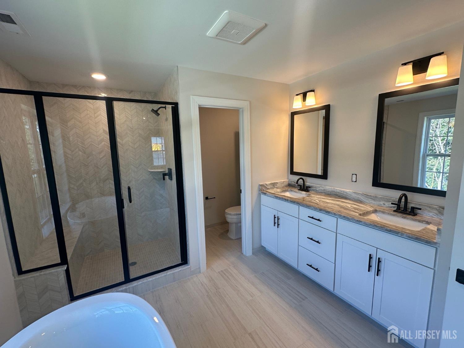Come see this exquisite New Construction home. This is the 1st of four new homes being built on a private cul-de-sac in the heart of North Brunswick. The homes feature over 2,750 square feet of living space, including 5 bedrooms 3 baths with a roughout for a 4th, a designer kitchen with high end Wolf stainless steel appliances, quartz countertops and backsplash, hardwood throughout the 1st floor, second floor hallway and primary suite, a 2-car garage, a huge optional finished basement and so much more! This home is built with quality materials to ensure Durability over Time, Low Maintenance and Energy Efficiency. The convenient location is a commuter's dream, located near Route 1,18,130, the Garden State Parkway and The New Jersey Turnpike. Close to shopping and even within close proximity to Sabella Park. This home is sure to impress!! CJMLS 2606447R