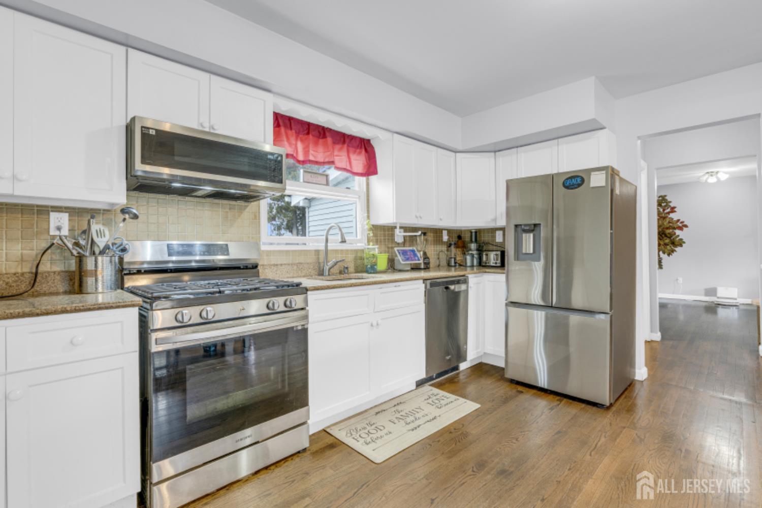 Seller is a licensed Realtor, showings will start Friday 11/7 after 4:30pm. Welcome to 1080 Ottawa Street a North East facing beautiful 5-bedroom, 3 full bath home on a quiet dead-end street in the heart of North Brunswick! This spacious residence offers over 2,000 sq. ft. of versatile living space designed for comfort and convenience. The first floor features a bedroom and full bath, ideal for guests or multi-generational living. Enjoy multiple gathering spaces including a bright living room, formal dining room open to the kitchen, and a cozy family room with brand-new flooring. A sunroom along with a dedicated laundry space and extra storage gives you the convenience of a functional floor plan. Right off the sunroom you can exit to the Trex deck (installed in 2024) providing seamless indoor-outdoor living and plenty of space for entertaining. You can also access the deck through the family room. The modern kitchen is equipped with new stainless steel appliances, granite counter tops, a pantry plus another spacious pantry in the dining room. Upstairs, the primary ensuite offers a private retreat with generous space and a newer marble full bath with a bidet. The finished basement adds even more living potential perfect for a recreation room, home gym, or office. Outside, enjoy the large new deck and the large two-car garage and expansive yard on a double lot, giving you plenty of space for outdoor activities or future expansion. Situated on a peaceful dead-end street, this property offers privacy and minimal traffic while remaining close to shopping, parks, and major commuter routes perfectly balancing tranquility and convenience. Don't miss this North Brunswick gem, schedule your private showing today! CJMLS 2607062R
