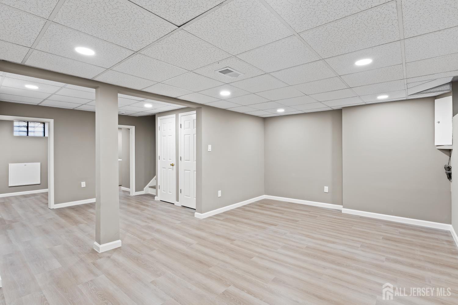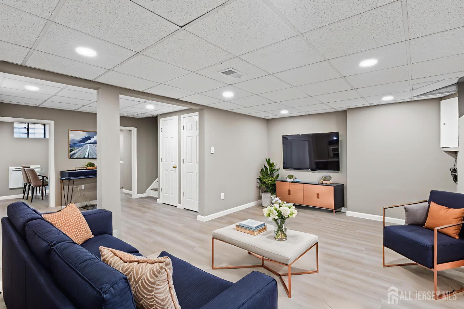 Welcome to this fully renovated 2-bedroom, 2.5-bath townhouse nestled in a quiet North Brunswick cul-de-sac community. Offering 1,420 sq. ft. of living space plus a fully finished basement, this home has been completely redone this year with a new kitchen, all new bathrooms, new flooring, fresh paint, new windows, new HVAC, and more, giving you a true move-in-ready home. The main level features an updated half bath, a stunning new kitchen with all new appliances, and a spacious living and dining area that flows right out to your private deck and open yard space. Upstairs, the primary bedroom offers two large closets and a newly remodeled en-suite bathroom. The second bedroom is oversized, with the second full bathroom conveniently located in the hallway. The finished basement provides valuable extra living space perfect for entertainment, an office, or additional storage, and includes a designated laundry area. Enjoy two assigned parking spaces, a low $75/month HOA, and close proximity to Routes 1 and 130, and all the shopping and conveniences North Brunswick has to offer. This home is the perfect blend of modern comfort, convenience, and style- a must-see! CJMLS 2608151R