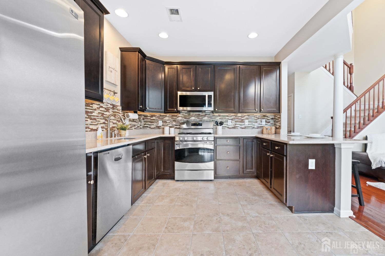 Beautifully upgraded three bedroom townhouse available for rent in Hartland Square community.Nice hardwood floor downstairs and carpet upstairs. Spacious two story family room next to kitchen. Kitchen is fully upgraded with granite countertops, stainless steel appliances etc. Upstairs there are three spacious bedrooms, two full bath rooms and laundry room. Main bedroom has full bath room with two vanities and shower. Other two bedrooms have a common bathroom. Laundry room upstairs is very convenient. Upstairs also has nice hardwood flooring in bedrooms. Basement is unfinished and can be used as entertainment space. There is a kids play area in the front. Community is close to Costco, BJ's, Target etc. There is restaurents and shoppings available in Rt 27. Jersey Ave is close by for commute to NYC. Tenant needs to have 700 plus credit score and good income. Tenant needs to get tenants insurance. Pictures from before current tenant moved in. CJMLS 2609194R