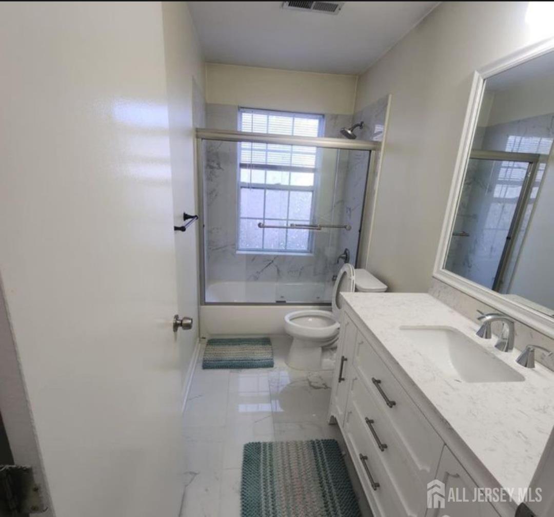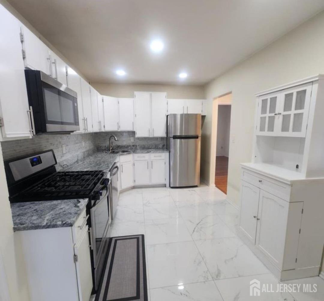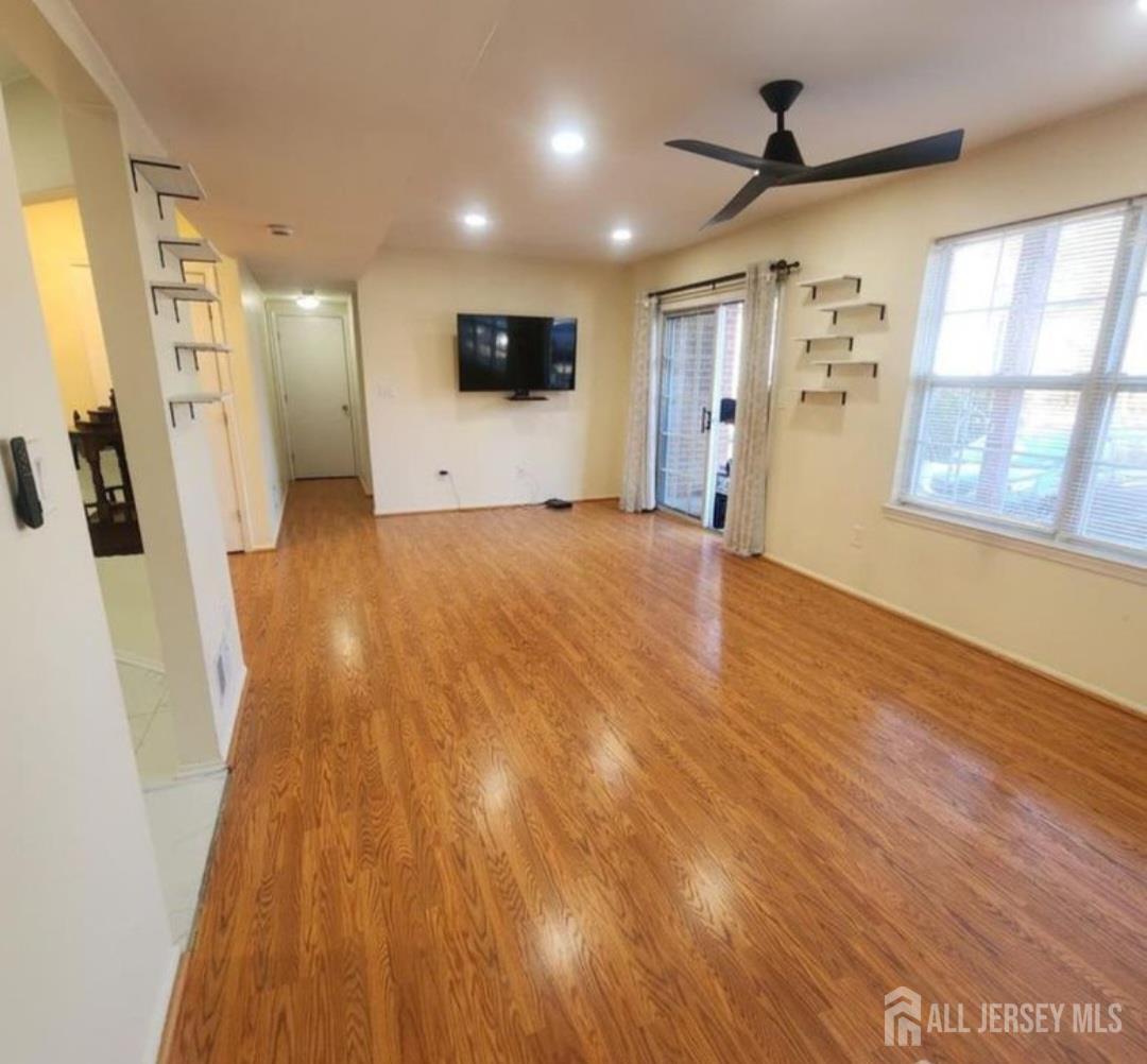 Experience refined living in this fully upgraded END-UNIT 2-bedroom, 2-bath residence in the prestigious Renaissance Village. Near shoprite, Walgreens, Day care and more. Perfectly positioned for NYC commuters, just minutes from Jersey Avenue Train Station and Route 130 Park & Ride. This elegant first-floor home features a sophisticated open layout, designer finishes, recessed lighting, and a private balcony for seamless indoor-outdoor living. The gourmet kitchen showcases granite countertops, custom backsplash, Brand new stainless steel appliances. The primary suite offers a custom California-style closet and a beautifully renovated spa-inspired bath. The second full bath is equally refined. Residents enjoy resort-style amenities including a pool and tennis courts, with water and sewer covered by HOA. A turnkey, upscale opportunity combining luxury, convenience, and lifestyle CJMLS 2610942R