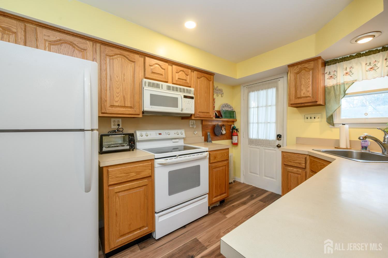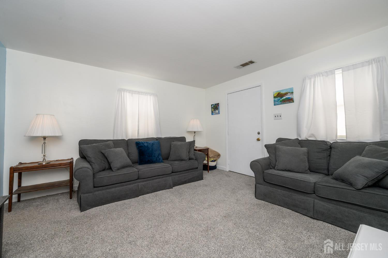 Lovely 1 Bed 2 Full Bath Ranch in desirable North Brunswick situated on a large 100x100 lot is ready and waiting for you! Meticulously maintained inside and out, just pack your bag and move right in. Enter to find a large Living Rm with plush wall to wall carpeting. The formal Dining RM is perfect for entertaining guests with a seamless flow through to the Kitchen. Galley Kitchen features recessed lighting, updated lux vinyl plank flooring, and a plethora of cabinetry for storing all of your kitchen needs. Down the hall, the main full bath with glass door stall shower and laundry + 1 generous Bedroom with a walk-in closet and its own private ensuite bath offering a tub shower. The spacious partially finished basement holds a Rec Rm, Workshop, Utilities, and plenty of storage space. Relax outdoors in the spacious yard complete with deck. 2 Car Detached Garage and oversized Driveway offers ample parking space for you and guests. Close to shopping, dining, schools, & parks + public transportation and major roads for easy commuting. Don't' wait, this one won't last. Come and see TODAY! CJMLS 2610995R