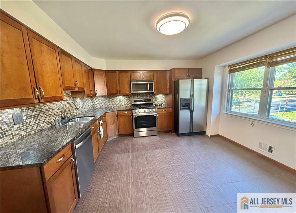 Totally renovated 3 stories townhouse with patio and large deck. back to walking pass. Ground floor come with garage, great room, laundry room, sliding door goes to fenced in patio. 2nd main floor with large living room, family room and formal dinning room, double sliding doors leads to huge balcony; eat-in-kitchen with granite counter top, exhaust leads to outside for gourmet cooking; garbage compactor, butler. 3rd floor with 3 bedrooms and 2 full bath with fully customizable toilet lid; master bedroom come with two walk-in-closets and full bath; hardwood floor, recessed lights, lots storage; jagging pass in the back. near shopping, bus and train. Just need pack and move in. CJMLS 2660567M