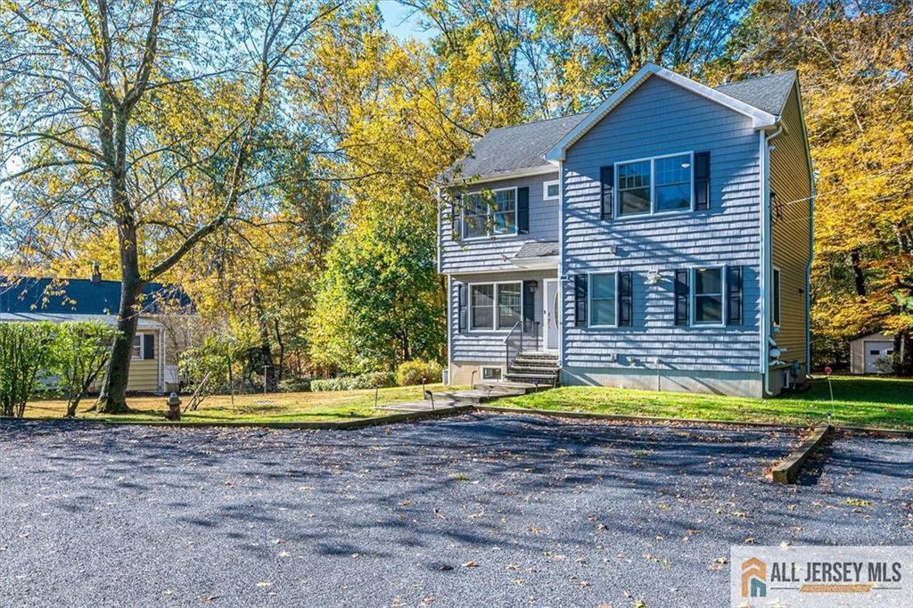 NEWER COLONIAL HOME - BUILT FROM THE GROUND UP IN 2018 - in a picturesque setting on a cul-de-sac with river views! Enjoy a front paver walkway, 3 bedrooms, an office (which could also serve as a 4th bedroom), two full and one-half baths, a high-end kitchen, a fully finished basement (featuring a daylight window that could be utilized as additional guest space), and a large deck overlooking a picturesque yard with lake views. This home was built from the ground up in 2018 by a top local builder and has 3 years remaining on the builder's warranty. You'll find hardwood in the living area, wrought iron railings, rich window, door, and baseboard trim, shaker-style interior doors, recessed lights, ceiling fans in bedrooms and office, and decorator paint colors. Upstairs, you'll find an owner's suite with a vaulted ceiling, a walk-in closet, and an ensuite bath with an oversized shower and a skylight. The fully finished heated/cooled basement with daylight window offers an excellent place for storage, working out, or additional guest space. Enjoy the feeling of a vacation home in a beautiful setting close to Farrington Lake Recreational area, yet convenient to Routes 1 and 130, the NJ Turnpike, Garden State Parkway, I-287, major shopping and dining, and commuter train service to New York via New Brunswick station. Easy to show and quick closing is OK! CJMLS 2660717M
