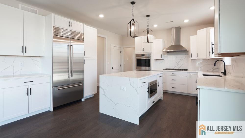 Come see this exquisite new construction homethe first of four luxury residences on a private North Brunswick cul-de-sac. This 5-bed, 3-bath home offers over 2,750 sq ft of living space, including a main-floor bedroom suite, a designer kitchen with Wolf appliances, quartz counters and backsplash, and hardwood flooring on the 1st floor, 2nd-floor hallway, and primary suite. Features include an upstairs laundry room, oversized garage, 9-ft English basement with large windows, inviting front porch with package closet, and an extensive flat backyard. Built with premium materials for durability, low maintenance, and energy efficiency. Convenient to Routes 1, 18, 130, GSP, NJ Turnpike, shopping, and Sabella Park. A stunning home sure to impress! CJMLS 2660886M