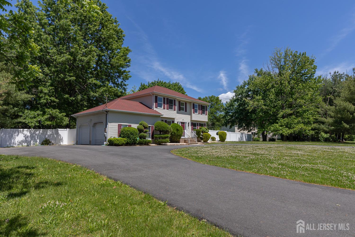Beautiful and sleek 2 story colonial in Point East area of Old Bridge. Foyer leading to LR, DR, EIK w/granite counters, sliders leading to deck. Bright Family room w/ fireplace. Full Laundry room. Large mstr. bdrm w/ large closet w/ private bathroom. Neutral paint colors, new carpet. Situated on private lot w/various trees along with mature grounds! Serene private yard with deck, newer sprinklers, newer fence with large circular driveway. Located near easiest access from all major highways, bus stop, train, restaurants & recreational activities. With Hustle & Bustle of everyday life, while on deck enjoying a cup of coffee or swinging a golf club, make this your tranquil retreat away from work home! CJMLS 2605579R