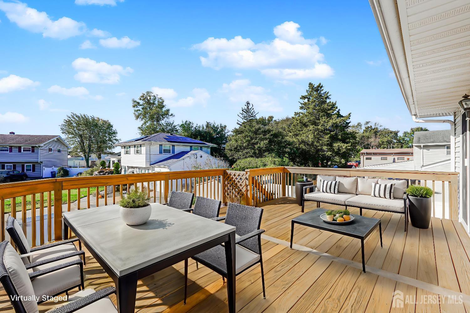 Welcome home to this light-filled 3-bedroom rental in the heart of Old Bridge! This beautifully updated upper-level home offers the perfect blend of comfort and convenience freshly painted with brand-new flooring throughout and plenty of natural light. The spacious living room features a stunning brick accent wall, cozy wood-burning fireplace, and vaulted ceilings with a skylight that fills the space with sunshine. The large eat-in kitchen with new appliances has room for a dining area and opens to sliding doors that lead to a generous deck ideal for morning coffee or relaxing at the end of the day. The primary bedroom feels like a true retreat with vaulted ceilings, a sitting area, and a walk-in closet. Two additional exceptionally large bedrooms offer flexibility for guests, a home office, or a workout space. Driveway parking for two cars, in-unit washer/dryer, and access to the yard add extra convenience. Located close to major roadways, shopping, and restaurants everything you need is just minutes away. **All utilities are included except cable. Available for immediate occupancy. CJMLS 2606192R