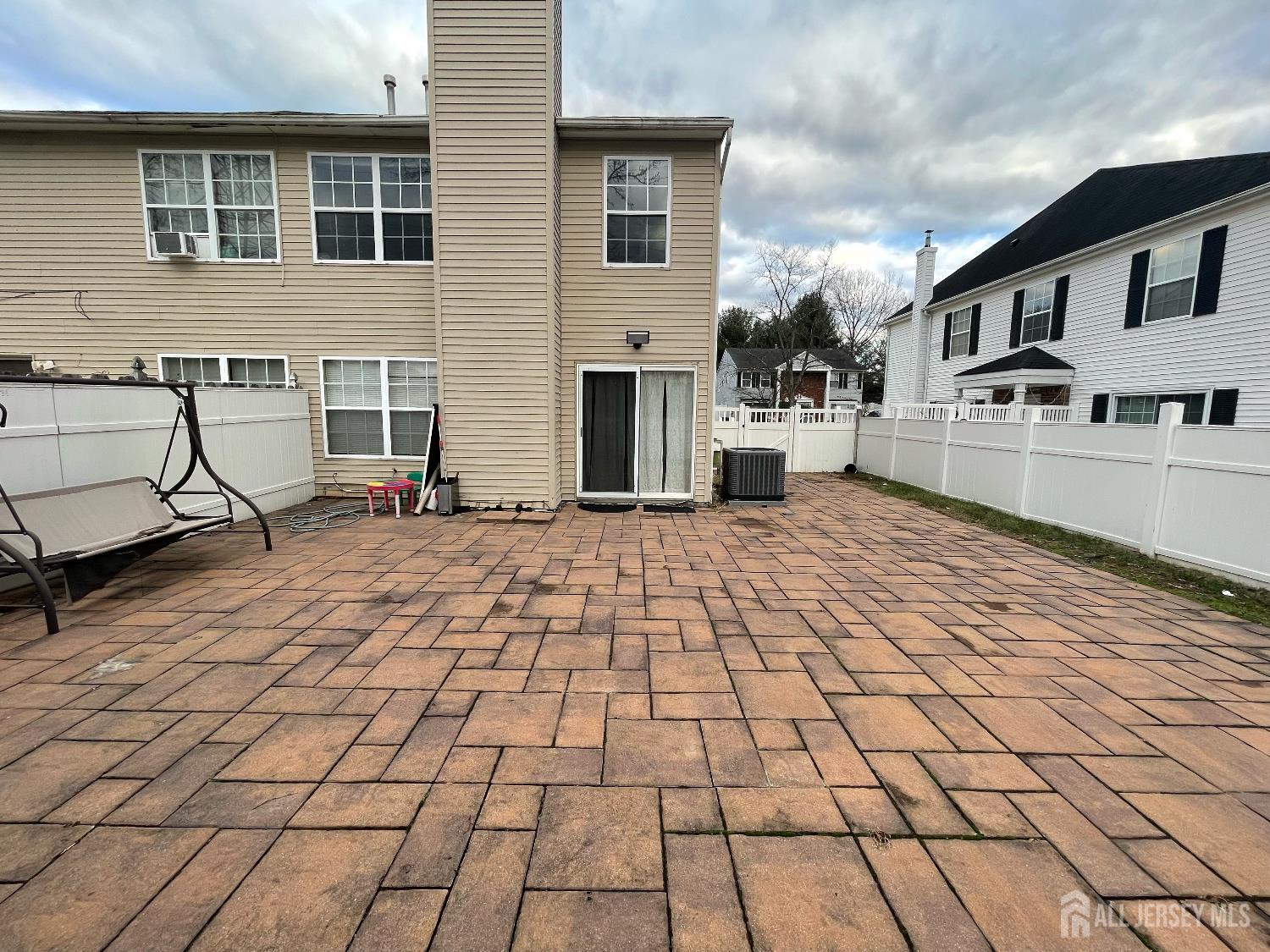 Discover this exceptionally clean and spacious end-unit duplex that offers 3 generously sized bedrooms and 2.5 bathrooms with a modern, open-concept layout. Located just blocks from the NYC express bus and minutes from a variety of shopping destinations, this home is perfectly situated for convenience. The fully fenced backyard features an oversized paver patio, perfect for outdoor relaxation and entertaining. Inside, the upgraded eat-in kitchen boasts stunning maple cabinets with cherry stain, granite countertops, a sleek glass/marble backsplash, and stainless steel appliances. A private washer and dryer are included in the unit for added convenience. The first floor showcases ceramic tile flooring throughout, while the second floor is finished with durable laminate flooring in the bedrooms and hallway. The primary bathroom features elegant marble flooring, a new vanity, and a shower stall. The hallway bathroom offers a stylish design with a half-wall of subway tiles, ceramic tub/shower surround, decorative mosaic tile flooring, and an updated vanity. Additional highlights include a newer furnace and central air unit, ensuring year-round comfort. Parking is available in the private driveway as well as on the street. Please note: The unit is currently occupied but will be delivered empty and ready for the next tenant. Don't miss out on this exceptional rental opportunity! CJMLS 2607838R