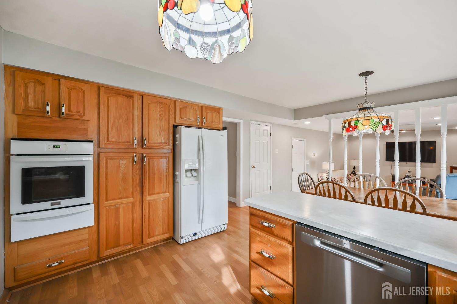 Welcome to desirable Timber Glen Estates in Old Bridge! This spacious 4-bedroom, 3.5-bath Colonial with brand new roof offers comfort, style, & flexible living. All bathrooms are newly renovated w/bright, modern finishes. The eat-in kitchen features abundant cabinetry & a full appliance package. Enjoy the step-down family room w/recessed lighting & a slider to the backyard, plus a large L-shaped living & dining room w/wood floors all perfect for entertaining. The primary bedroom includes ample closet space and an updated private bath. The finished lower level offers a large rec room, kitchenette area, and full bath ideal for guests or extended living.Convenient to schools, shopping & commuting routes this move-in ready home is a must see! CJMLS 2608121R