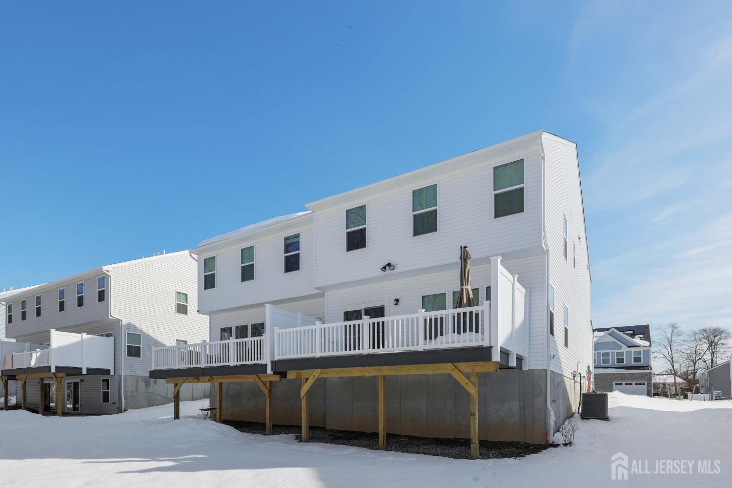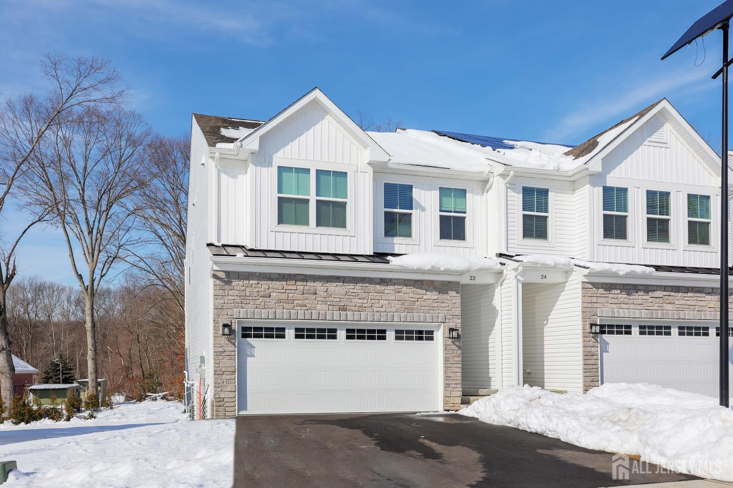 Welcome to luxury living in this brand new 2025-built Thornewood model townhome, perfectly positioned on a premium wooded homesite in the highly sought-after Old Bridge Pointe community. This isn't just a home it's a lifestyle. Featuring 3 bedrooms, 3 full bathrooms, and 1 half bath, this home was designed with both comfort and modern elegance in mind. The open-concept layout seamlessly connects the kitchen, dining area, and great room, creating the perfect setup for entertaining, hosting, or simply enjoying everyday living. The kitchen is the true showstopper. Outfitted with sleek-whte shaker cabinets, quartz countertops, high-end stainless steel appliances, dual ovens, a vented hood, and a massive center island, this space was built to impress. The tumbled marble backsplash adds just the right touch of sophistication, while stylish black hardware and fixtures tie everything together beautifully. Luxury vinyl plank flooring spans the first level for durability and style, and oak stairs lead you upstairs to a versatile loft space perfect for a home office, reading nook, or play area. The primary suite is a true retreat. Enjoy a spacious wlk-in closet and a spa-inspired en suite bath featuring dual vanities with quartz countertops and a large shower enclosed in a sleek frameless glass door. The additional bedrooms are generously sized and offer privacy and comfort for family or guests. The fully finished basement adds incredible flexibility, complete with a full bath ideal for guests, a media room, gym, or extended living space. Step outside to your private back deck overlooking peaceful woodlands your own quiet escape after a long day. Location? You're close to everything. Shopping, dining, malls, mass transit, and even a brand-new Tesla dealership just up the road. Convenience meets lifestyle in every direction. Old Bridge Pointe offers the perfect blend of nature, accessibility, and upscale living. If you've been waiting for new construction without the wait this is it. Schedule your private tour today and come see it for yourself. Welcome home. CJMLS 2611564R