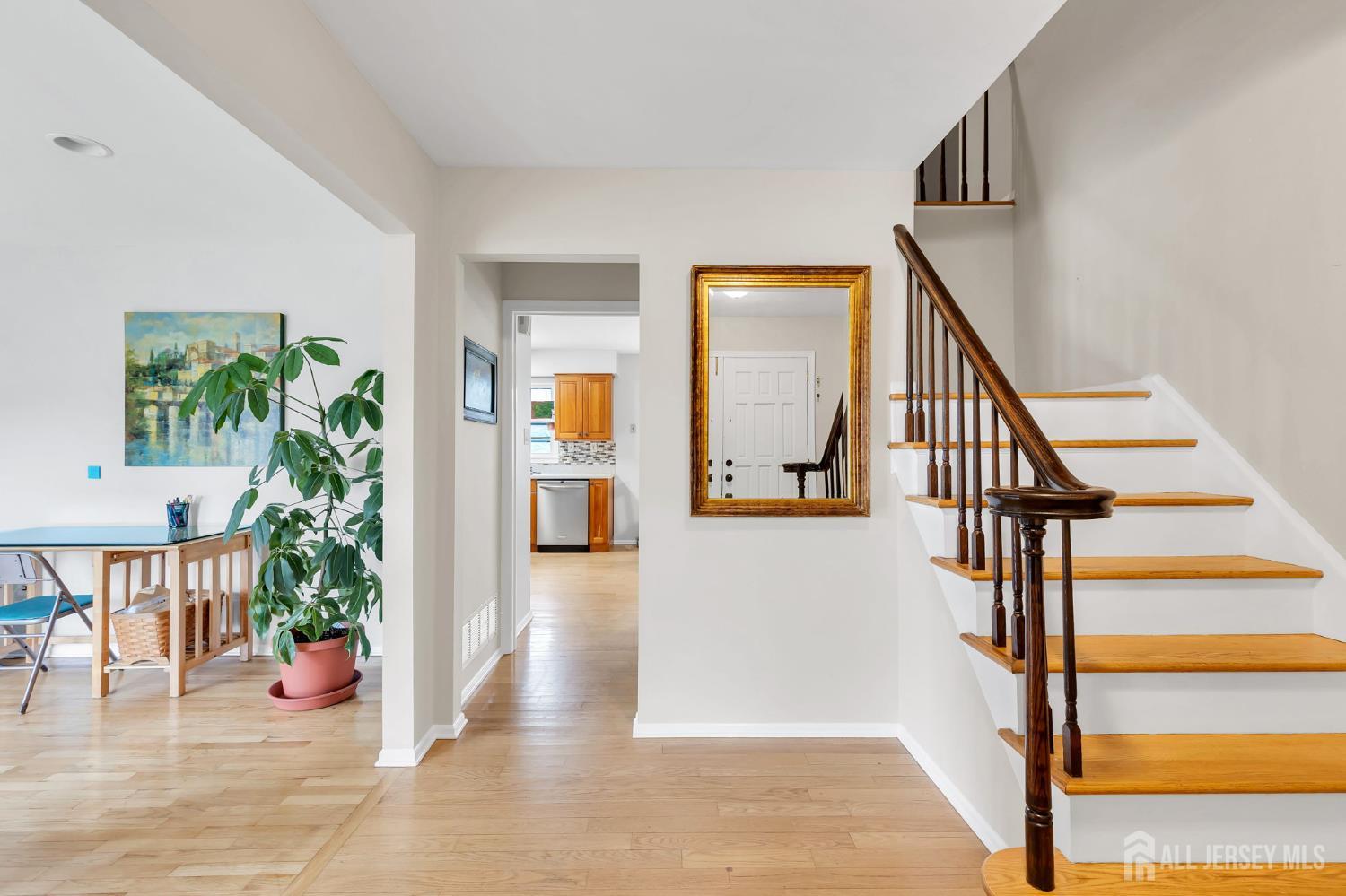 Spacious 4 Bedroom, 1.5 bath colonial with bonus room on first floor for use as office or den. Perfect center hall colonial flow. Stunning wood floors and laminate flooring throughout the whole home, with ceramic tile in the bathrooms. Great fenced yard, perfect for summer BBQs with the built in natural gas grill. 2 car garage, and full basement just waiting to be finished.CJMLS 2613043R