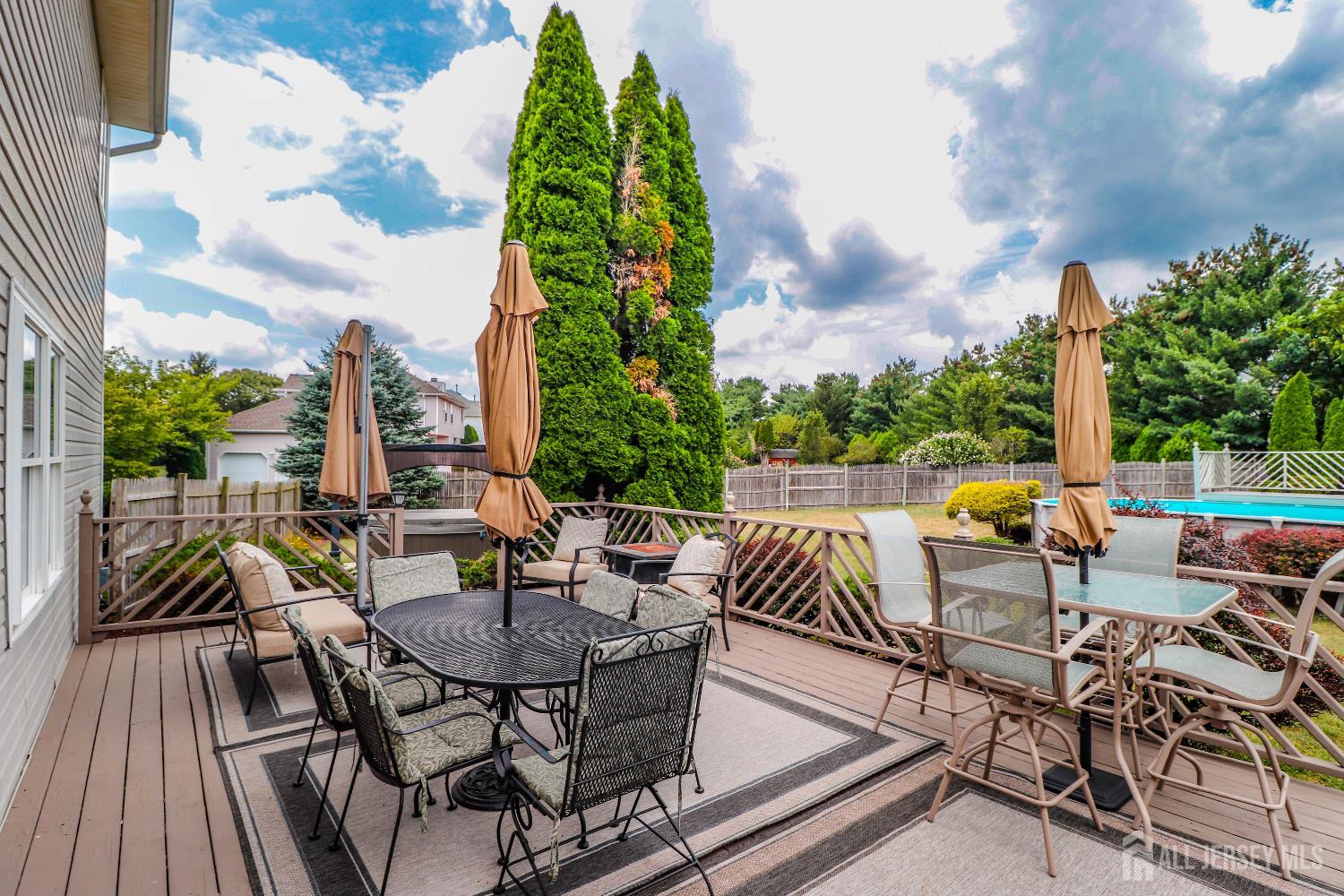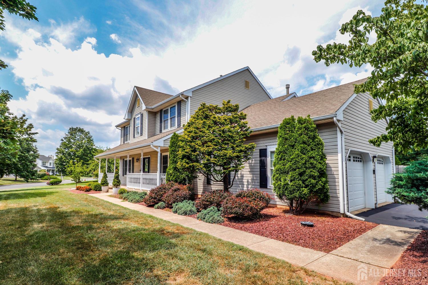 Beautiful Colonial at Wildflower Ridge! on a 3/4 acre wooed lot!, 2 story foyer, sunken living room, Gas fireplace with Marble surround and glass doors, Custom Pella front door and side transoms overlooking covered porch!, Granite kitchen with S.S. appliances/tile backsplash/Crown and Light rail moulding/Glass front cabinets and tile floor, Upgraded bathroom vanities/tile and clear view shower door in master bedroom with soaking tub!, 2 zone Heating and cooling, Anderson sliding door overlooks deck and above ground pool and fenced landscaped yard with storage sheds and hot tub, side entry garage, Timberline roof, Upgraded windows and garage doors, Full extra height basement, Easy commute to Rutgers College and Prep/Charter Schools/Saint Peters and Robert Wood Johnson Hospitals, must be seen! CJMLS 2605663R