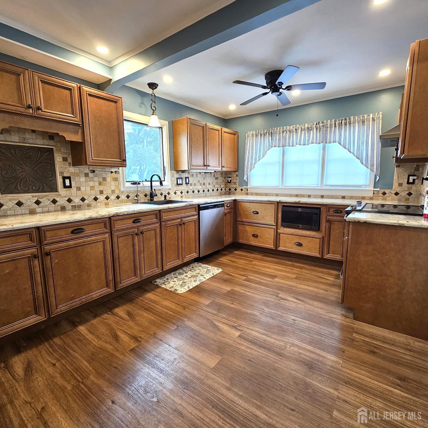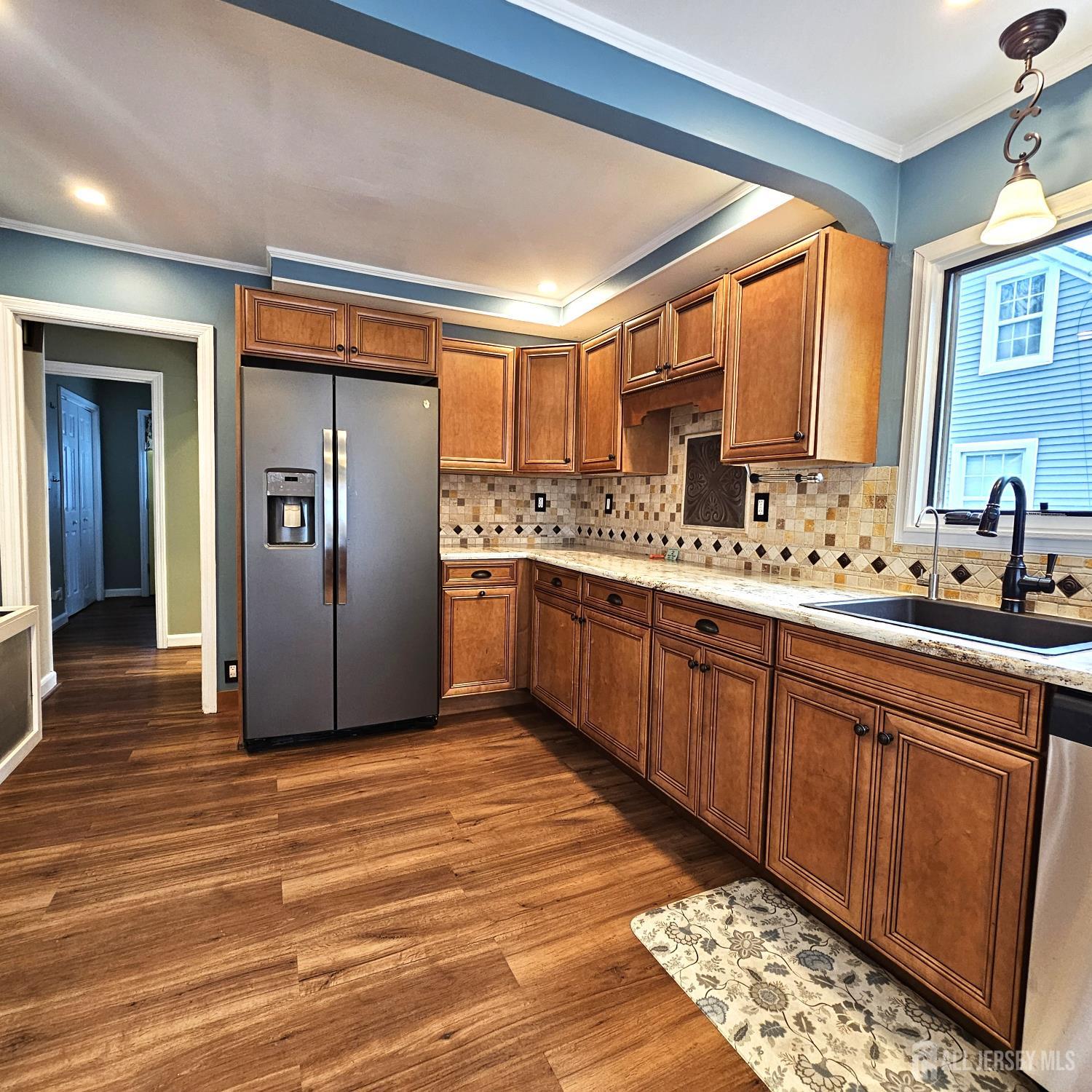 Move in ready, updated 4 bedroom, 2 full bath property available. This property features recessed lighting, an open floor plan and vinyl plank flooring. Kitchen offers custom cabinetry, tiles backsplash and slate appliances. Laundry room is conveniently located on the 2nd floor. Backyard is fenced in, has lovely paver patio area, gazebo and garage. The partially finished basement is great for extra living space. CJMLS 2605878R