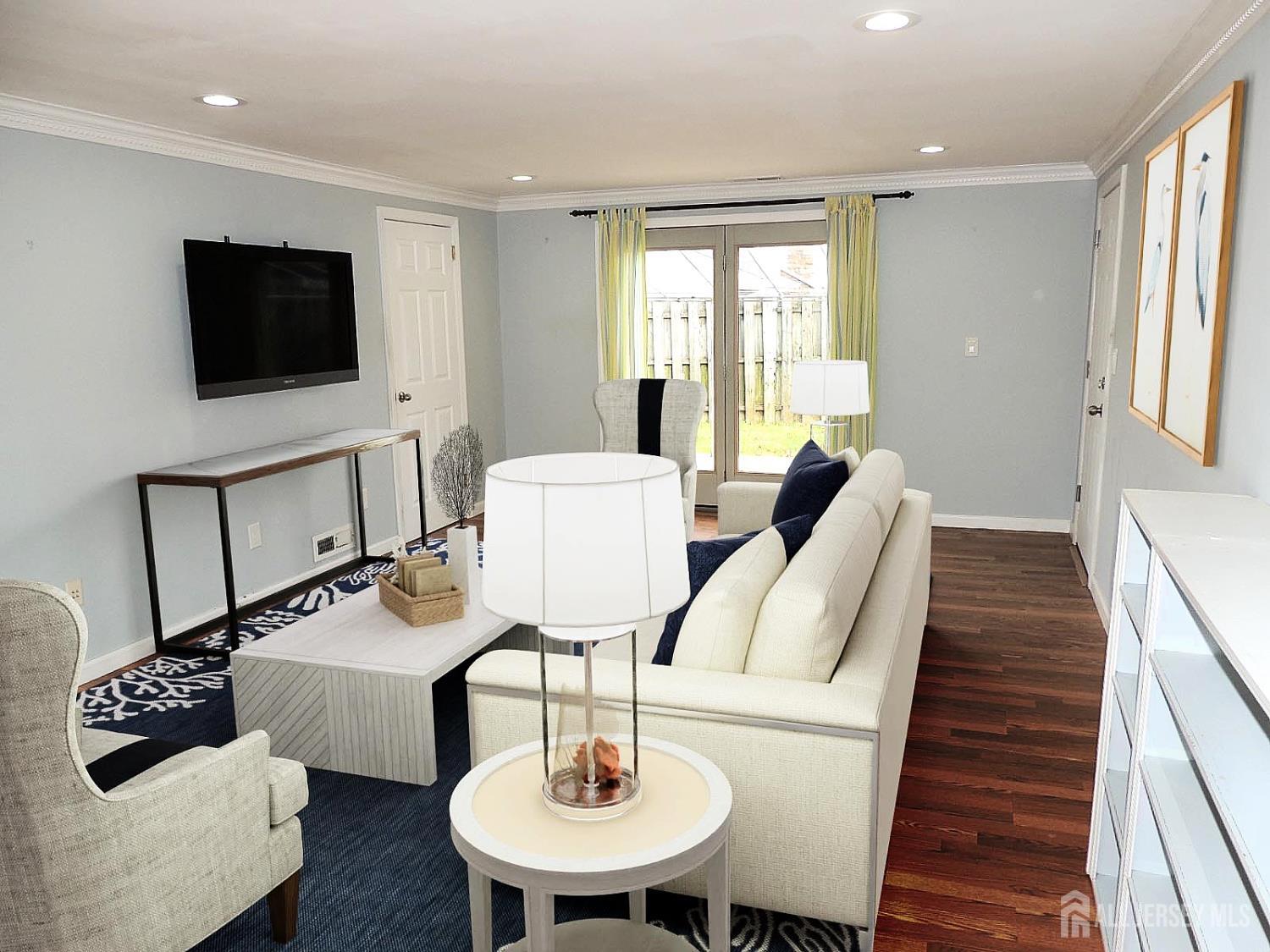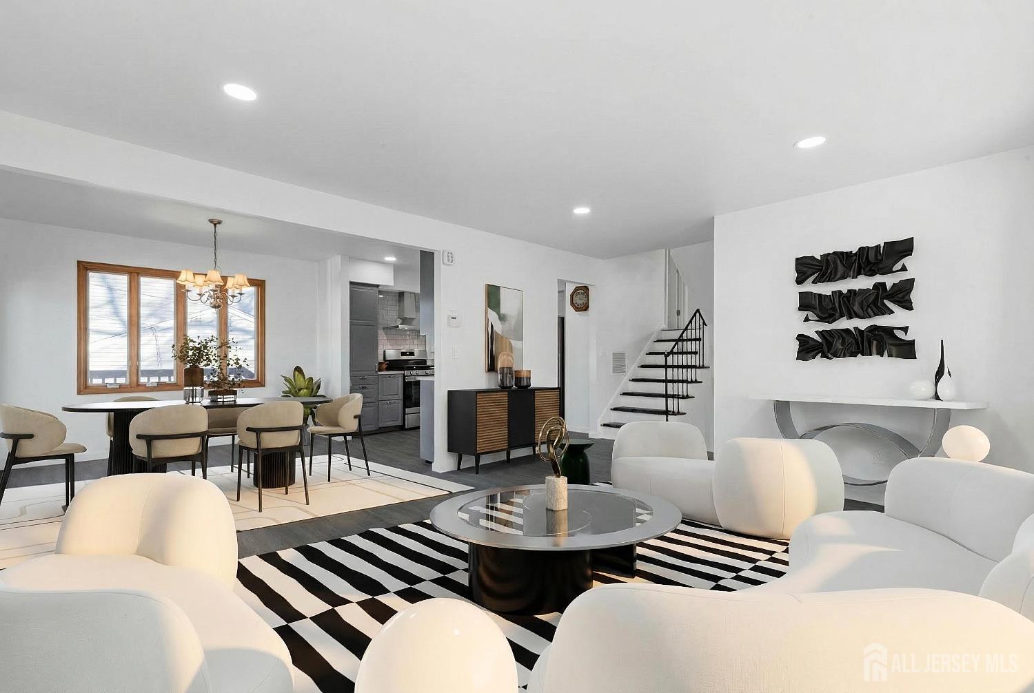 Just reduced! Elegantly updated stainless-steel appliances, while the adjacent dining room opens to a spacious wraparound deck ideal for outdoor entertaining. The entry level features a tiled foyer and a welcoming family room with patio access, plus a full bath perfect for guests. Upstairs, you'll find three bedrooms and a spa-inspired main bath complete with a jetted walk-in tub, built-in TV, and radio. Enjoy new carpeting in all four bedrooms, a tiled foyer, and luxury vinyl plank flooring throughout the main living area. Additional highlights include an unfinished basement, central air, a one-car garage, and a fenced yard. Conveniently located near shopping, schools, NYC bus service, and major highways. Home is not in a flood zone. CJMLS 2607641R