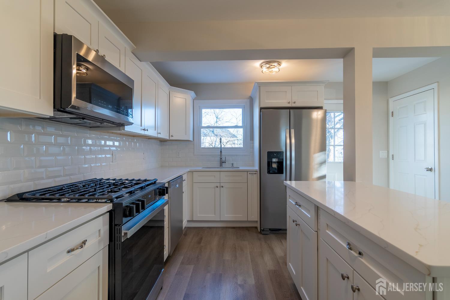 Just Completed Full Renovation! This beautifully updated 4-bedroom, 1.5 bath home offers modern finishes, flexible living space, and commuter-friendly convenience on a desirable corner lot. Enjoy peace of mind with all-new features, including a roof, vinyl siding, vinyl plank flooring, electrical updates, and a brand-new kitchen. The kitchen features granite countertops, stainless steel appliances, a center island, and a separate dining area. The light-filled living room provides a warm welcome into the home. With 4 levels of living space, the floor plan is designed for versatility. Ground floor bedroom with its own separate entrance, plus a half bath, ideal for easy living, guests, or a home office. The second floor offers two additional bedrooms and a brand new full bath. The third-floor bedroom creates a private retreat, primary suite, or workspace. The basement and ground floor feature multiple rooms, perfect for a den, office, playroom, gym, or studio. Step outside to a deck, ample off-street parking, and low-maintenance outdoor space. Located just minutes from train and bus service, and close to two major hospitals, shopping, and dining, this home is commuter-friendly. Move-in ready and waiting for its next owner! CJMLS 2608160R