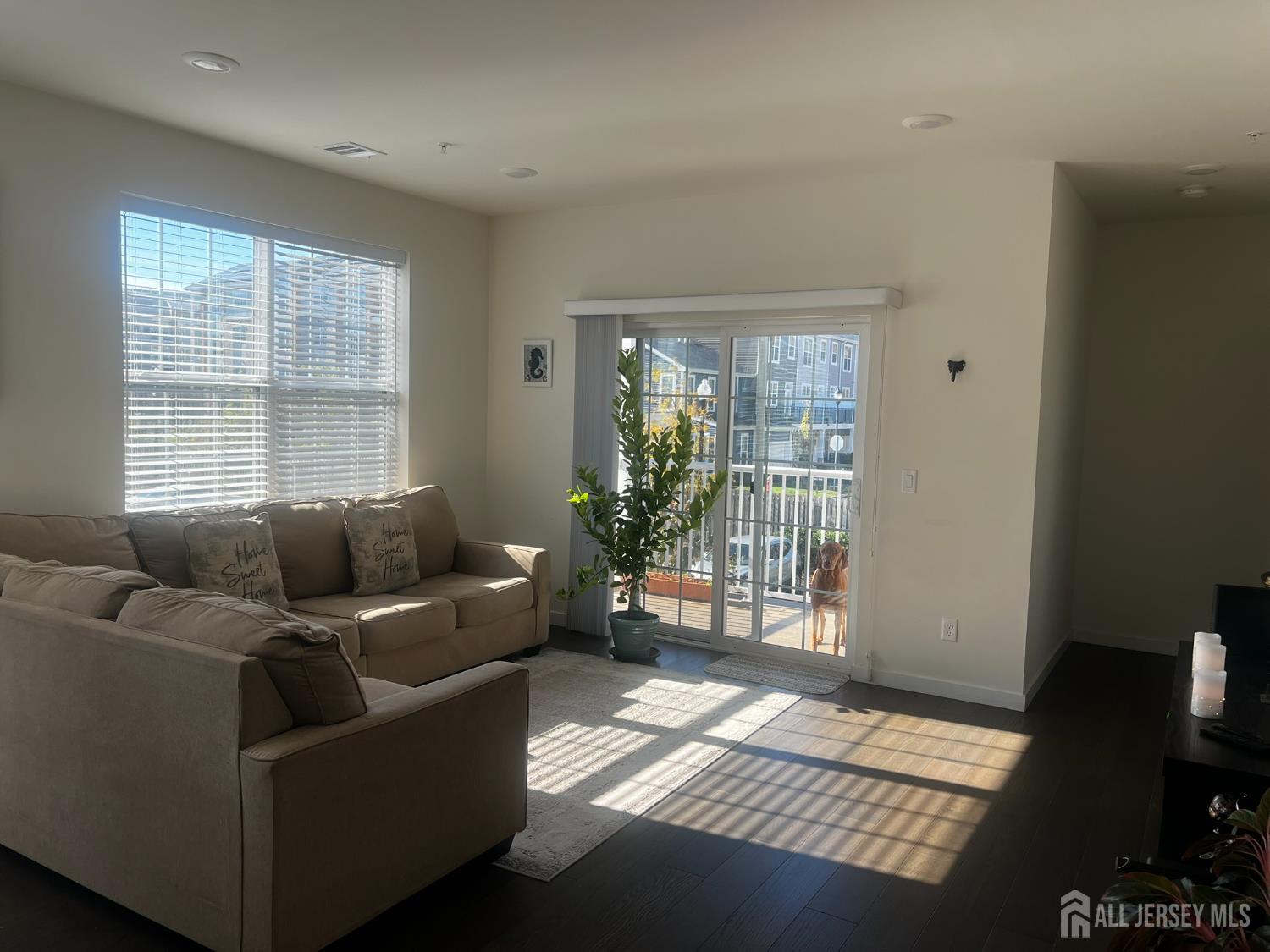 Welcome to this meticulously maintained, sun-light filled, largest corner unit in the 30Seven ONB community. Soaked in natural morning sunlight, the living and dining areas glow with warmth, making it the perfect space to start your day with a sunny breakfast. Inside, you'll find an open-concept layout that blends modern elegance with cozy comfort. The kitchen is fully upgraded with 42-inch cabinets, quartz countertops, a stylish backsplash, recessed lighting, and a powerful exterior-vented range hood. This smart layout features two spacious bedrooms and a versatile bonus den/room ideal for a study, office, or guest space. The primary suite and second bedroom are located on opposite ends, offering the perfect balance of privacy. Every bathroom shines with tasteful, modern lighting and finishes. Contemporary hardwood flooring throughout adds a touch of elegance and upscale feel. Unit is equipped with Brilliant smart home system and Yale Nest smart lock. Additional highlights include a 1-car garage with an extra 6x8 storage room, elevator access, and a private balcony with wooded views. Enjoy the resort-style clubhouse, complete with a gym, yoga studio, fireplace lounge, dog wash, office & conference room, event room and entertainment spaces. With easy access to major highways, NJ Transit, Rutgers, hospitals, shopping and half hour from Newark Liberty International airport, this home delivers the perfect mix of location, space and luxury. Come see for yourself! CJMLS 2606256R