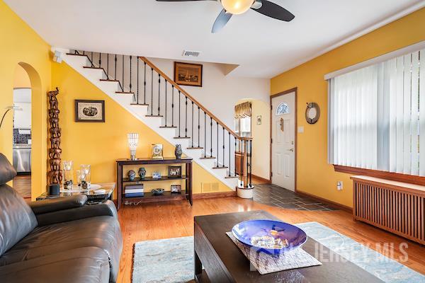 Expanded Cape Cod home located in a community that offers the feel of suburban life yet is in easy reach to major highways and shopping! This well maintained home offers hardwood floors throughout. Natural lighting in living room and formal dining room. First floor office can also be used as third bedroom. Upstairs offers two bedroom and full bath. Primary bedroom has walk in closet. Full walk out basement with laundry area and ample storage. A generous size lot gives room for outdoor living, playing and entertaining! Large driveway fits up to 4 cars! Move in ready! CJMLS 2606912R
