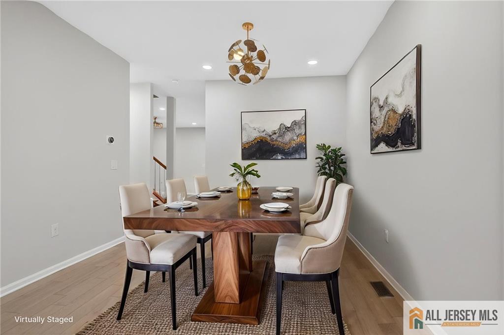 Location! Location! 3-bedroom 2.5 bath North East facing townhouse in a very desirable Villas at Fairway community. This is newer 2013 built & homes here rarely come on sale. This is the Baltusrol model with a full high ceiling basement & attached 1-car garage. The Baltusrol is one of the larger, premium townhome-style floor plans within the Villas at Fairway community, with more square footage and a private entry. Enter into the Open concept layout with 9' ceilings. Living & Dining has been recently upgraded with Hardwood Floors. The family room is adjacent to the kitchen, which has sliders to the patio & yard at the back. The 2nd floor has 3 generous bedrooms Master Bedroom has a private sitting, which can be used as an office, a small nursery, a child's bedroom, or play area. Buyers can be creative! Has 2 large walk-in closets and a customized and pristine full bathroom. The hallway has a laundry area, and another fully updated full bathroom, next to which are 2 perfect bedrooms with shelved closets. A fully finished, huge basement with extra closet space is just what you are looking for in this premium neighborhood. 1 car attached garage & 1 car driveway. Just minutes away from Edison train station, Amenities include a gym, Party hall, Card room, Swimming Pool, and playground. Day care center and Pediatrician located within the community. Gated community. Close to Shopping, Restaurants & Entertainment. Ready to move-in. Will not last! Upgrades & Features Extended kitchen cabinets and upgraded countertops Shelf Genie pull-out shelving system Hardwood flooring Brand new water heater and AC unit (installed last year) Fully finished basement with additional closet/storage space New sump pump installed Extended outdoor patio with pavers Recessed lighting throughout, controlled via Lutron Smart App Epoxy-finished garage flooring Tesla EV charger installed Garage wall-mounted storage cabinets Motion sensor lighting Eufy smart security lock installed Upgraded powder room vanity and sink Fully upgraded master bathroom (vanity, sink, lighted mirror, and cabinets) Updated second bathroom (cabinet, shower, and sink) Bladeless Ceiling fans with lighting fixtures Freshly painted throughout the entire home Custom closet cabinetry Appliances are all well maintained and changed recently. CJMLS 2661565M