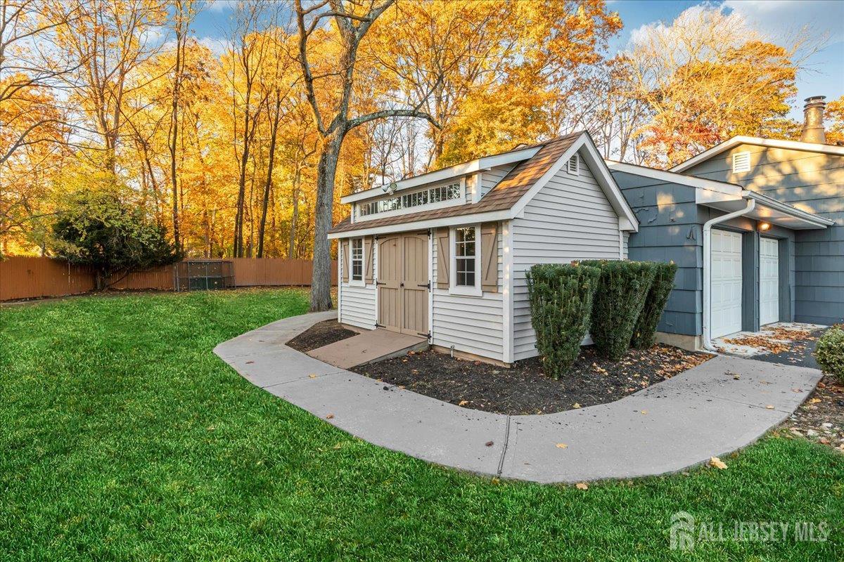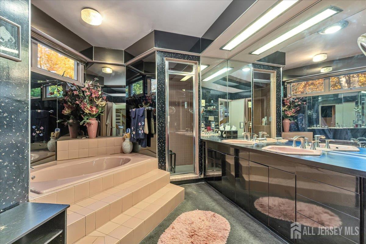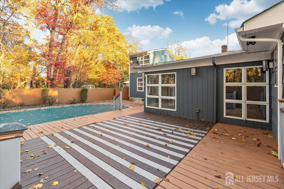 A Mid-Century Modern Treasure in One of Plainfield's Finest Neighborhoods. Located in one of Plainfield's most desirable enclaves, this mid-century modern gem sits gracefully at the center of a quiet cul-de-sac, just steps from the beloved Cedarbrook Park and Pond. This spacious home features four bedrooms, four full baths, and a powder room located in the finished area of the basement. The formal living and dining room combination with fireplace creates a warm, inviting atmosphere for entertaining or relaxing evenings. A gracious entry hall with two large coat closets leads to a Den and sunlit kitchen with skylights, filling the home with natural light. Conveniently positioned just off the kitchen are the laundry area and pantry closet, connecting to a full bath and changing rooms that open to the enclosed porch perfect for poolside gatherings. The cozy den adjacent to the kitchen and the loft off the primary suite add comfort, character, and versatility. Downstairs, enjoy a spacious recreation room and exceptional storage throughout. Outside, an in-ground swimming pool with divingboard, beautiful yard, two-car garage with remotes, and newer storage shed make this home both functional and fun. A true Plainfield treasure, blending timeless design, modern convenience, and an exceptional location. CJMLS 2607095R