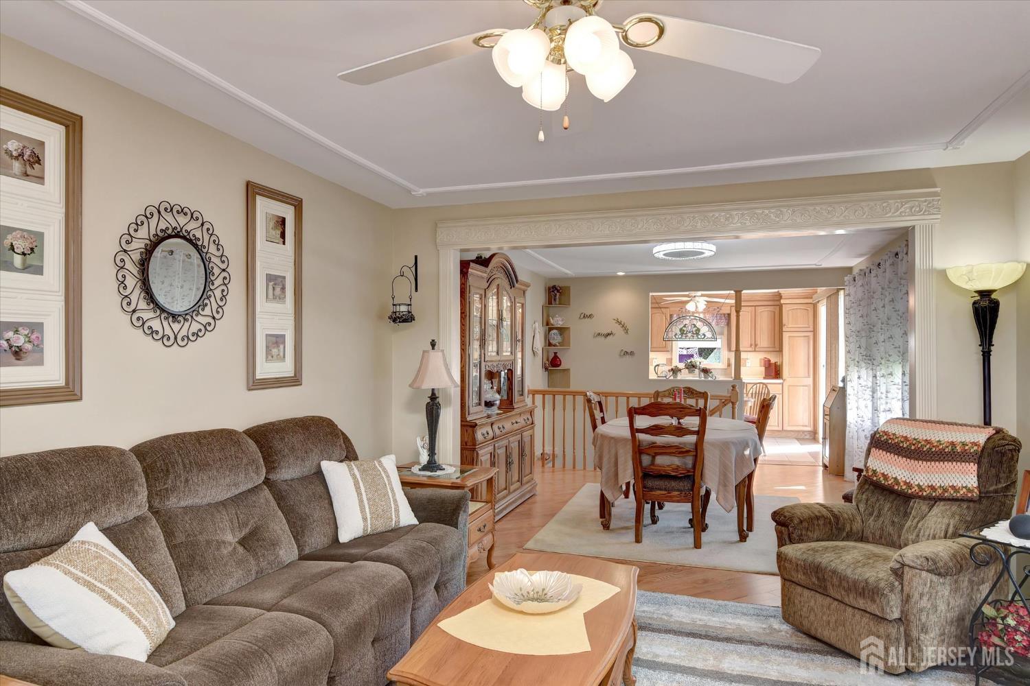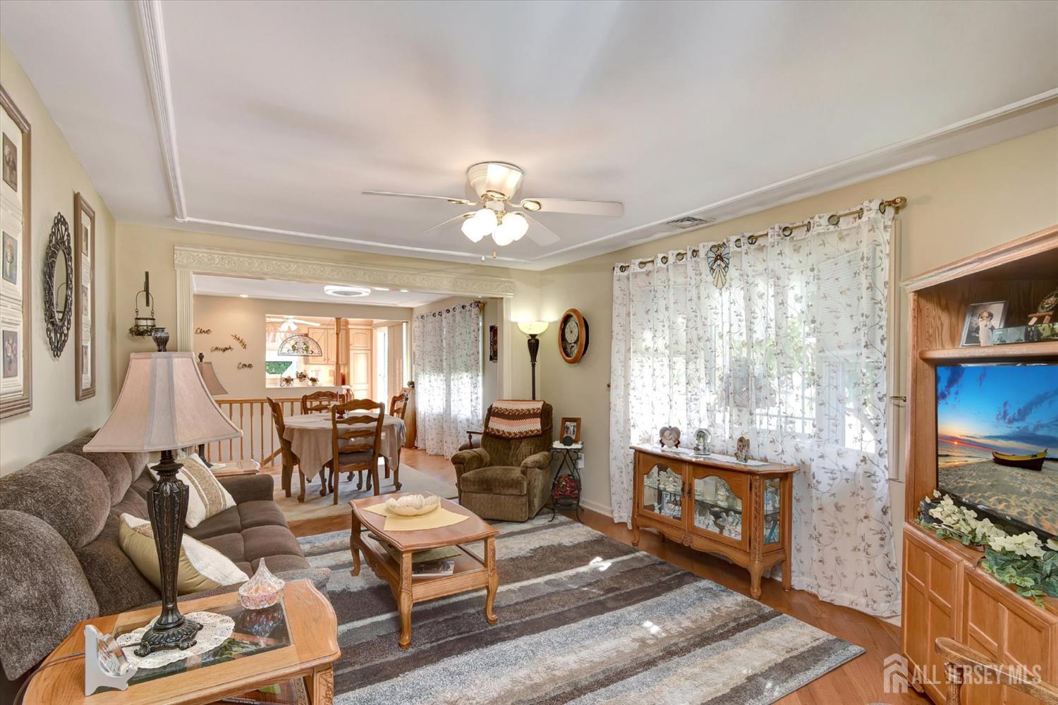 Welcome to this immaculate, well-loved home where pride of ownership shows throughout. A manicured lawn, landscaped grounds, scalloped-shake siding, and brick steps lead to an enclosed porch. Inside, soothing colors, a bright living room with trim and ceiling fan, dining area, and eat-in kitchen with microwave, dishwasher, and deck access create a warm flow. The primary bedroom offers dual windows, ceiling fan, and ample space; the second bedroom doubles as an office. The lower-level features laundry/storage, a full bath with shower and wainscoting, plus 2 rooms that could be used as 3rd and 4th bedrooms, plus basement access to yard through bilco doors. There is lots of storage. Outdoors, the beautifully kept yard is perfect for relaxing or gardening. Ideally located near commuter routes, shopping, dining, and from just 45 minutes to NYC. CJMLS 2604851R