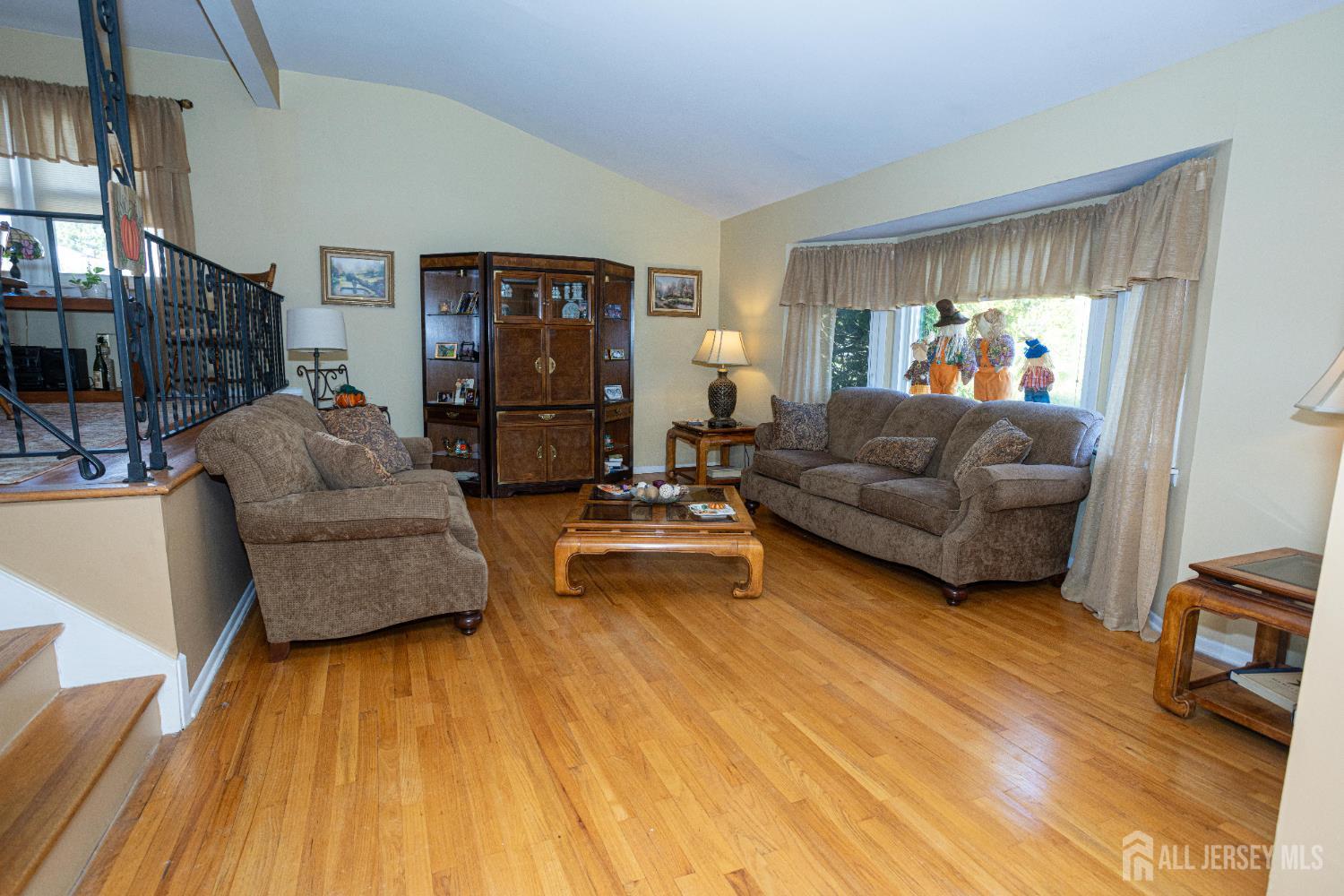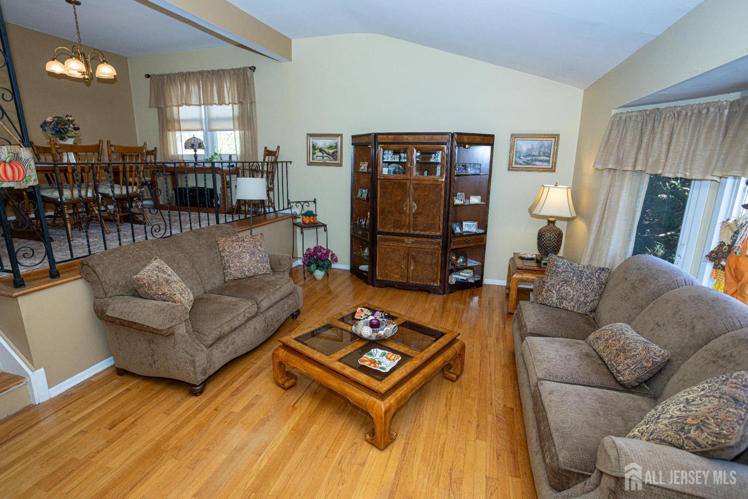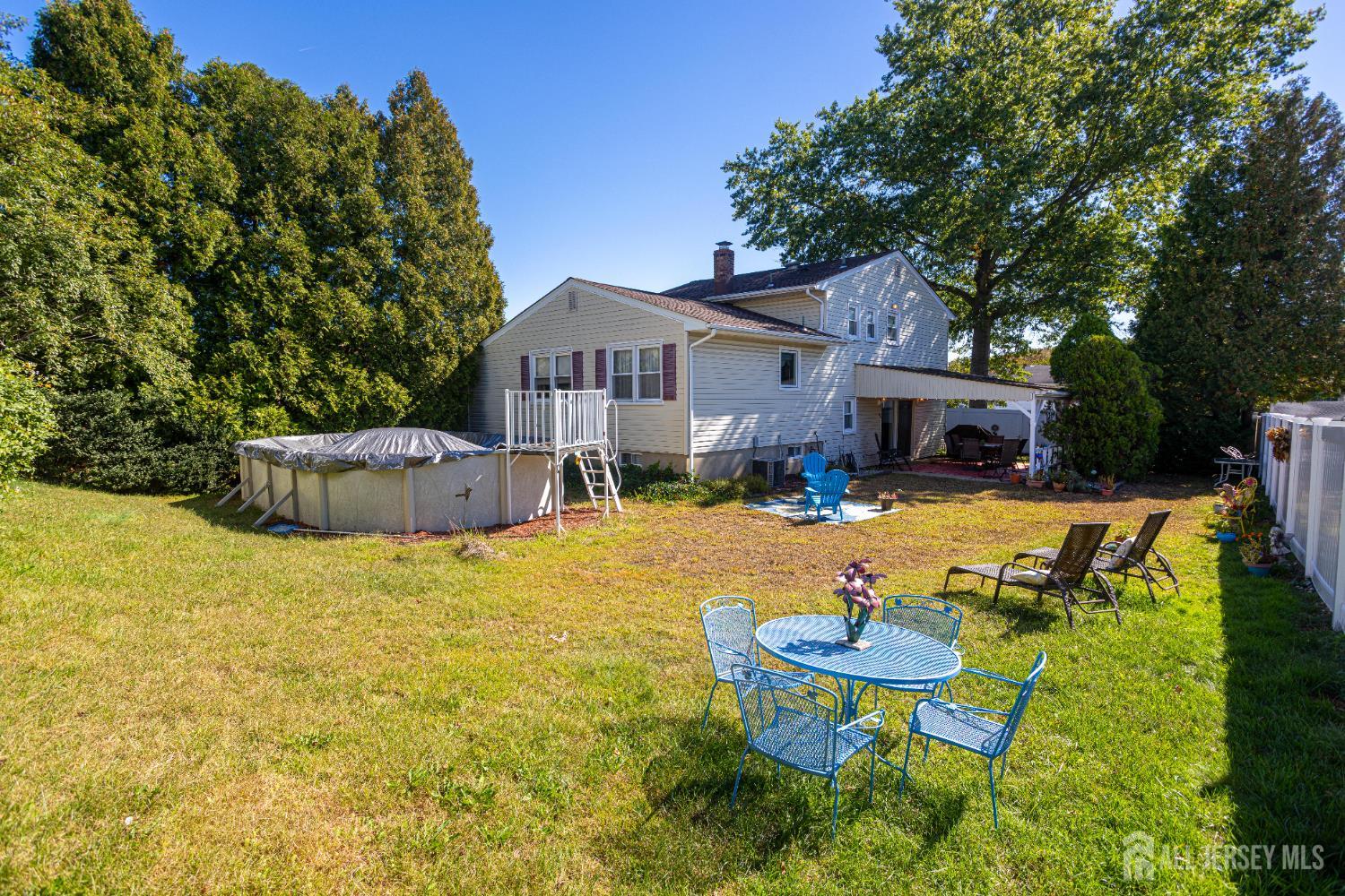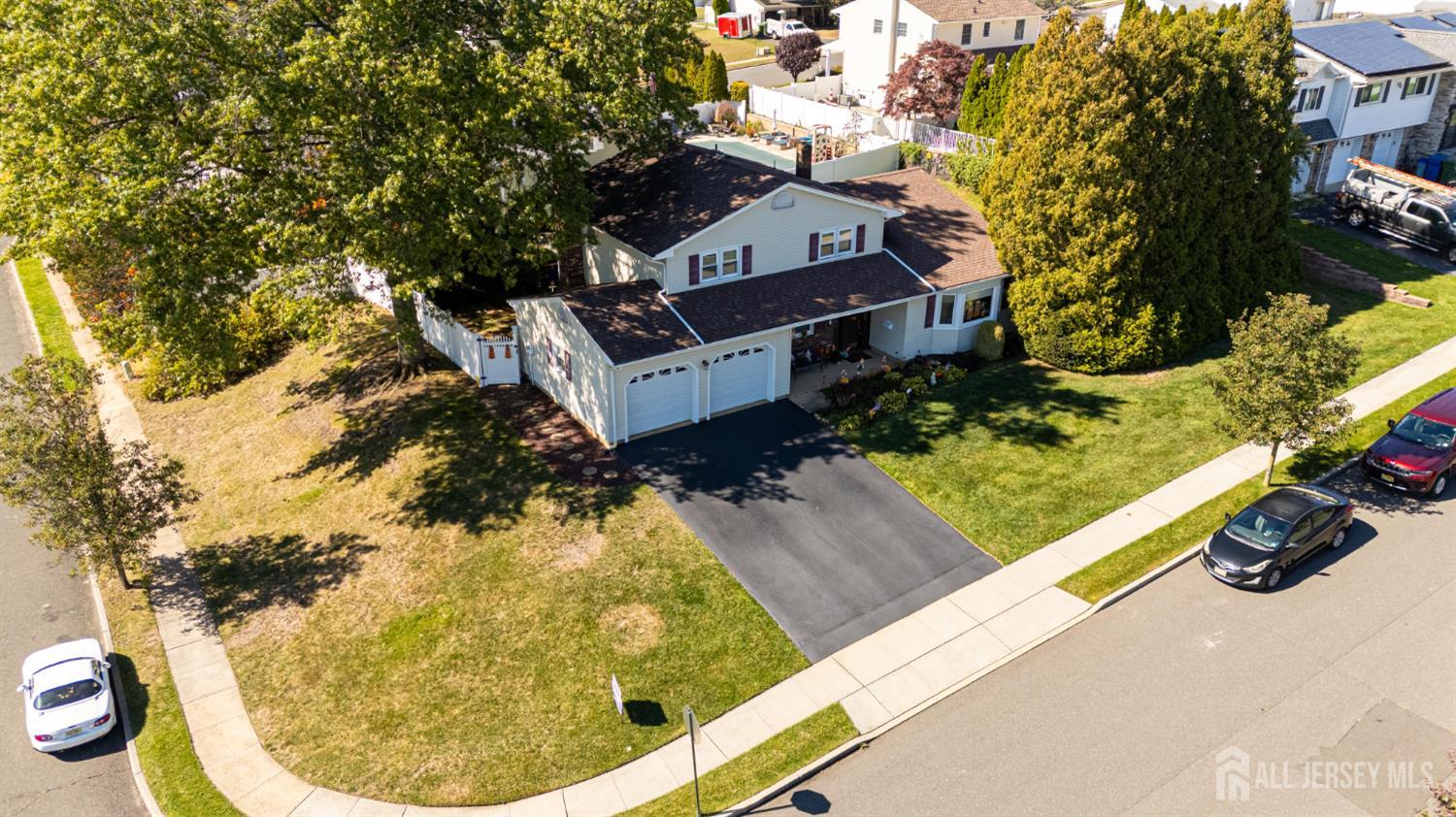 Welcome to this beautifully maintained 4-bedroom split level home situated on a corner lot in desirable Oak Tree West Development*This home features a charming brick front with vinyl siding and a 6-zone front sprinkler system. The roof was replaced in 2016, and recent updates include a newer HWH, gutters, and copper pipes in basement. Enjoy outdoor living in the private backyard featuring a 15 x 24 above-ground pool, a spacious patio with a large pergola, and a brand new white vinyl fence. Inside the home offers a bright living and dining room* Beautiful Eat in Kitchen with wood cabinets, all appliances stay. Bow window in living with vaulted ceilings with beautiful Hardwood floors, complemented by a cozy family room with a brick wood burning fireplace and sliders leading to the outside patio. The main bathroom was completely renovated in 2024 with double sinks, ceramic tile walls and vinyl flooring. The primary bedroom includes a half bath and a walk-in closet. Additional highlights include a mix of 1 full and 2 half baths with a functional layout perfect for both relaxation and entertaining! A must-see home! Showing start Friday Oct 10 CJMLS 2605514R