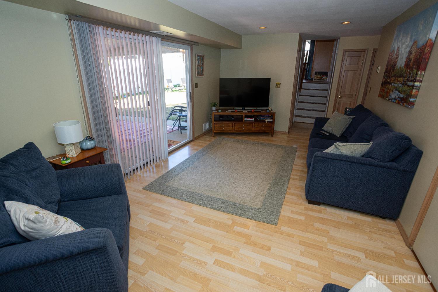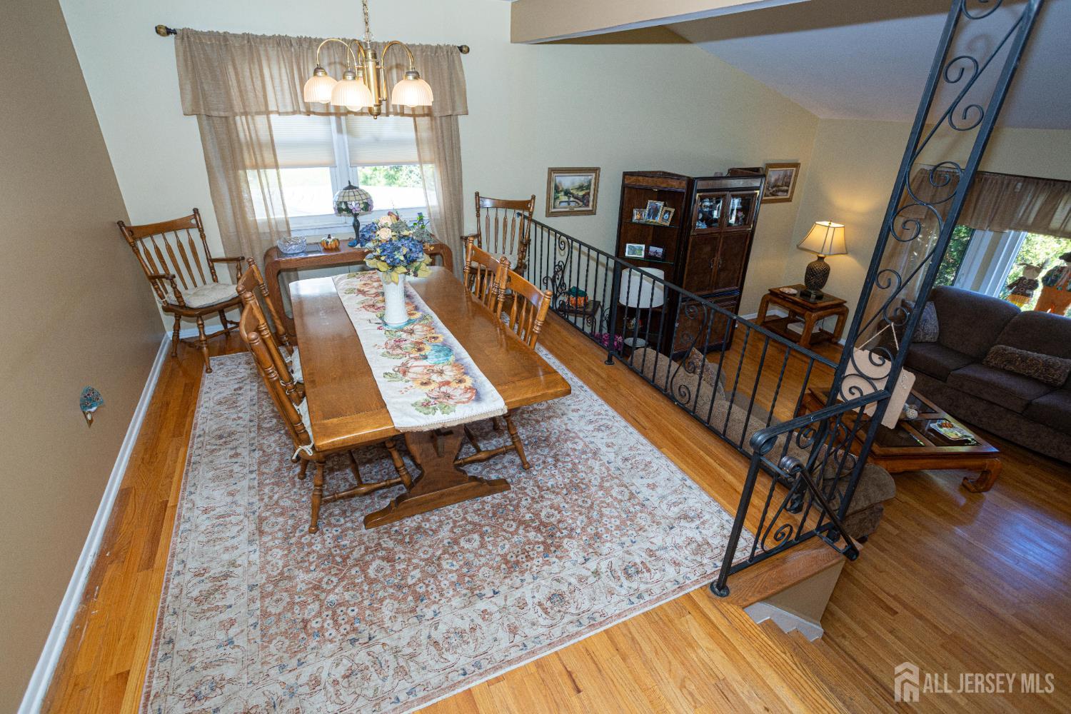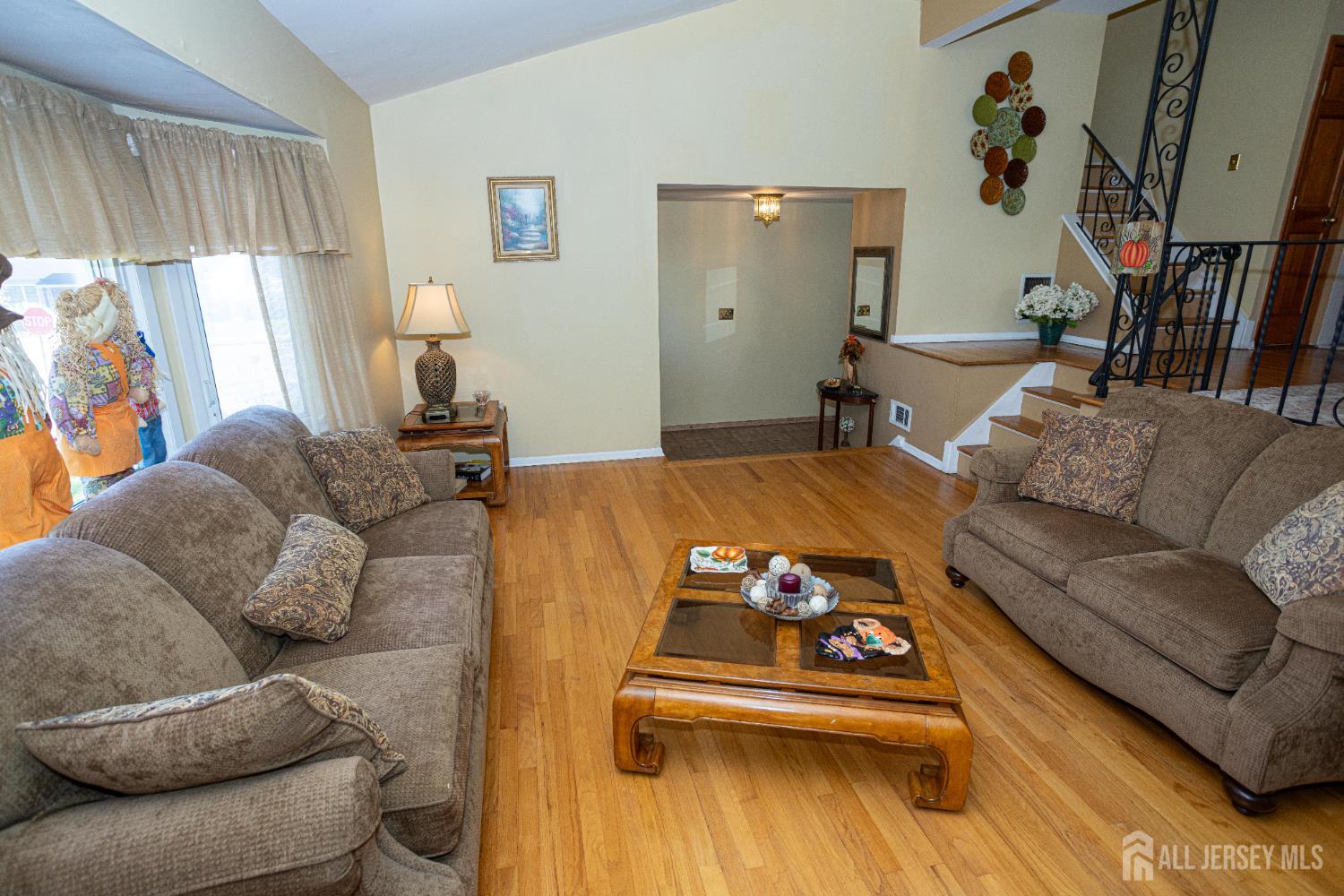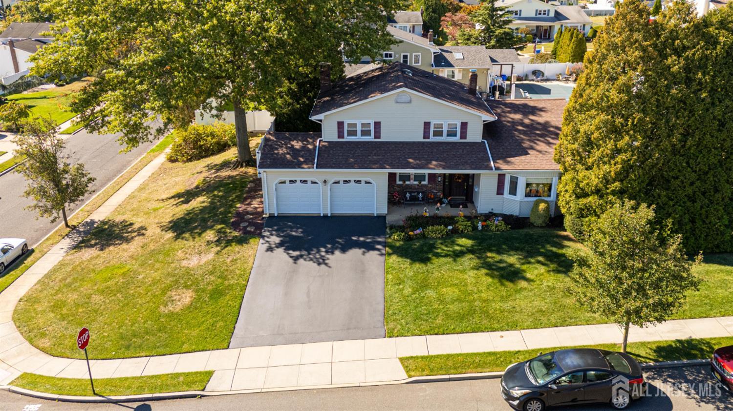 Welcome to this beautifully maintained 4-bedroom split level home situated on a corner lot in desirable Oak Tree West Development*This home features a charming brick front with vinyl siding and a 6-zone front sprinkler system. The roof was replaced in 2016, and recent updates include a newer HWH, gutters, and copper pipes in basement. Enjoy outdoor living in the private backyard featuring a 15 x 24 above-ground pool, a spacious patio with a large pergola, and a brand new white vinyl fence. Inside the home offers a bright living and dining room* Beautiful Eat in Kitchen with wood cabinets, all appliances stay. Bow window in living with vaulted ceilings with beautiful Hardwood floors, complemented by a cozy family room with a brick wood burning fireplace and sliders leading to the outside patio. The main bathroom was completely renovated in 2024 with double sinks, ceramic tile walls and vinyl flooring. The primary bedroom includes a half bath and a walk-in closet. Additional highlights include a mix of 1 full and 2 half baths with a functional layout perfect for both relaxation and entertaining! A must-see home! Showing start Friday Oct 10 CJMLS 2605514R