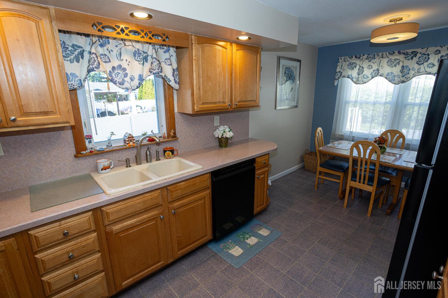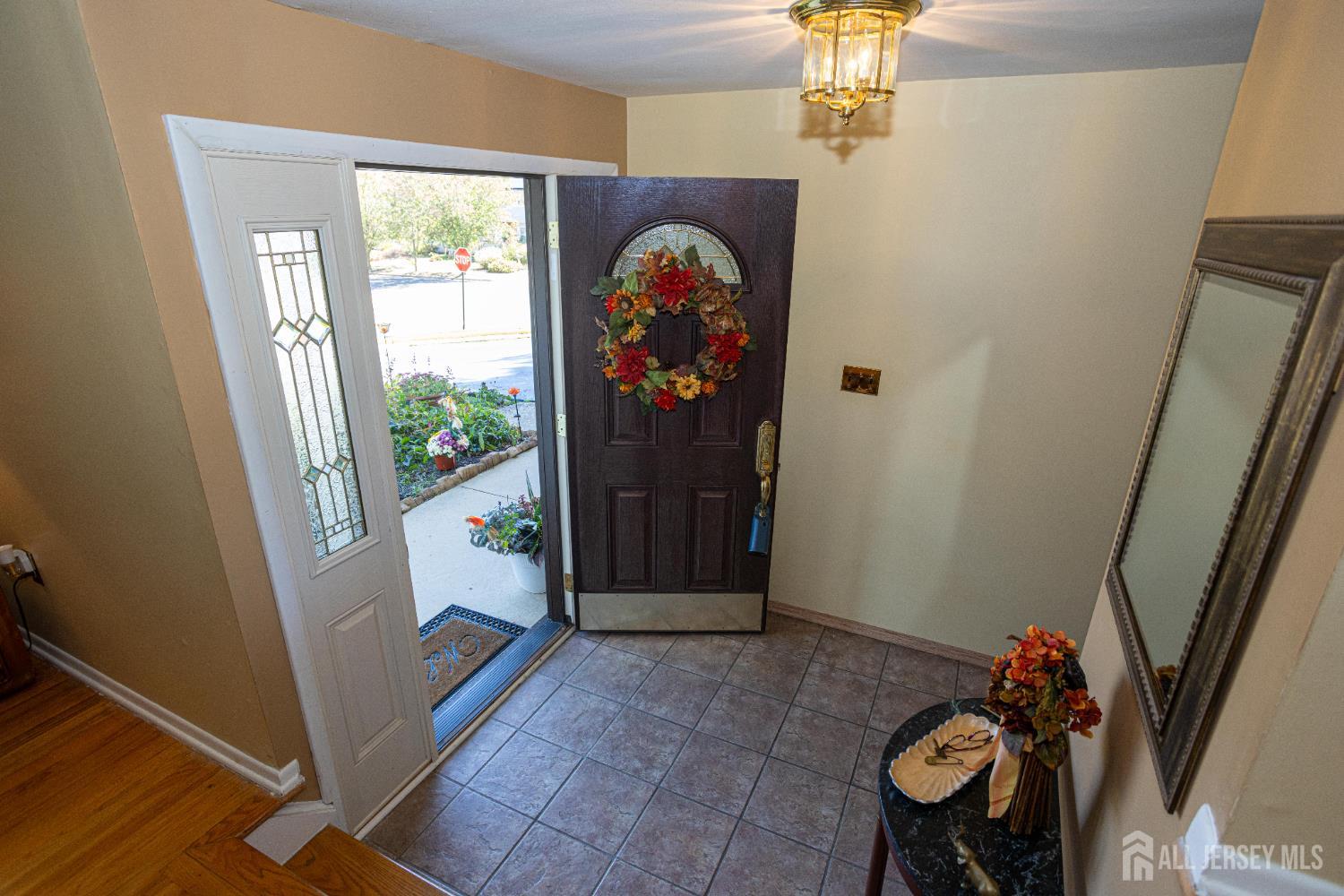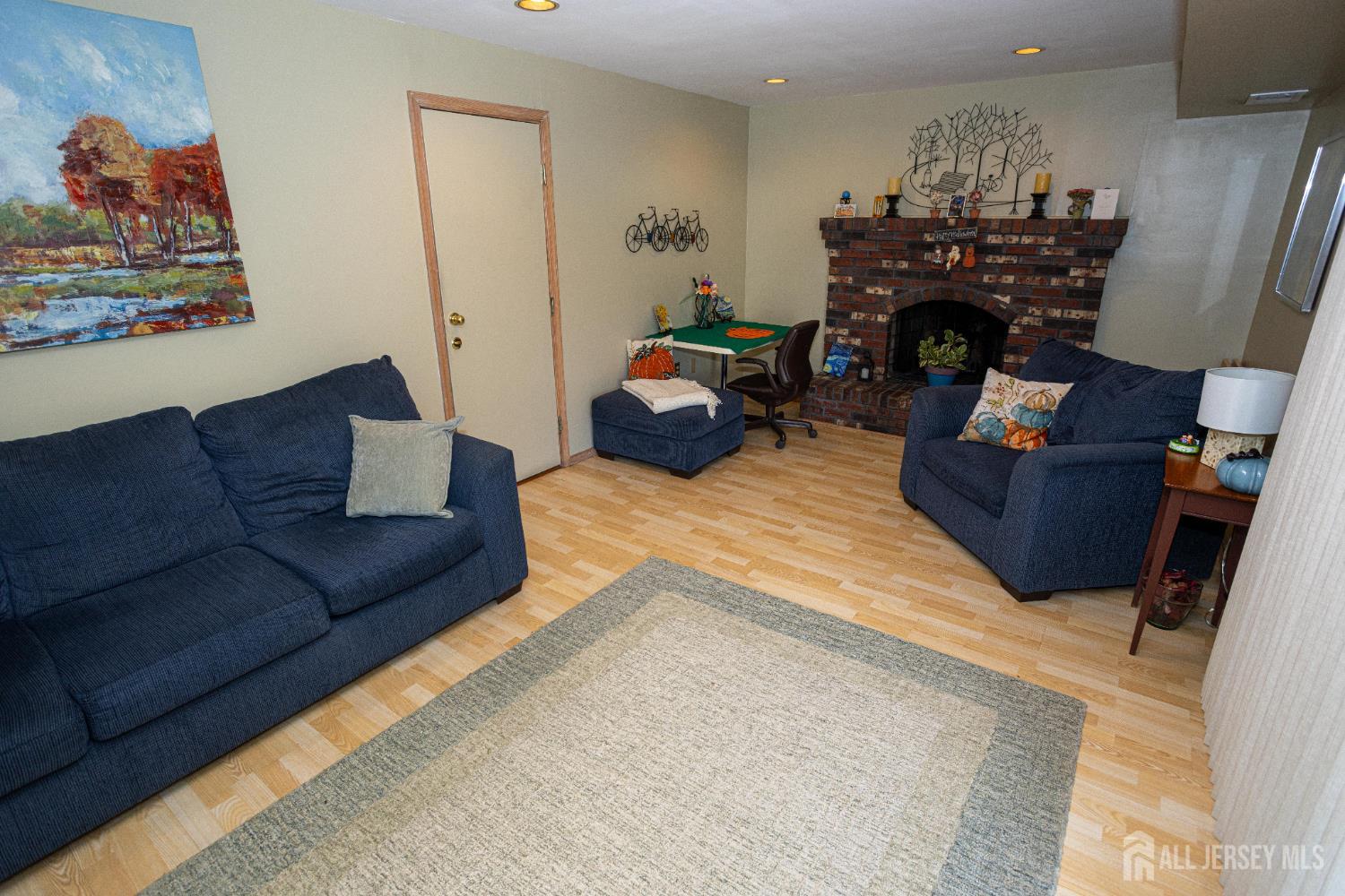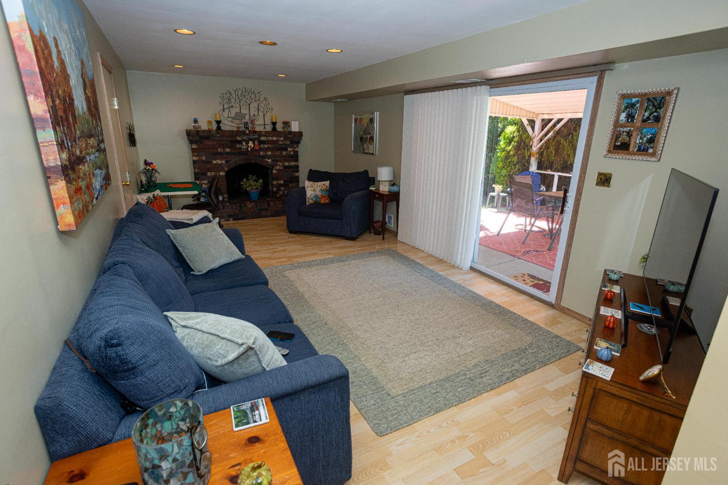 Welcome to this beautifully maintained 4-bedroom split level home situated on a corner lot in desirable Oak Tree West Development*This home features a charming brick front with vinyl siding and a 6-zone front sprinkler system. The roof was replaced in 2016, and recent updates include a newer HWH, gutters, and copper pipes in basement. Enjoy outdoor living in the private backyard featuring a 15 x 24 above-ground pool, a spacious patio with a large pergola, and a brand new white vinyl fence. Inside the home offers a bright living and dining room* Beautiful Eat in Kitchen with wood cabinets, all appliances stay. Bow window in living with vaulted ceilings with beautiful Hardwood floors, complemented by a cozy family room with a brick wood burning fireplace and sliders leading to the outside patio. The main bathroom was completely renovated in 2024 with double sinks, ceramic tile walls and vinyl flooring. The primary bedroom includes a half bath and a walk-in closet. Additional highlights include a mix of 1 full and 2 half baths with a functional layout perfect for both relaxation and entertaining! A must-see home! Showing start Friday Oct 10 CJMLS 2605514R