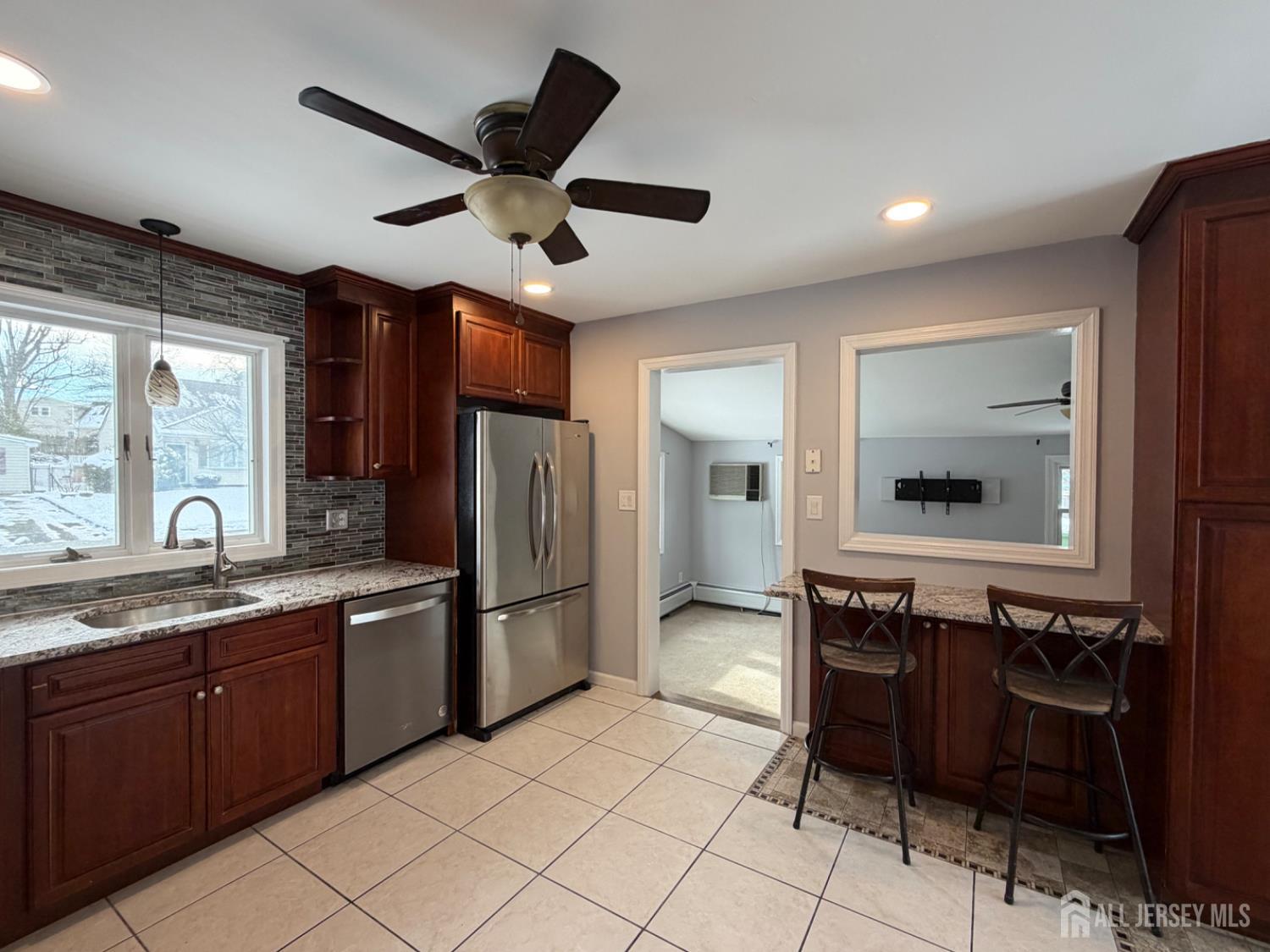 Looking for a move-in-ready Cape where you can simply add your own personal finishing touches? Welcome to 39 Birch Terrace, a cozy and inviting home where thoughtful updates are beautifully paired with classic charm. The home offers two bedrooms, one full bath, and one half bath. The main level features a bright and welcoming living room highlighted by a bay window that fills the space with natural light and flows into the kitchen. The updated kitchen offers stainless steel appliances, granite countertops, a picture window, recessed lighting, tile backsplash, and a small breakfast bar with a pass-through window, along with ample cabinet storage. The kitchen opens to the dining area, where sliding glass doors lead to the backyard and patio. Outside, the oversized paver patio provides an ideal space for entertaining and enjoying outdoor living. The main level also features a versatile bonus room that can be used as an additional living area, bedroom, home office, or playroom. The second floor offers one bedroom, a convenient half bath, a comfortable sitting area, and abundant closet and storage space, completing the upper level of the home. Additional updates and features include: fully fenced in backyard, freshly painted, newer roof, washer and dryer, private driveway, prime location- close to major highways, NJ Parkway and endless shopping and dining. This well-maintained home offers great potential. If you're considering buying in the Parlin section of Sayreville and want a truly move-in-ready property, this one deserves to be at the top of your list. CJMLS 2610102R
