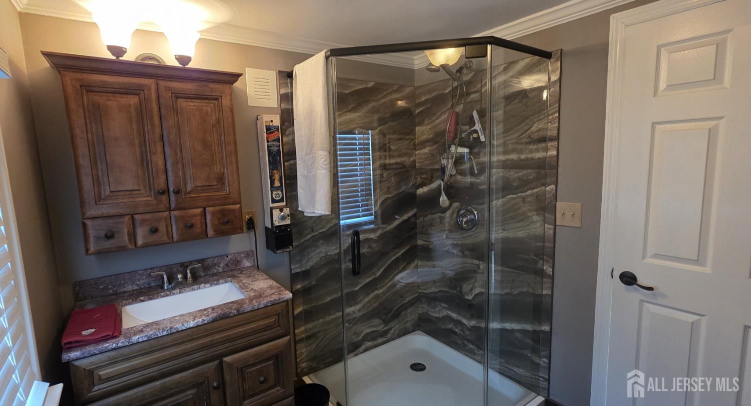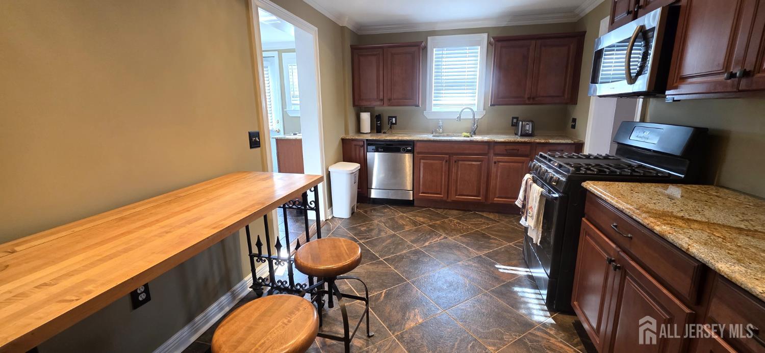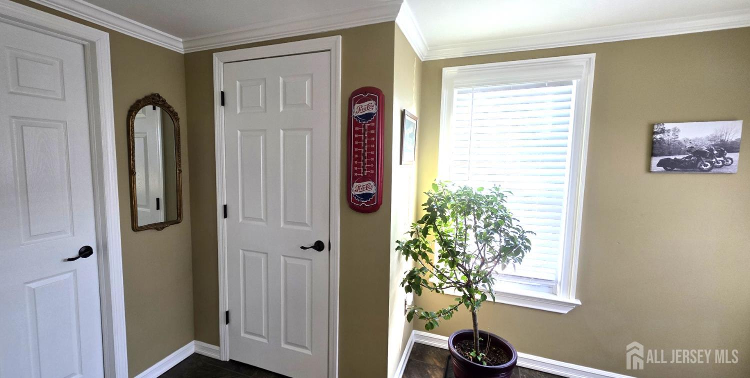 Welcome to 16 Perrine Avenue in Sayreville a spacious 2-bedroom, 2 full bath, 2-story home offering 1,504 square feet of comfortable living space on an oversized 100x130 lot. Hardwood floors run throughout the home, complemented by crown moldings, recessed lighting, and ceiling fans. The primary bedroom features exceptional storage with three closets, including a walk-in closet. The updated kitchen offers ample cabinetry, granite countertops, and space for an eat-in breakfast table, while a separate formal dining room provides the perfect setting for gatherings and entertainment. The original front porch being fully enclosed and heated, creating a versatile bonus living area ideal for a home office, den, playroom, or sitting room. A glass door separates the main living room from this front space, allowing both openness and privacy when desired contributing to a layout that feels larger than expected. The full basement offers laundry, a utility sink, and generous storage space. The home is set up for a whole-house generator with transfer switch already installed in the panel. Outdoor highlights include a patio area, expansive yard space perfect for entertaining or recreation, parking for 5+ vehicles, a 2-car detached garage, and a shed a rare combination in this area. Conveniently located under 3 miles to NJ Transit train service and even closer to the Park & Ride bus to Port Authority. Approximately 15 minutes to the Outerbridge Crossing. CJMLS 2610897R
