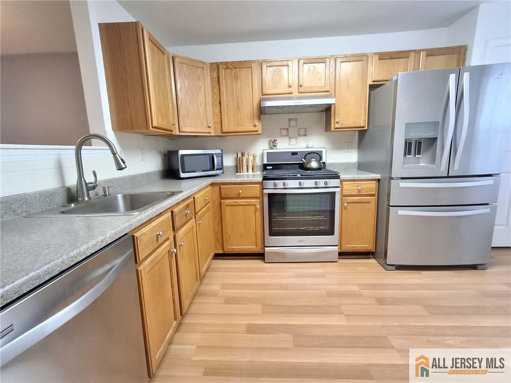 Welcome to an exceptional opportunity to own a stunning 3-level townhouse in LaMer community. This beautifully appointed 2/3-bedroom, 2.5-bath residence offers a fully above-grade layout, complete with a finished laundry room and a versatile den perfect as a home office or third bedroom. The main living area boasts an open-concept living, dining, and kitchen space, highlighted by elegant engineered hardwood flooring and staircase, energy-efficient insulated windows, and a convenient storage scuttle attic. The built-in, finished 1-car garage adds both function and curb appeal. As the only available unit offering parking both in front and in the rear, this home stands apart in the desirable LaMer. Residents enjoy resort-style amenities including a fitness center, tennis courts, and playgrounds, along with nearby parks and recreation. Commuters will love the unbeatable access to NYC bus service, major highways, the Jon Bon Jovi Service Area at GSP Exit 124, train stations, and premier shopping destinations. Simply unpack and start living! CJMLS 2661096M
