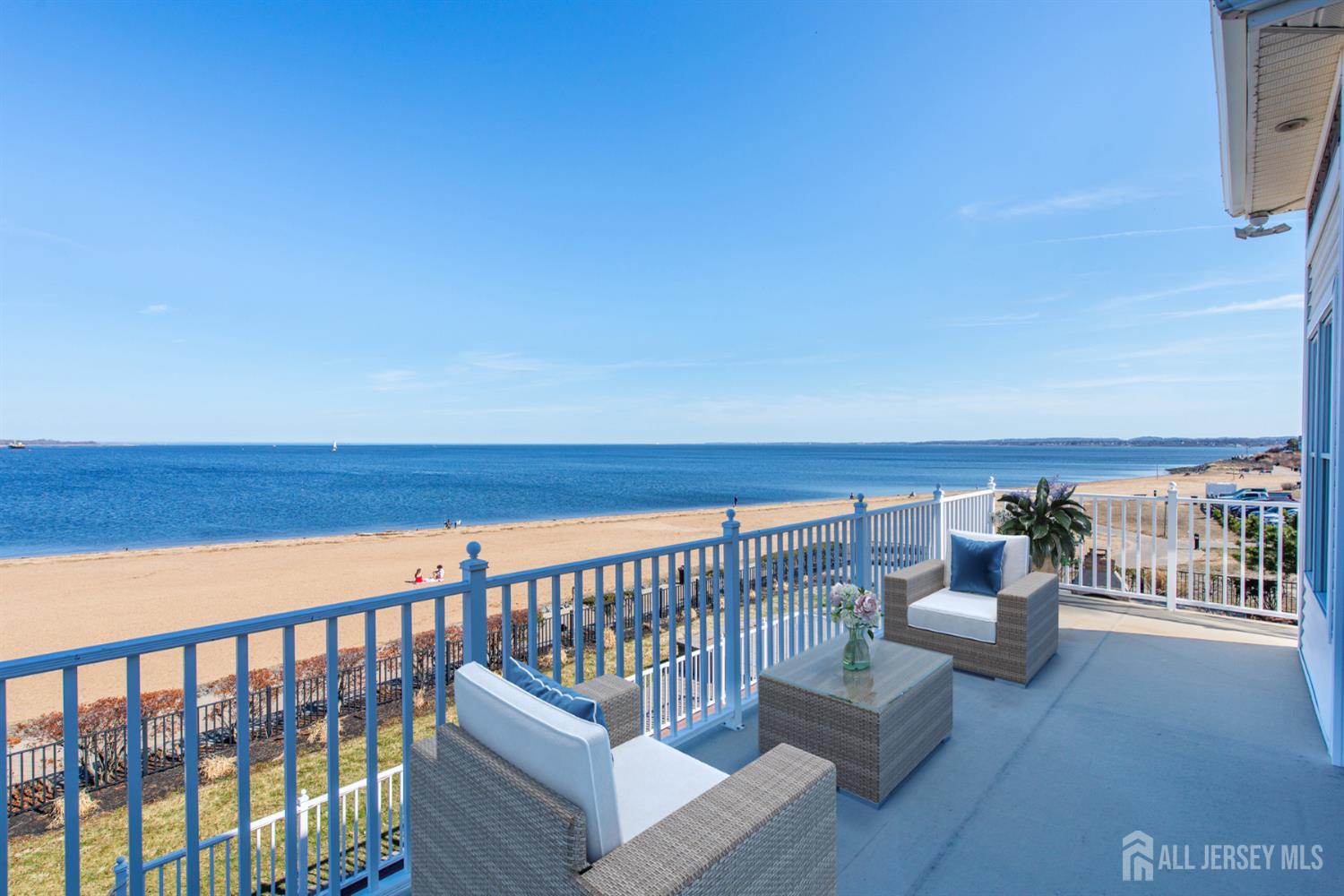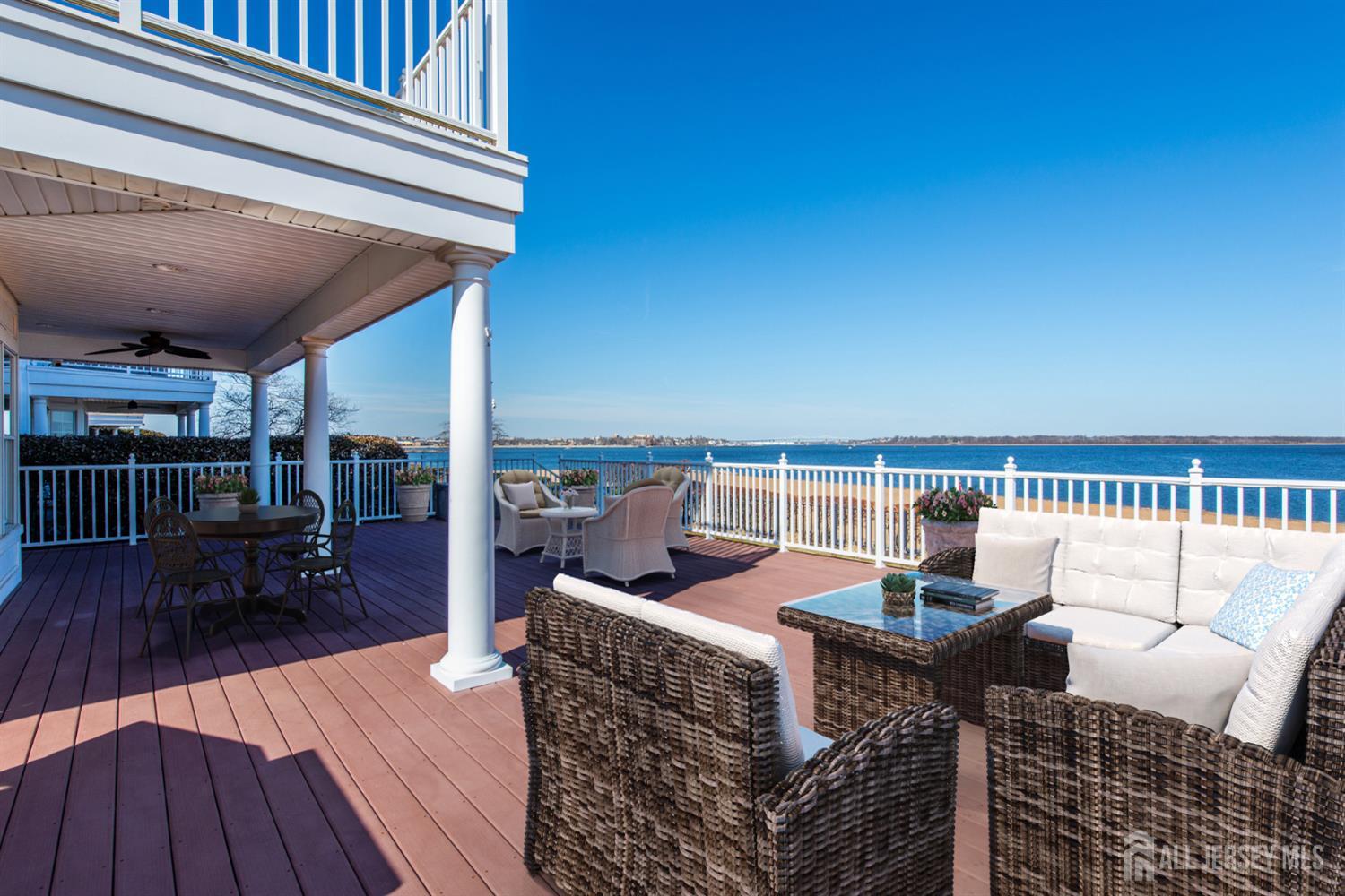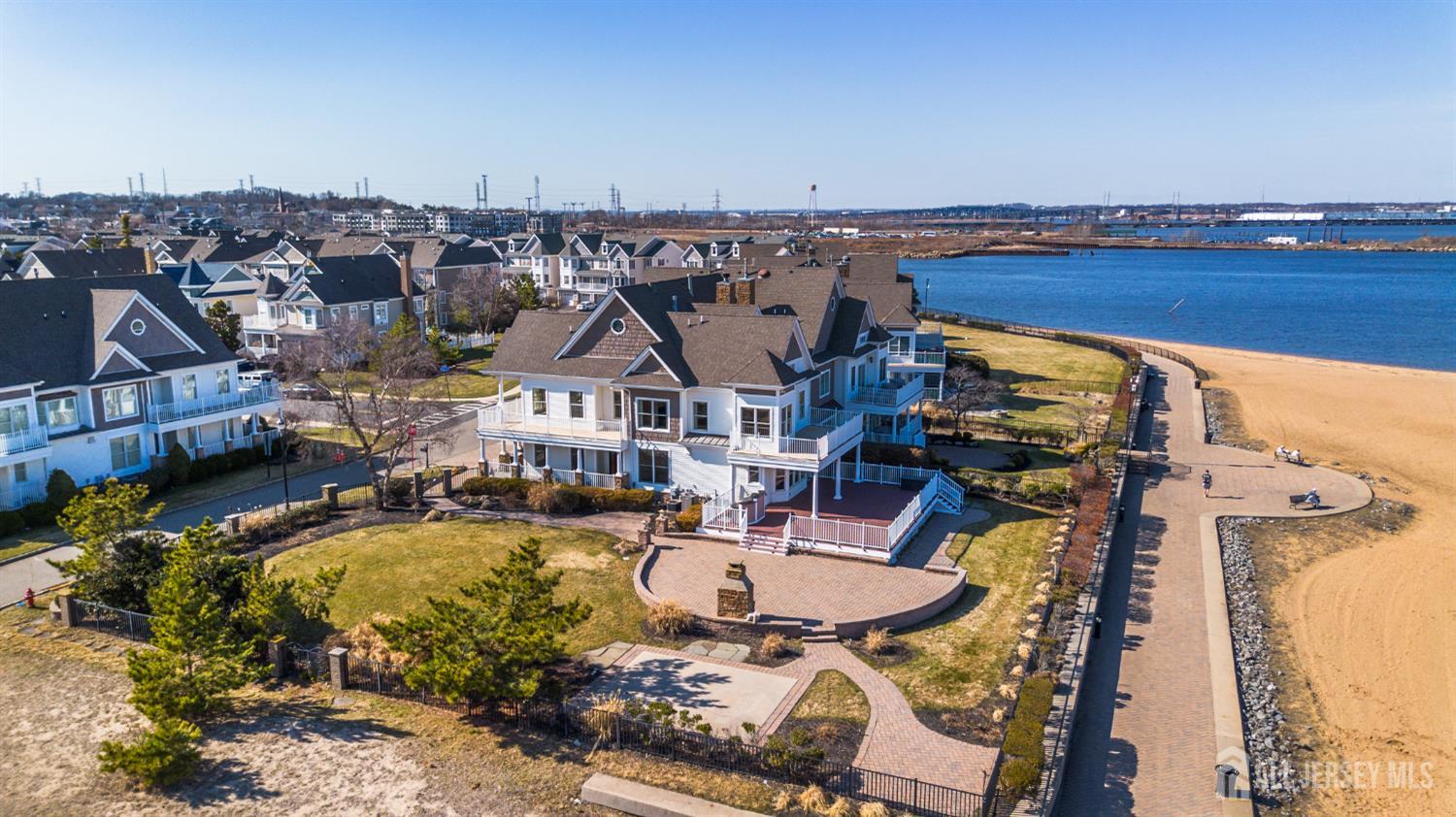 Experience refined coastal living in coveted Lighthouse Bay! This beachfront property presents a rare chance to own a luxurious residence with direct access to the water & sweeping views from nearly every room. Offering approx. 3,200 square feet of thoughtfully designed living space, & blending elegant coastal style with comfort and functionality, the home is enhanced by 9-foot ceilings on both the first and second floors, extensive custom molding, & a beautifully appointed eat-in kitchen outfitted with GE Monogram appliances. Three private decks capture panoramic water views, creating perfect spaces to relax or entertain. The main living area centers around a classic wood-burning fireplace, while the spacious primary suite includes a gas fireplace & two private decks. The finished basement expands the home's entertainment potential, featuring a custom-built bar & ample room for gatherings, recreation, or relaxation. Outdoors, the 1/3 acre property is equally impressive. A fully fenced yard, outdoor kitchen, fireplace, professional landscaping, & custom paver patios provide the perfect backdrop for hosting large events in a stunning beachfront setting. For commuting, options include NJ Transit & the nearby NY Waterway ferry terminal which offers service to both Midtown & Downtown Manhattan. More than just a residence, this property offers a unique waterfront lifestyle in one of South Amboy's most desirable neighborhoods. CJMLS 2612181R
