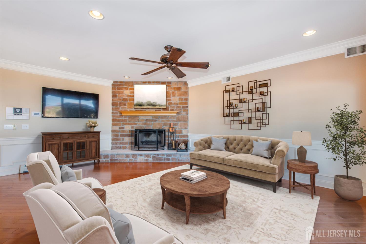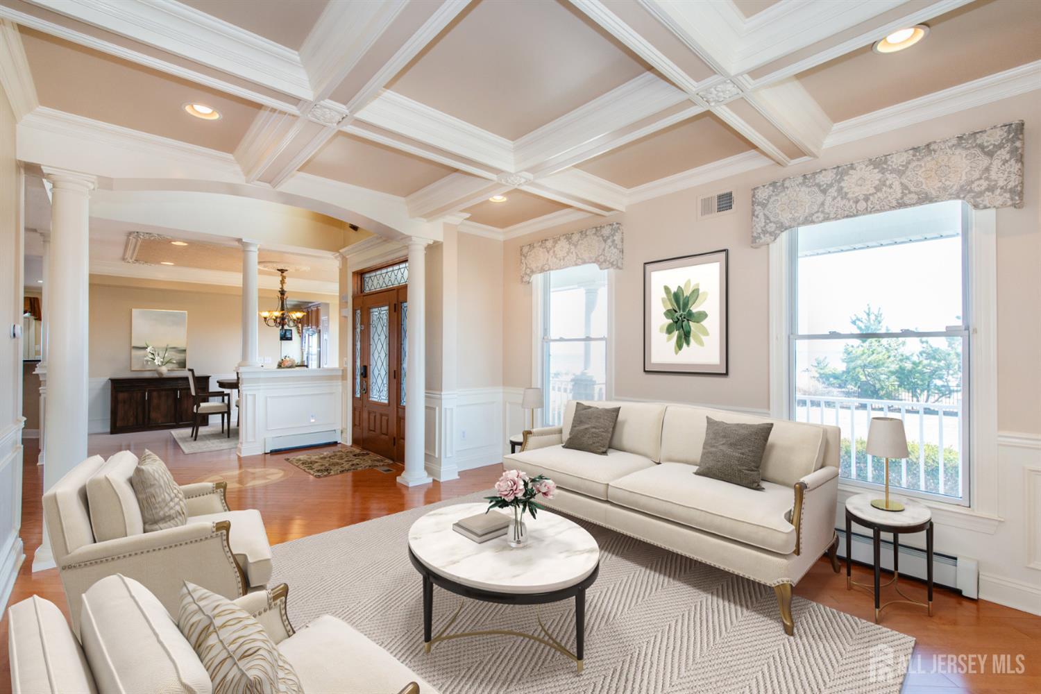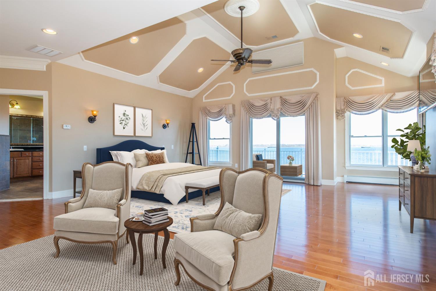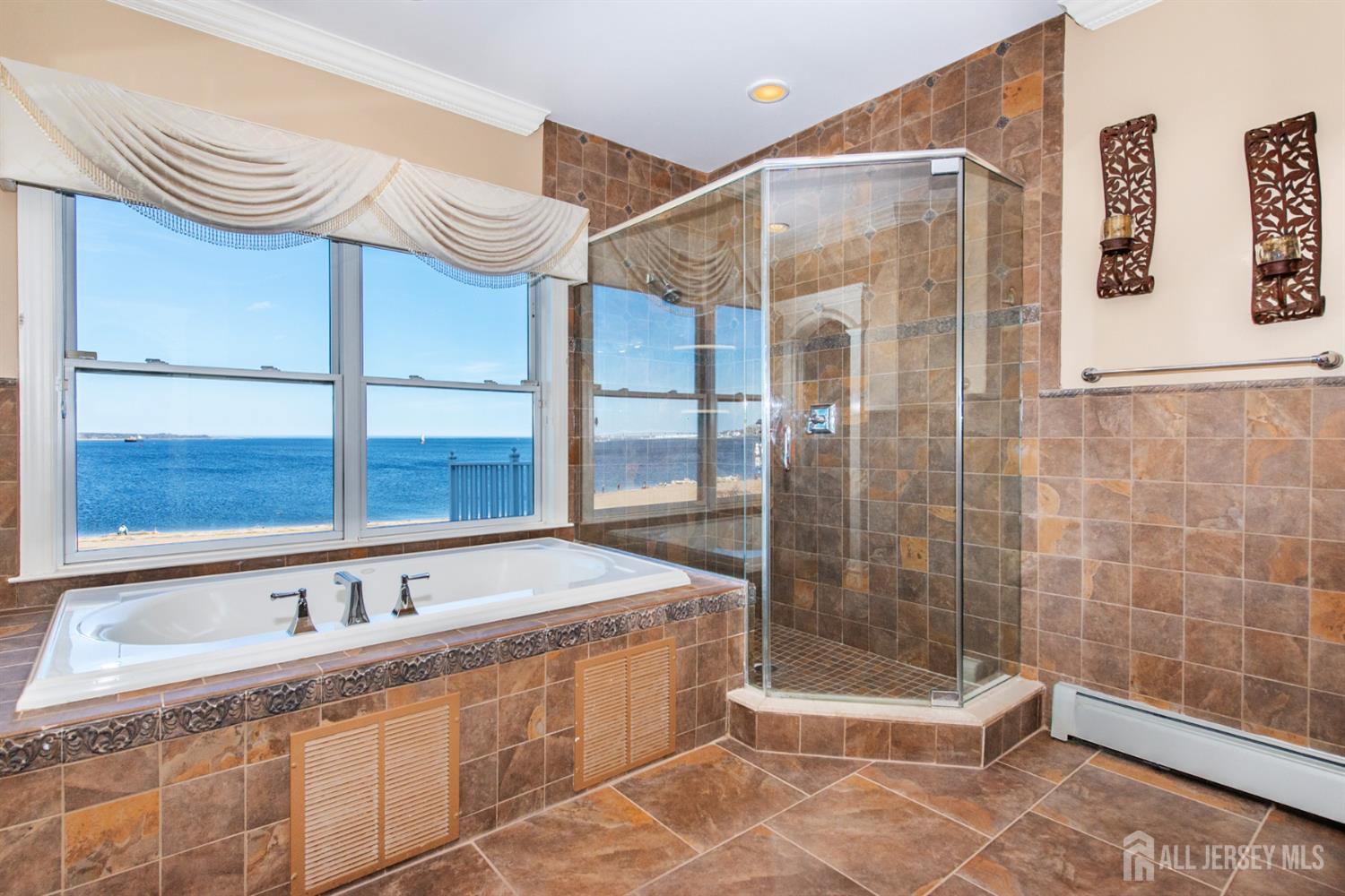 Experience refined coastal living in coveted Lighthouse Bay! This beachfront property presents a rare chance to own a luxurious residence with direct access to the water & sweeping views from nearly every room. Offering approx. 3,200 square feet of thoughtfully designed living space, & blending elegant coastal style with comfort and functionality, the home is enhanced by 9-foot ceilings on both the first and second floors, extensive custom molding, & a beautifully appointed eat-in kitchen outfitted with GE Monogram appliances. Three private decks capture panoramic water views, creating perfect spaces to relax or entertain. The main living area centers around a classic wood-burning fireplace, while the spacious primary suite includes a gas fireplace & two private decks. The finished basement expands the home's entertainment potential, featuring a custom-built bar & ample room for gatherings, recreation, or relaxation. Outdoors, the 1/3 acre property is equally impressive. A fully fenced yard, outdoor kitchen, fireplace, professional landscaping, & custom paver patios provide the perfect backdrop for hosting large events in a stunning beachfront setting. For commuting, options include NJ Transit & the nearby NY Waterway ferry terminal which offers service to both Midtown & Downtown Manhattan. More than just a residence, this property offers a unique waterfront lifestyle in one of South Amboy's most desirable neighborhoods. CJMLS 2612181R