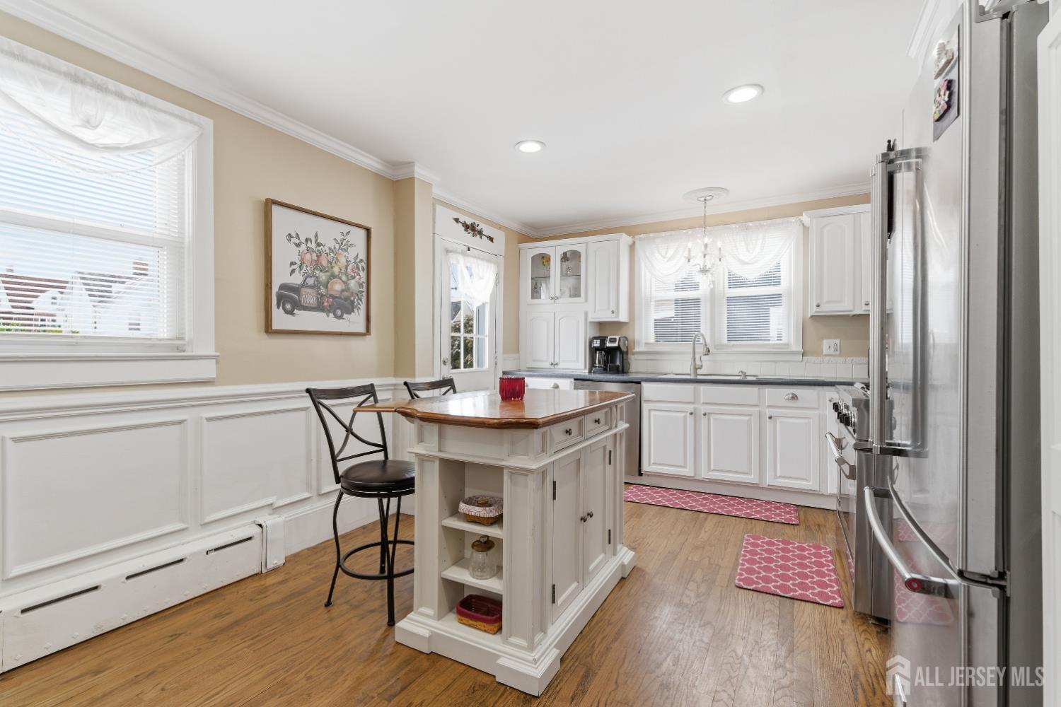 Welcome to 249 Second Street- a true South Amboy classic that blends timeless character with thoughtful updates in all the right places. This 3-bedroom, 1.5-bath Colonial has that hard-to-find warmth the moment you pull up, with inviting curb appeal and a front porch that practically calls for a rocking chair and a cup of coffee. Step inside and you'll immediately notice the craftsmanship- gorgeous built-in bookcases, rich hardwood flooring, and a stunning tray ceiling accented with crown and decorative molding that gives the home its unmistakable old-world charm. The layout flows comfortably, offering both defined spaces and an easy feel for everyday living. The kitchen is where old meets new in the best way. A spacious eat-in setup features a center island, pot filler, and a Viking stove that makes cooking feel like an experience, not a chore. Whether you're hosting or just enjoying a quiet night in, this space delivers. Upstairs, you'll find three well-sized bedrooms and a full bath complete with a jacuzzi-style tub, perfect for unwinding at the end of the day. There are fixed stairs leading to an attic, giving you incredible storage or potential for future use. Down below, the walkout basement adds even more flexibility. Comfort is covered year-round with two separate central A/C systems, and peace of mind comes with updates like the newer roof over the rear bedroom. Out back, you've got a fully fenced yard with a pergola and concrete patio- ideal for entertaining, relaxing, or both. Plus, a paver driveway provides rare off-street parking for up to three cars. Location-wise, it's tough to beat. Just a few short blocks to the NJ Transit train, waterfront park, YMCA, roller skating, and all the local spots that make South Amboy such a great place to live. Easy access to the Turnpike, Parkway, Routes 9, 35, 287, 440, and the Outerbridge makes commuting a breeze. This is the kind of home that doesn't come around often- full of character, loaded with features, and positioned in the perfect little town. CJMLS 2612775R