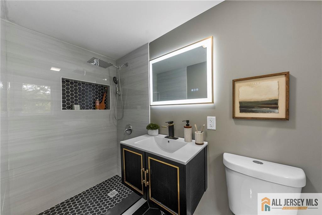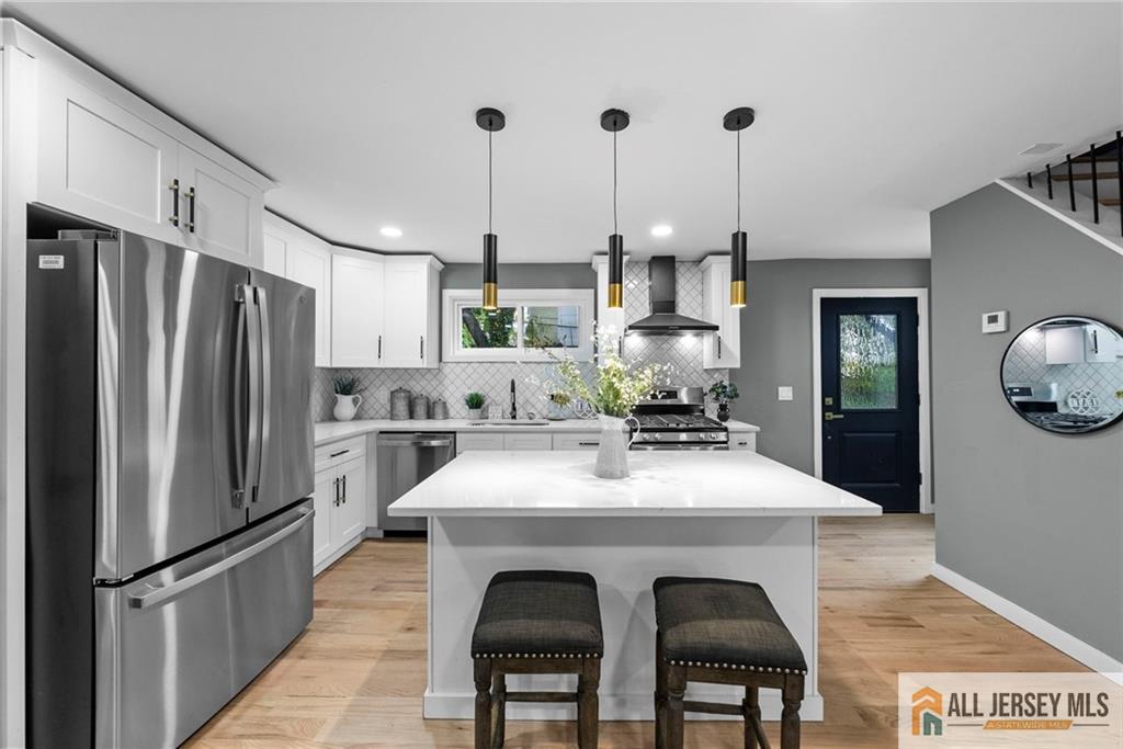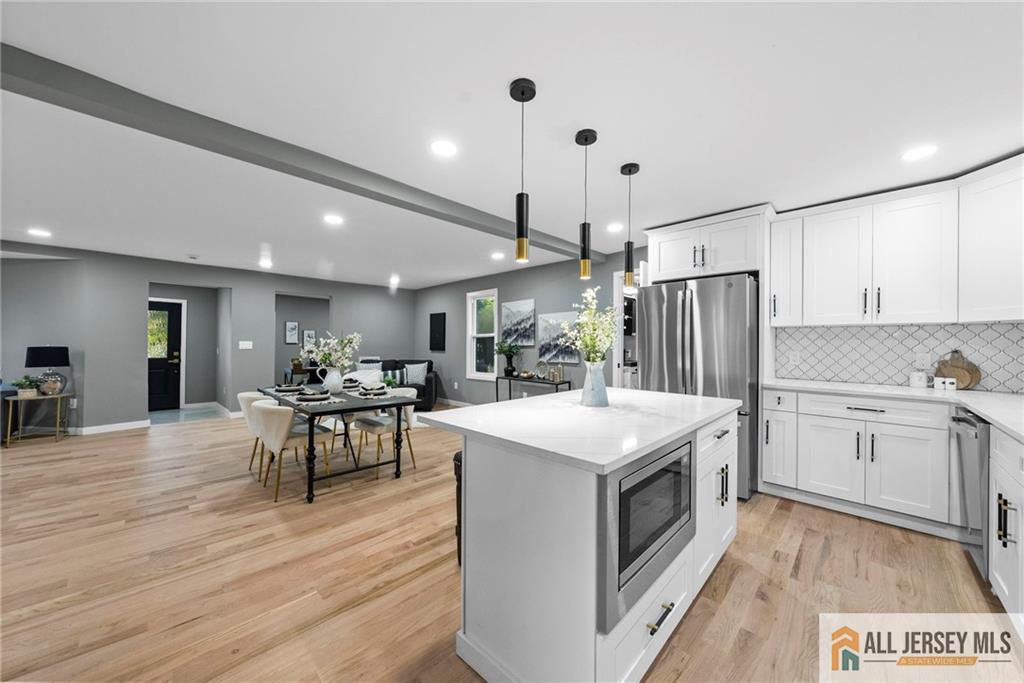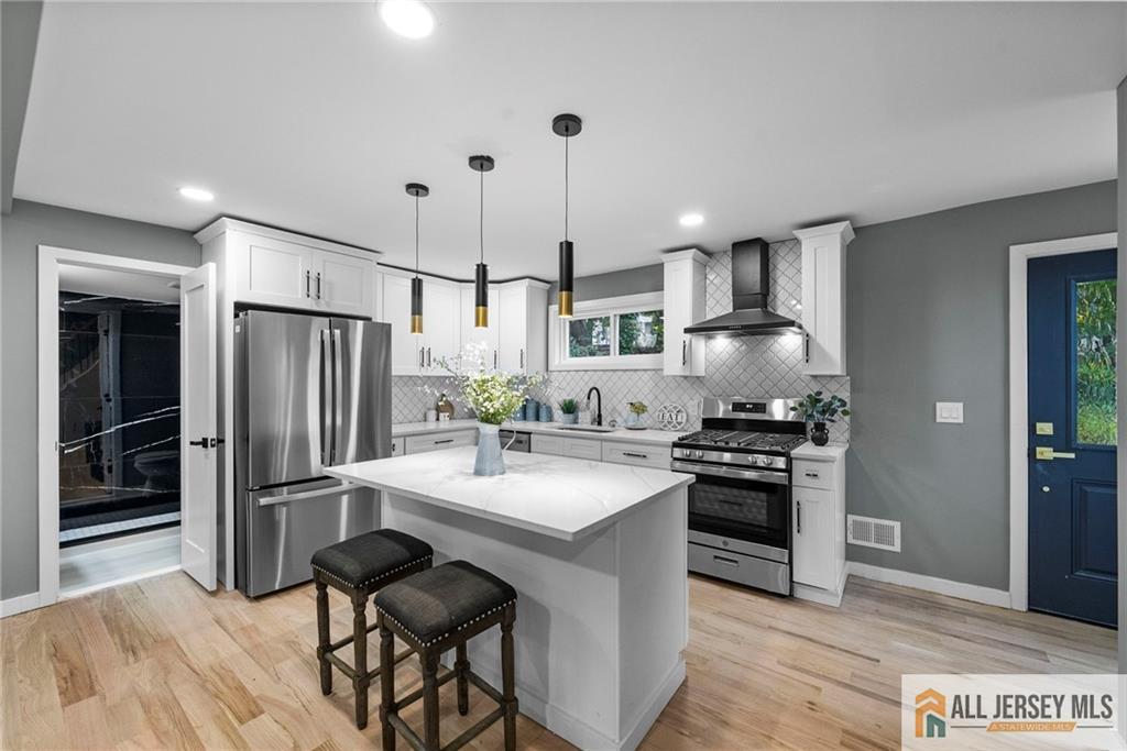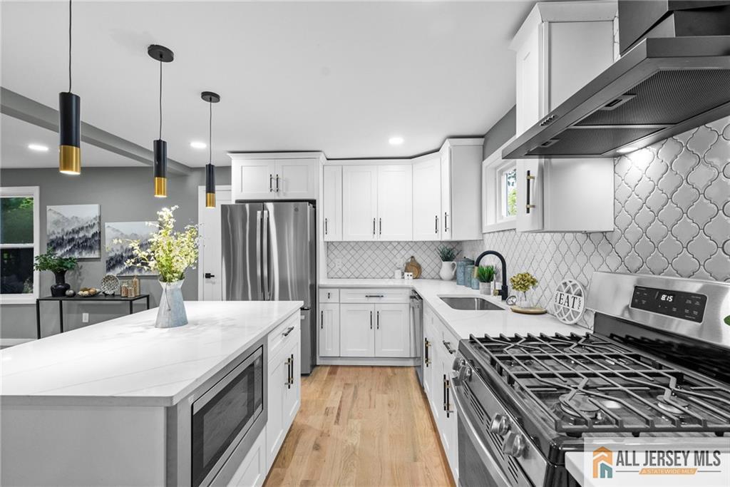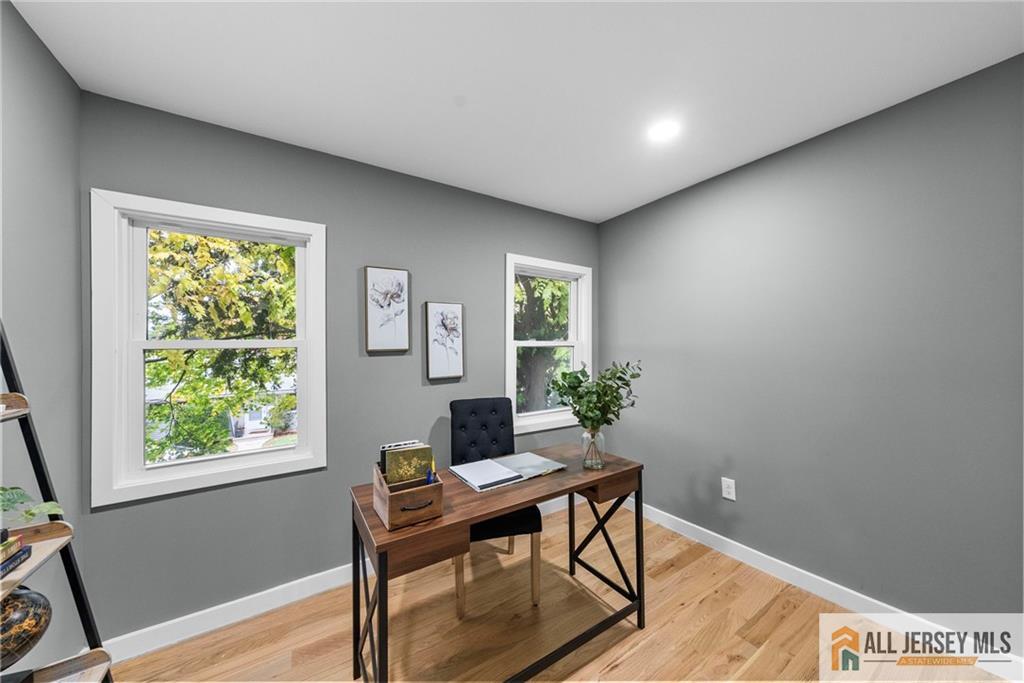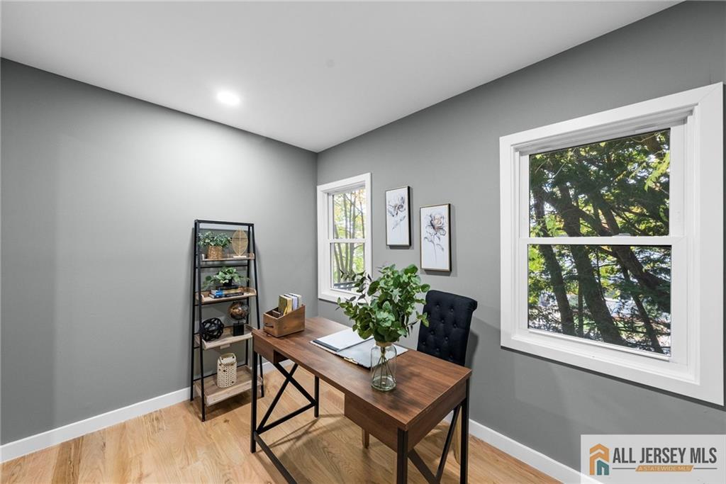 Welcome to this completely renovated move in ready home nestled on a quiet corner lot, offering a perfect blend of modern style and everyday comfort. Step inside to discover vaulted ceilings and rich hardwood floors that flow seamlessly throughout the open-concept living space. The modern kitchen features a large island with quartz countertops, premium finishes, and ample space for entertaining. Enjoy the flexibility of a first-floor office, ideal for working from home or use as a guest suite. With three full bathrooms, thoughtfully designed living areas, and a spacious layout, this home combines elegance with functionality. Outside, the oversized lot provides endless possibilities for outdoor living. Experience the best of contemporary design and comfort in a peaceful neighborhood setting CJMLS 2660787M