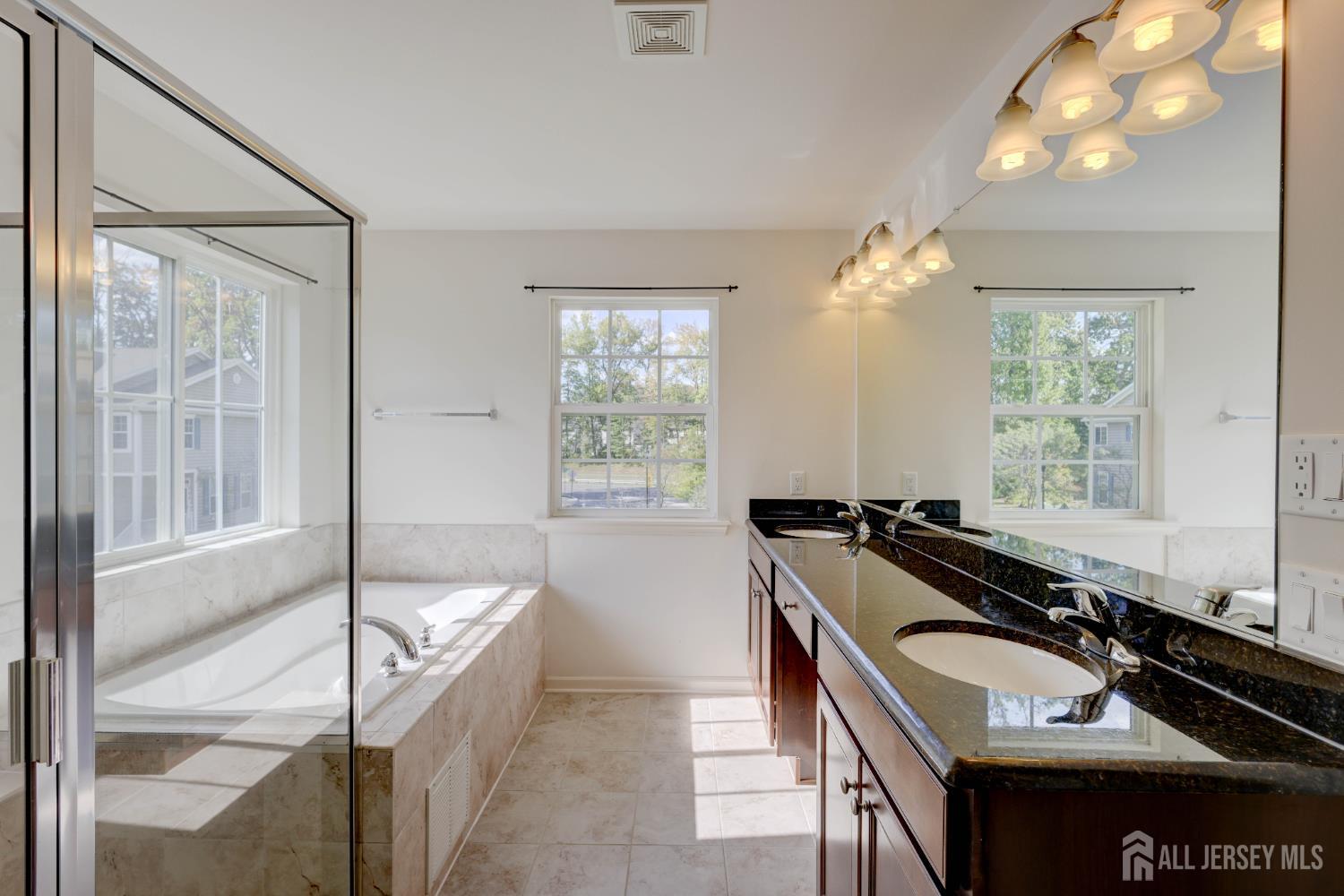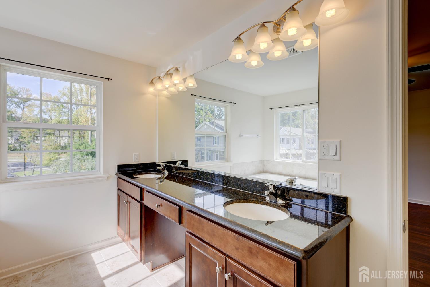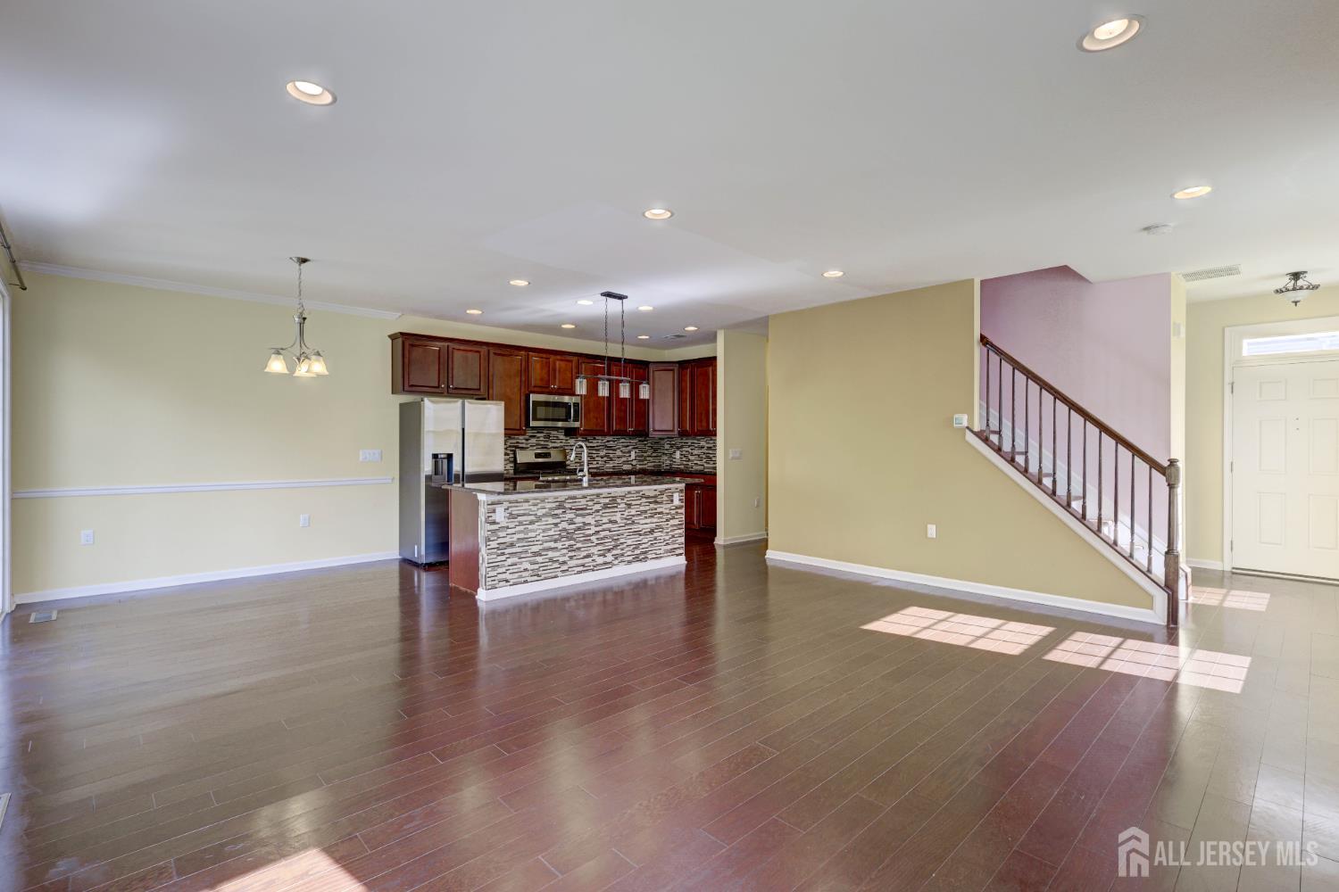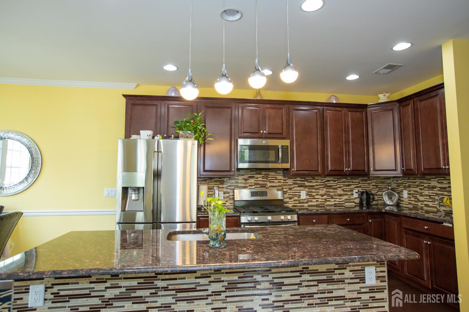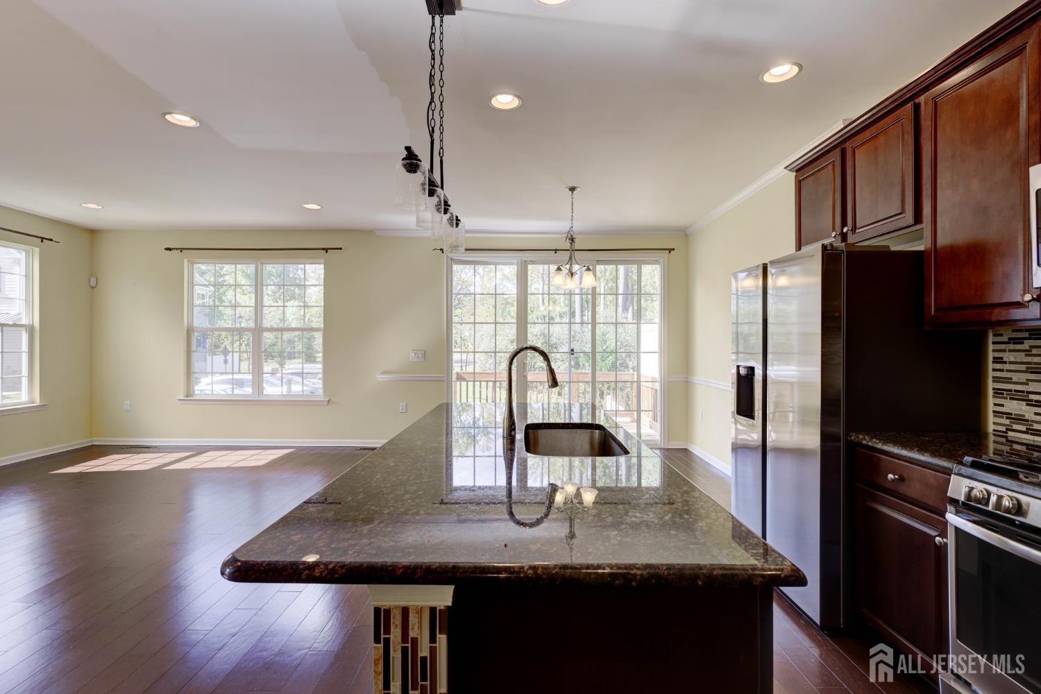Bright and beautiful 2017-built corner townhome in Cambridge Crossing offering a gourmet kitchen with granite countertops, center island, huge pantry, and upgraded stainless steel appliances, elegant hardwood floors with recessed lighting in the family and dining rooms, a convenient upstairs laundry, a large fully finished basement with full bath, upgraded bathrooms with granite vanities and 36'' cabinets, freshly painted interiors, upgraded electrical for ceiling fans, a wired security system, a two-car garage, abundant natural sunlight, and an excellent location close to top-rated South Brunswick schools with Monmouth Junction Elementary school, NYC trains/buses, major highways, shopping, and restaurants. CJMLS 2603997R