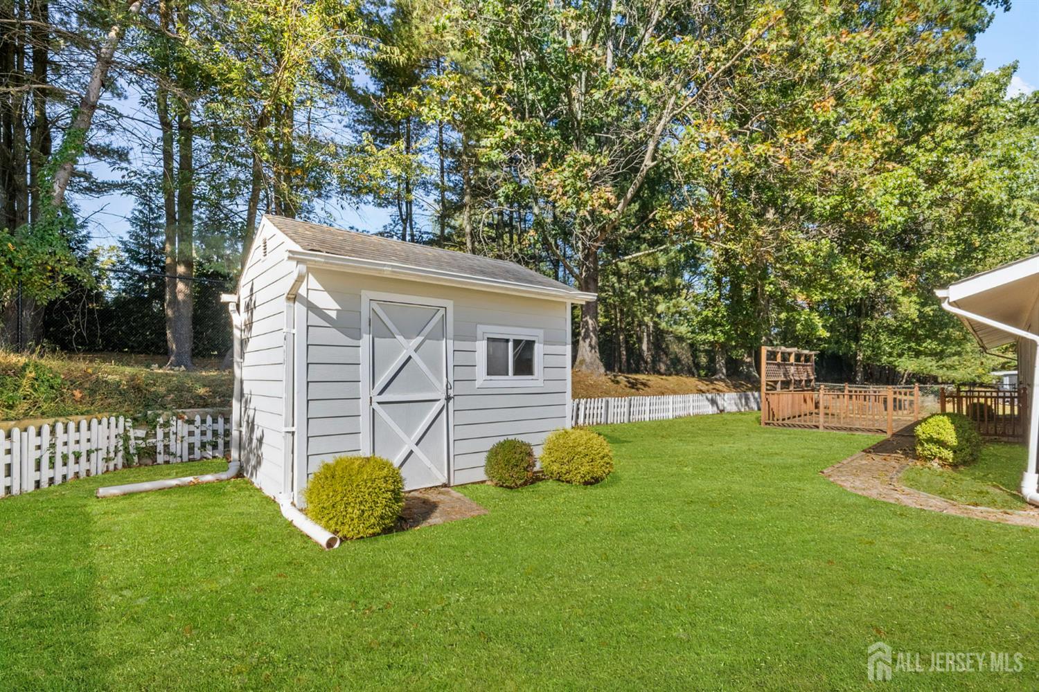 Welcome Home to Kendall Park! This well-cared-for home is ready for its next chapter. Recently refreshed with brand-new paint throughout and new carpeting, it offers an opportunity to make it truly your own.Enjoy the ease of one-floor living in a spacious layout featuring a bright living and family room combination that flows into the eat-in kitchen. A flexible bonus space can serve as a dining area, home office, or playroom whatever best suits your lifestyle. The home offers three comfortable bedrooms and 1.5 baths, including a primary suite with a wlk-in closet and private half bath. A separate laundry room provides access to the one-car garage, adding convenience and functionality.Step outside to a deck surrounded by mature trees and a handy storage shed perfect for relaxing, entertaining, or gardening in your backyard. Nestled in a quiet, established neighborhood, this home offers comfort and accessibility with easy access to Route 1, Route 27, train stations, and bus lines to NYC. Don't miss the chance to make this Kendall Park home your own full of potential and ready to welcome its next owners! Lawn photos have been virtually enhanced. CJMLS 2605627R