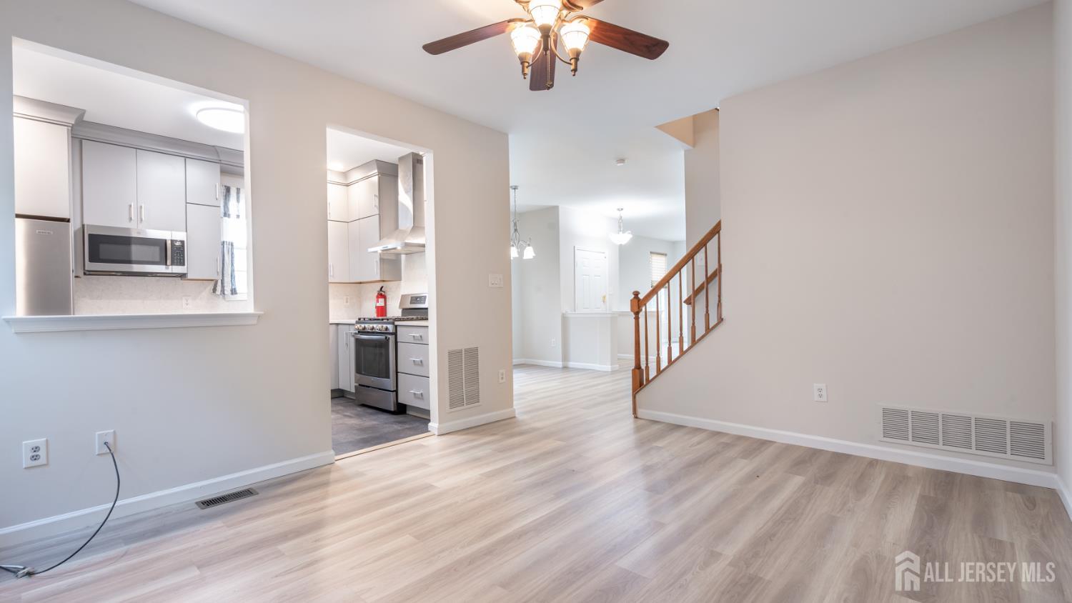 Comfort and convenience await you in this beautifully renovated end-unit townhome located in the highly desirable Summerfield community. This bright and airy 3 bedroom, 2.5 bath home includes a garage and a versatile basement that offers both recreational space and ample storage. Freshly painted and meticulously upgraded throughout, the main level welcomes you with a warm foyer that opens to a sunlit living room with new blinds and high ceilings, a dedicated dining room, and a family room featuring a wood-burning fireplace for cozy nights in . The updated kitchen boasts new cabinetry, quartz countertops, and stainless steel appliances, with a sliding door that leads to your private deck and patio: perfect for relaxing or entertaining. Upstairs, you'll find newly installed carpeting, three spacious bedrooms, fully renovated bathrooms, and a conveniently located upstairs laundry room. The primary suite impresses with high ceilings, a beautifully updated bathroom with a color-changing tub, giving every bath a spa like feel. A stand alone shower, and a custom built closet highlights the craftsmanship and care put into this home. The partially finished basement offers the best of both worlds, a comfortable recreation area with recess lighting and a separate zone for storage. Enjoy the ideal community location of Summerfield with private amenities, including a clubhouse with a fitness center, an outdoor pool, and playgrounds. Located within the highly regarded South Brunswick School District and close to major highways, shopping, and the park-and-ride. Come see this rare opportunity to own a home that combines thoughtful design, modern living, and a premier South Brunswick address. CJMLS 2607727R