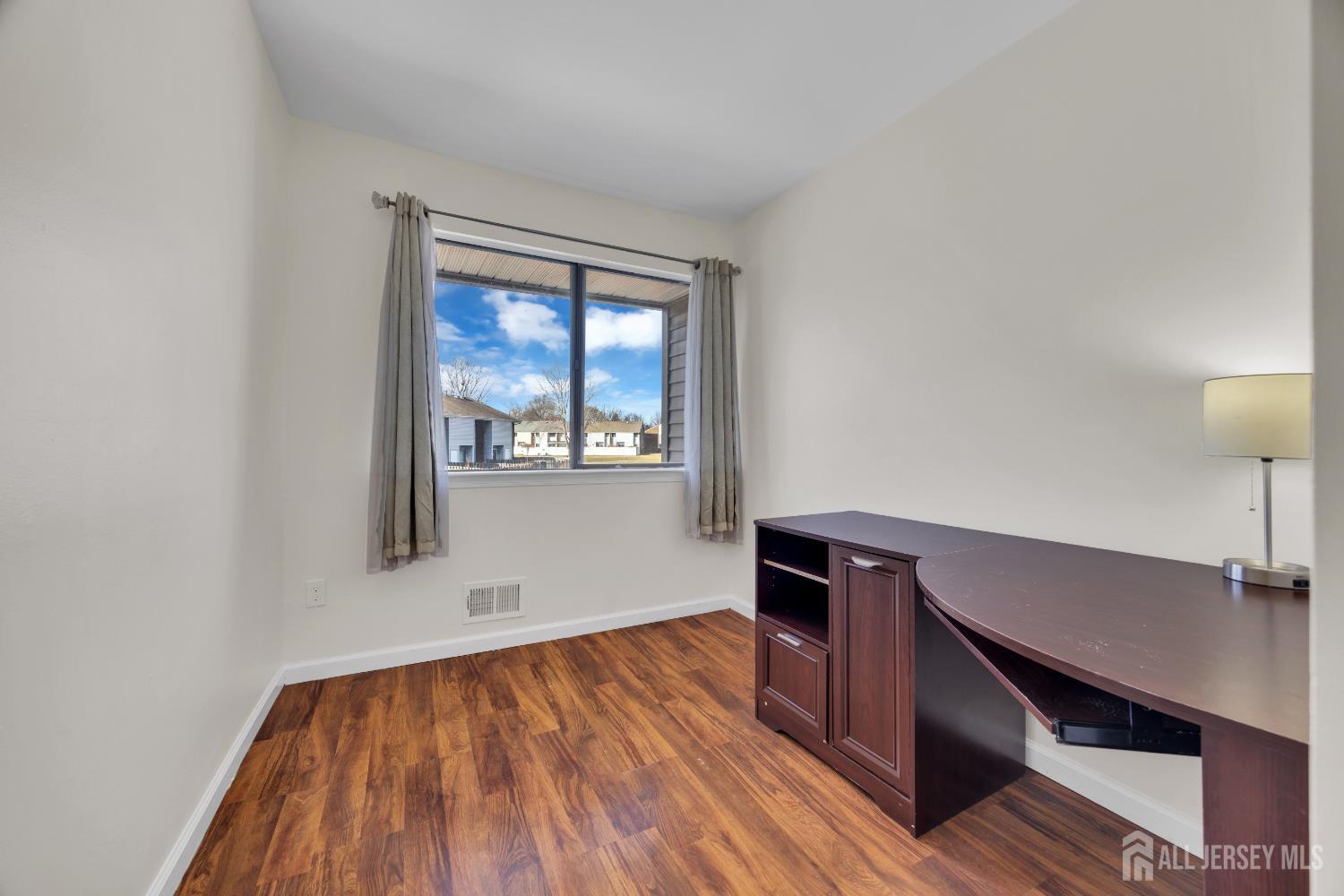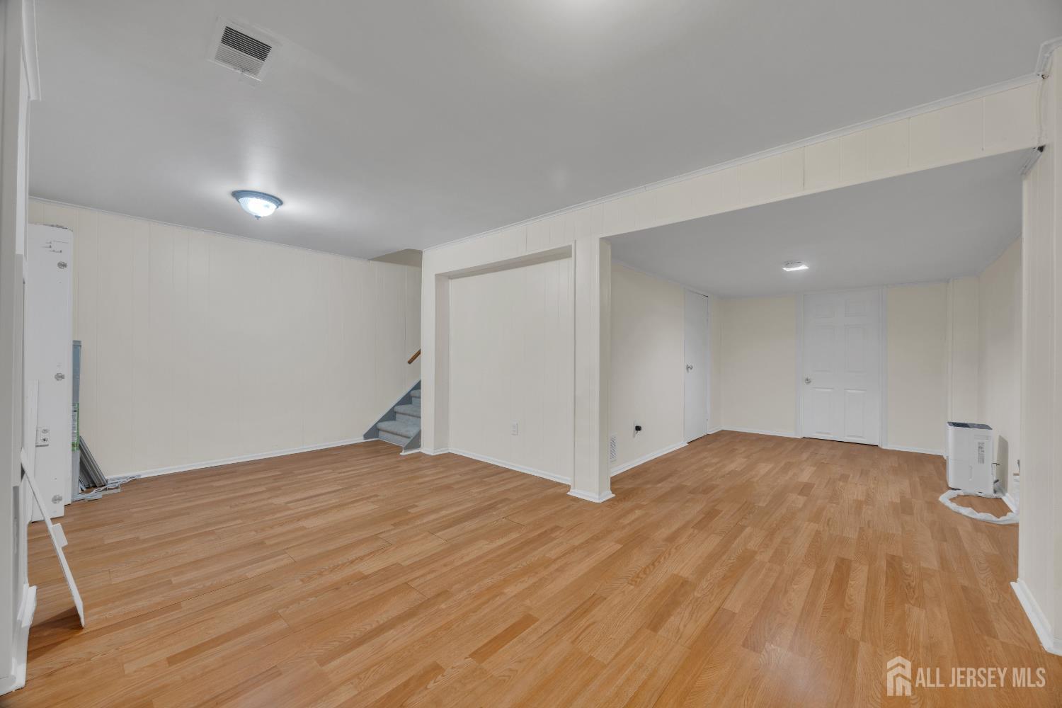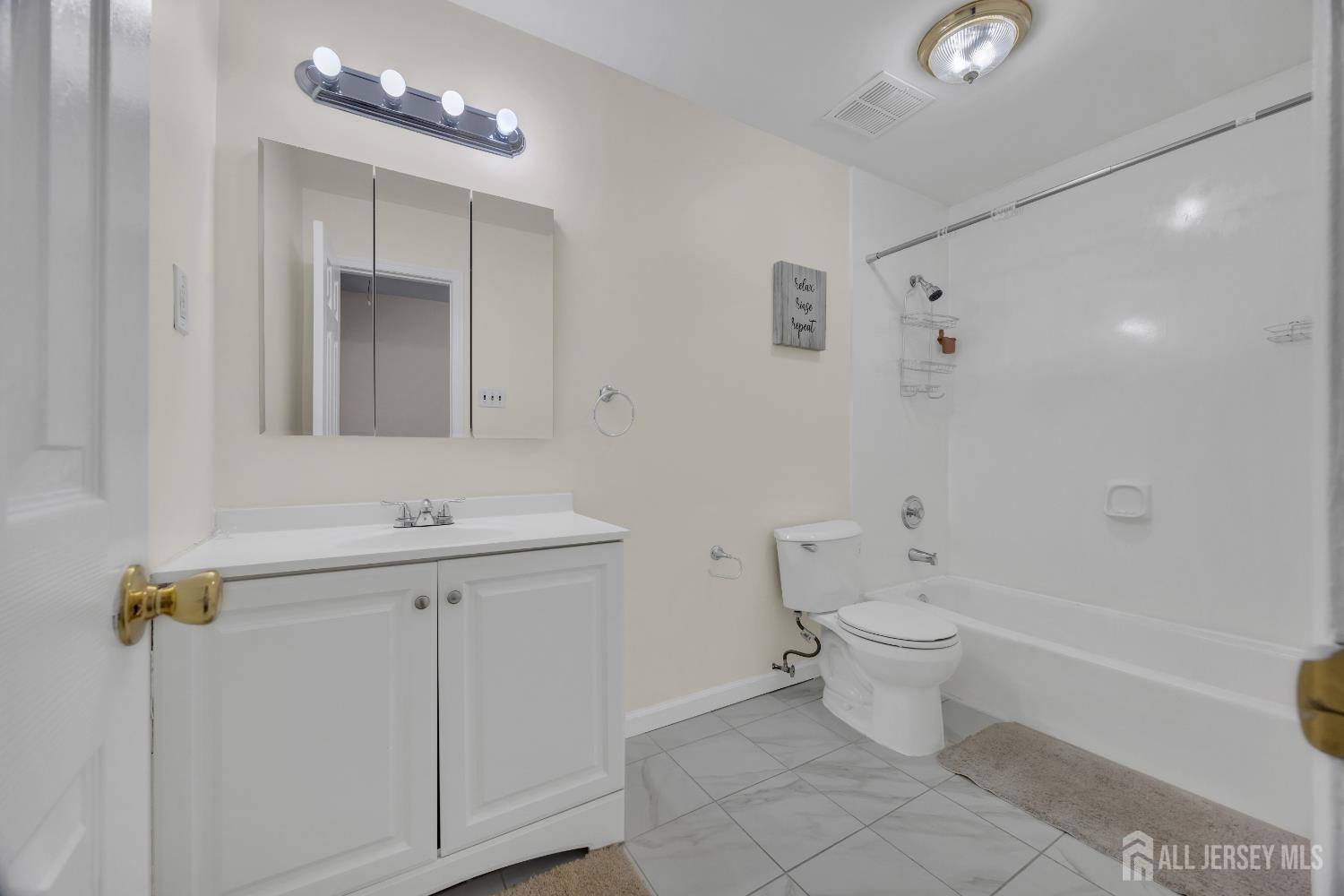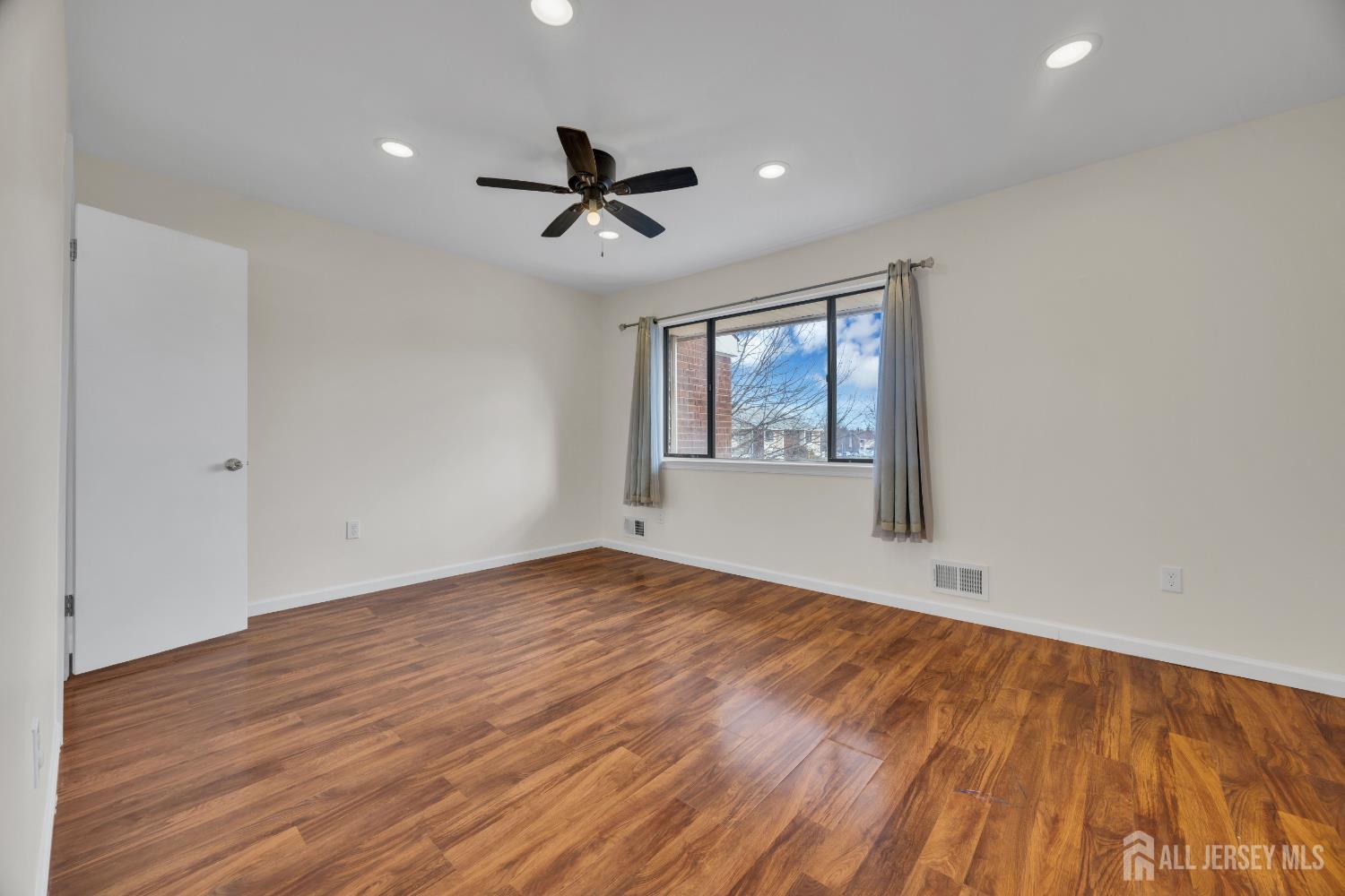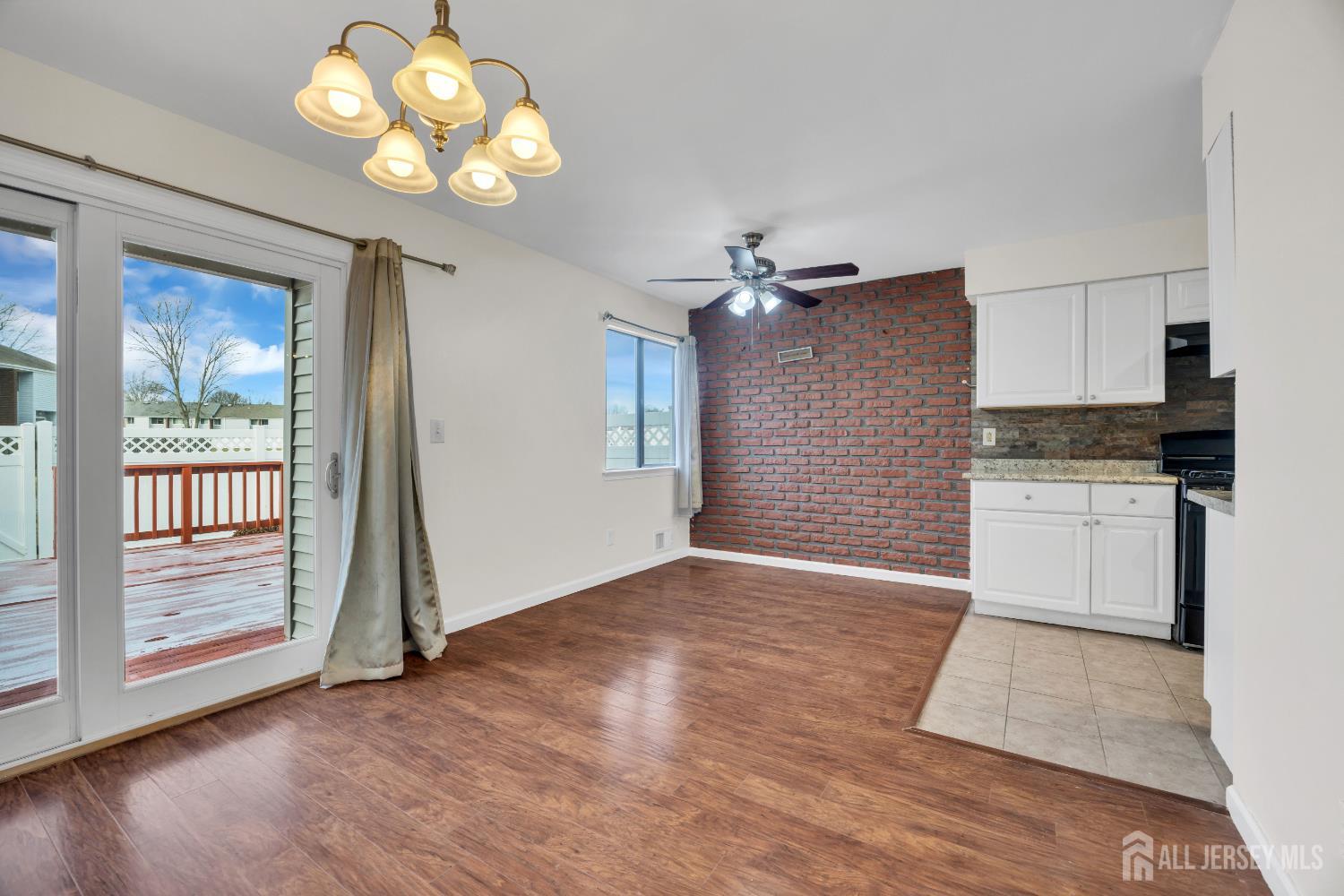 Welcome to this spacious 3 bedroom 2.5 bath townhouse with a comfortable three-level layout. The main floor includes a bright living room, dining area, half bath, and a kitchen with white cabinetsand tile flooring. Sliding doors lead to a private deck for outdoor use. The second floor offers three bedrooms with closet storage and two full baths, including a primary bath. The finished basement provides flexible space along with a separate laundry area. Additional features include updated flooring, neutral paint, and assigned parking. The home is close to shopping, local amenities, and the 8A Park & Ride with direct bus service to NYC. CJMLS 2609191R