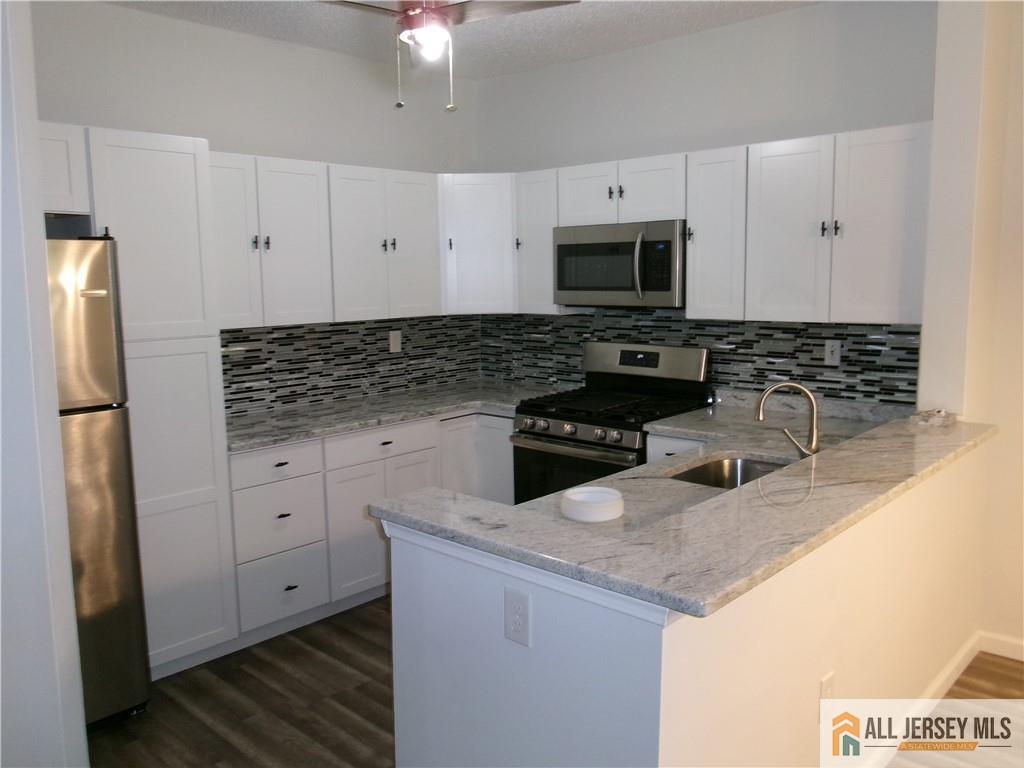 Beautiful ground floor Maple model condo with newer kitchen, bathrooms, windows HVAC and appliances. Woodburning fireplace and vinyl flooring, great location, backs to wooded lot. CJMLS 2660539M