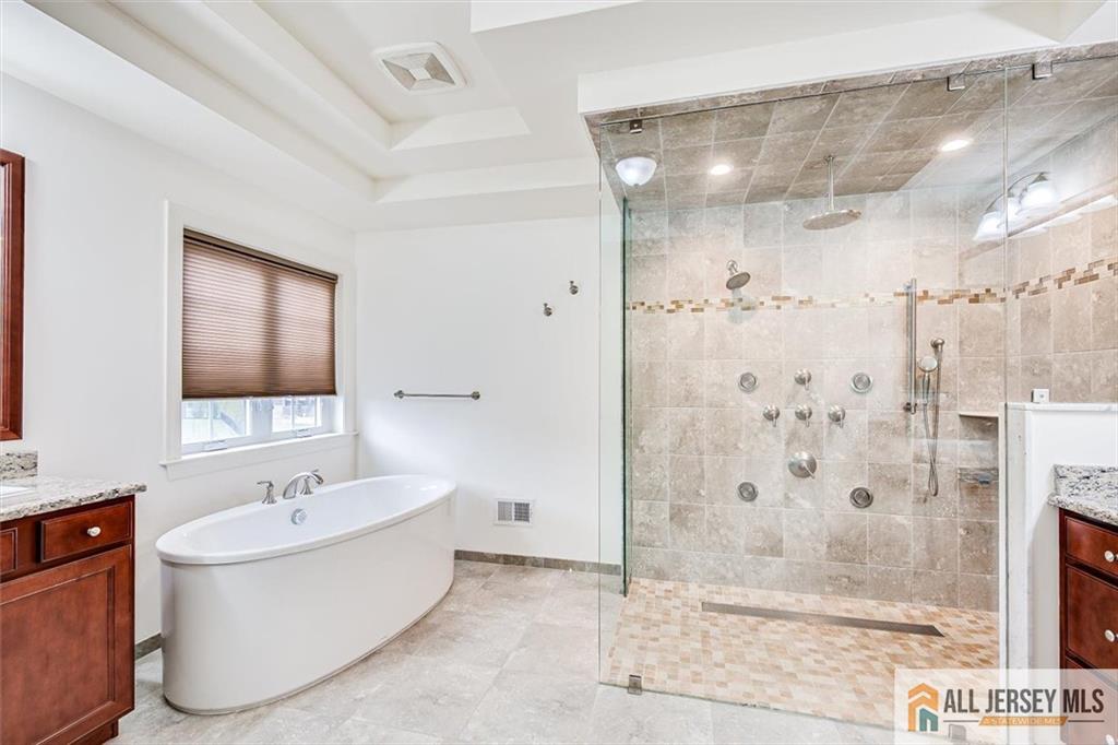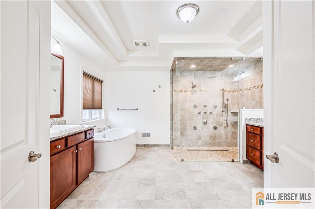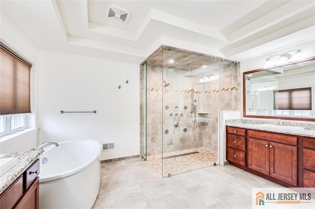 Exceptional 5-Bedroom, 5.1-Bath Home in the Highly Sought-After Points of Woods Community in South Brunswick. Welcome home to a beautiful blend of sophisticated design and generous living spaces. This meticulously maintained young residence offers 5 spacious bedroomsincluding a main-level bedroom with an ensuite bathideal for guests or multigenerational living. With 5.1 elegantly appointed bathrooms, every corner of this home is crafted for comfort, convenience, and modern lifestyles. Step inside to an open, airy layout featuring a formal living room, a sun-filled family room, and an elegant dining room with abundant natural light. The dining area flows seamlessly into the chef-inspired kitchenan entertainer's dreamcomplete with premium stainless steel appliances, tall cabinetry, granite countertops, and a large center island perfect for gatherings or everyday meals. Gleaming hardwood floors run across both levels, adding warmth and refinement. The family room offers serene views of the backyard and provides a flexible space for casual lounging or quiet moments. Cathedral ceilings and a welcoming fireplace create a grand yet inviting atmosphere that anchors the main floor. From here, step effortlessly into the beautifully landscaped backyard, creating a seamless indoor-outdoor connection ideal for hosting or relaxing. The primary suite is a private sanctuary featuring two spacious walk-in closets and a stunning spa-inspired ensuite bathroom with a freestanding soaking tub, dual undermount sinks, and premium finishes. The additional bedrooms are generously sized, including a well-appointed princess suite. The finished lower level elevates the home's living space even further, offering a stylish full bathroom, entertainment area, and theatre room. Whether for fitness routines, movie nights, weekend gatherings, or everyday versatility, this level is designed to meet every need. Step outside to your professionally landscaped backyard oasisperfect for al fresco dining, evening relaxation, and year-round enjoyment under the stars. Additional features include a convenient second-floor laundry room, a spacious three-car garage, public water and sewer, and placement within the top-rated South Brunswick School District. This home seamlessly blends refined elegance, thoughtful upgrades, and day-to-day livabilitydelivering an extraordinary lifestyle in one of South Brunswick's most desirable neighborhoods. CJMLS 2660893M