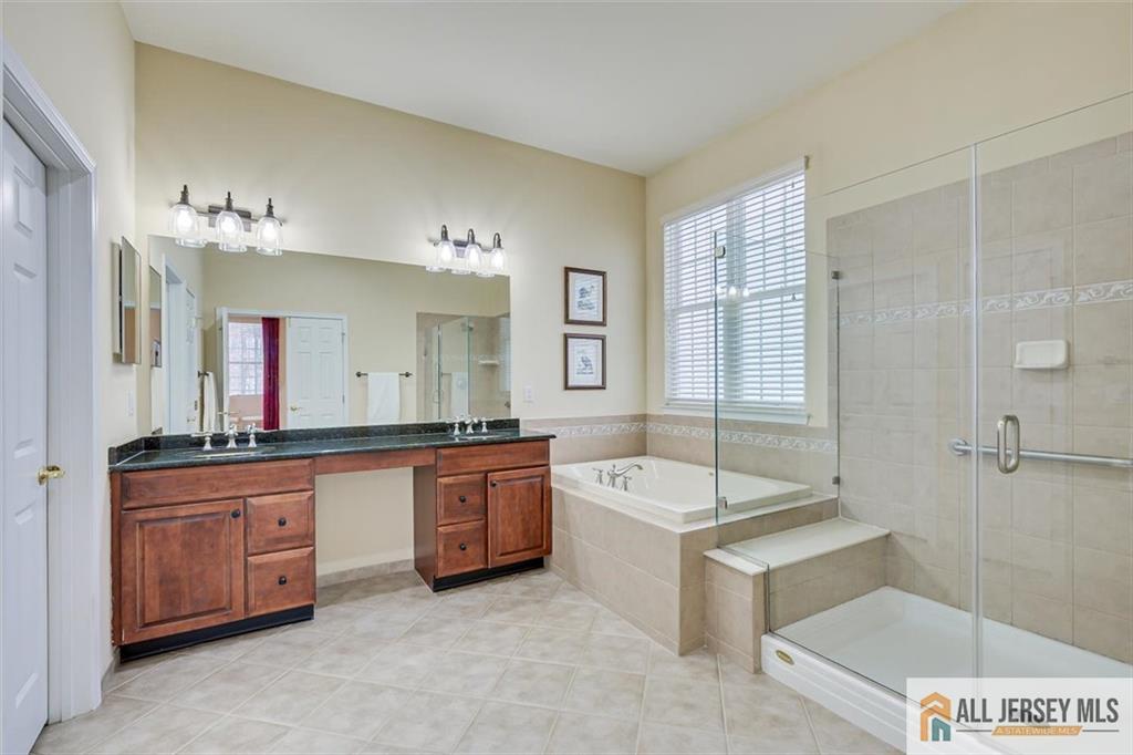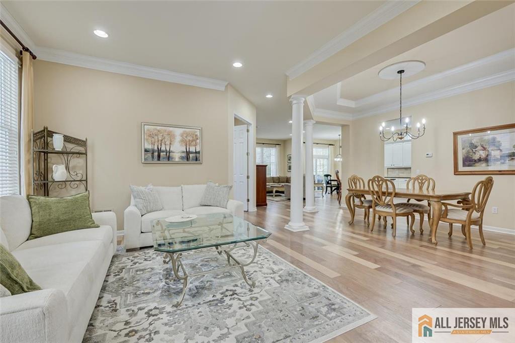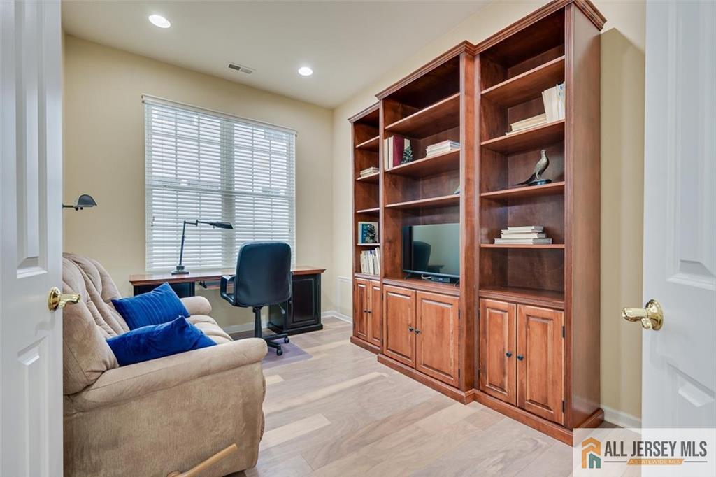 Welcome to the lifestyle you've been waiting for in this beautifully maintained East facing 2-bedroom, 2-bath single-family home nestled within the 55+ development of Princeton Manor. From the moment you step inside, you'll appreciate a layout that simply makes sense thoughtfully designed with 10' ceilings, recessed lighting, walnut floors and an open concept that connects the living and dining spaces with ease. The elegant dining room with tray ceiling transitions seamlessly into the inviting living room. The family room features a custom gas fireplace, creating a space that feels both spacious and welcoming. The kitchen is truly the heart of the home, offering granite countertops, tiled backsplash, stainless steel appliances, abundant cabinetry, and a bright breakfast nook with sliding glass doors leading to a private patio backing to peaceful woods the perfect spot to relax or entertain. A dedicated office provides flexibility for hobbies or working from home. The primary suite serves as a private retreat with two walk-in closets and a spa-like bath featuring a jacuzzi tub and large stall shower. A second bedroom and full bath provide a comfortable space for guests. The attached two-car garage with epoxy flooring adds convenience and storage. Entering the home from the garage, you will find a closet, kitchen pantry and designated laundry room with window. Beyond the home itself, enjoy an active and engaging lifestyle with community amenities including a clubhouse, outdoor pool, bocce and tennis courts, walking paths, fitness center, game room, and sauna offering endless opportunities to stay social, active, and connected. This is low-maintenance living in a setting that truly feels like home. CJMLS 2661361M