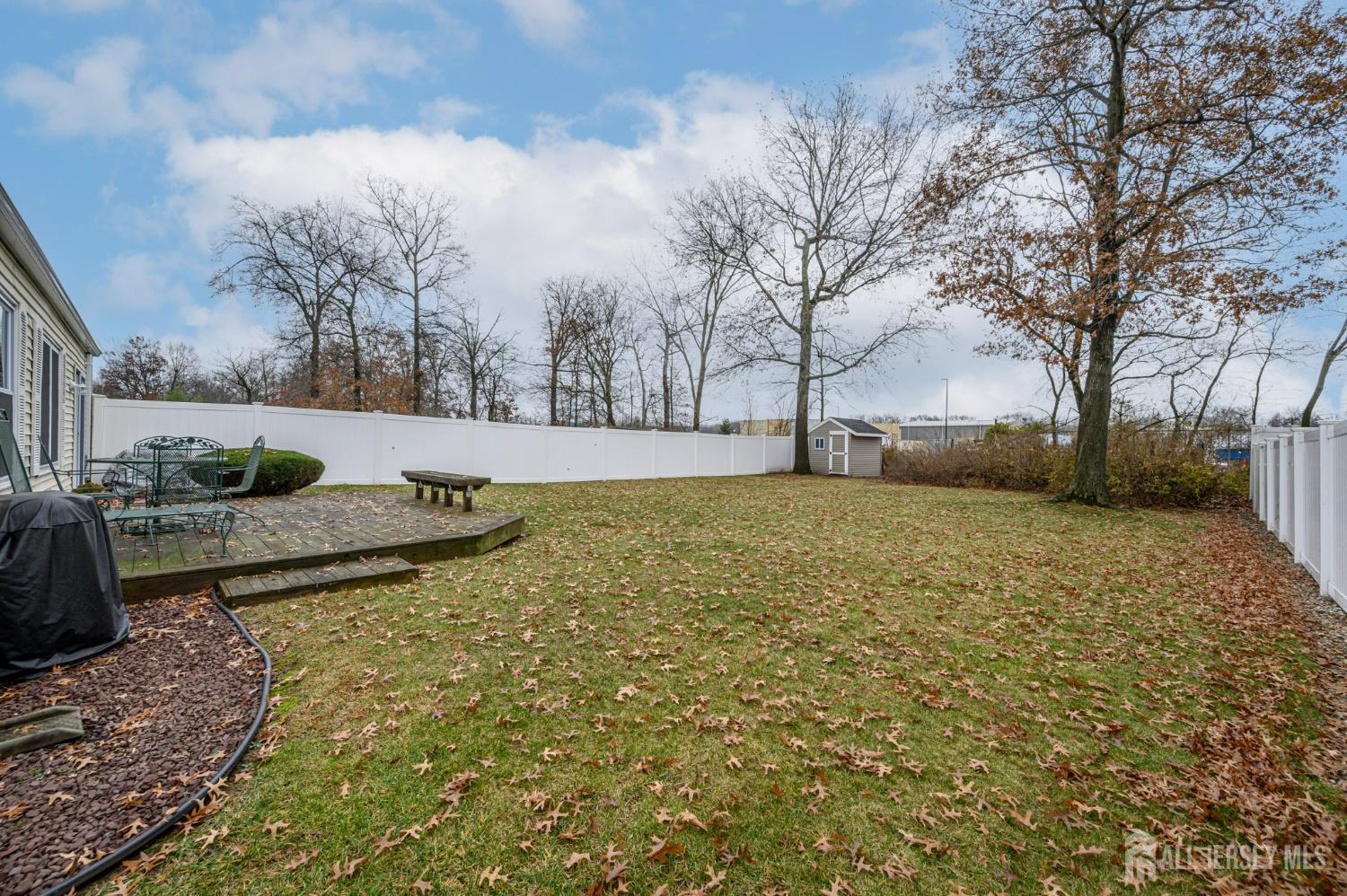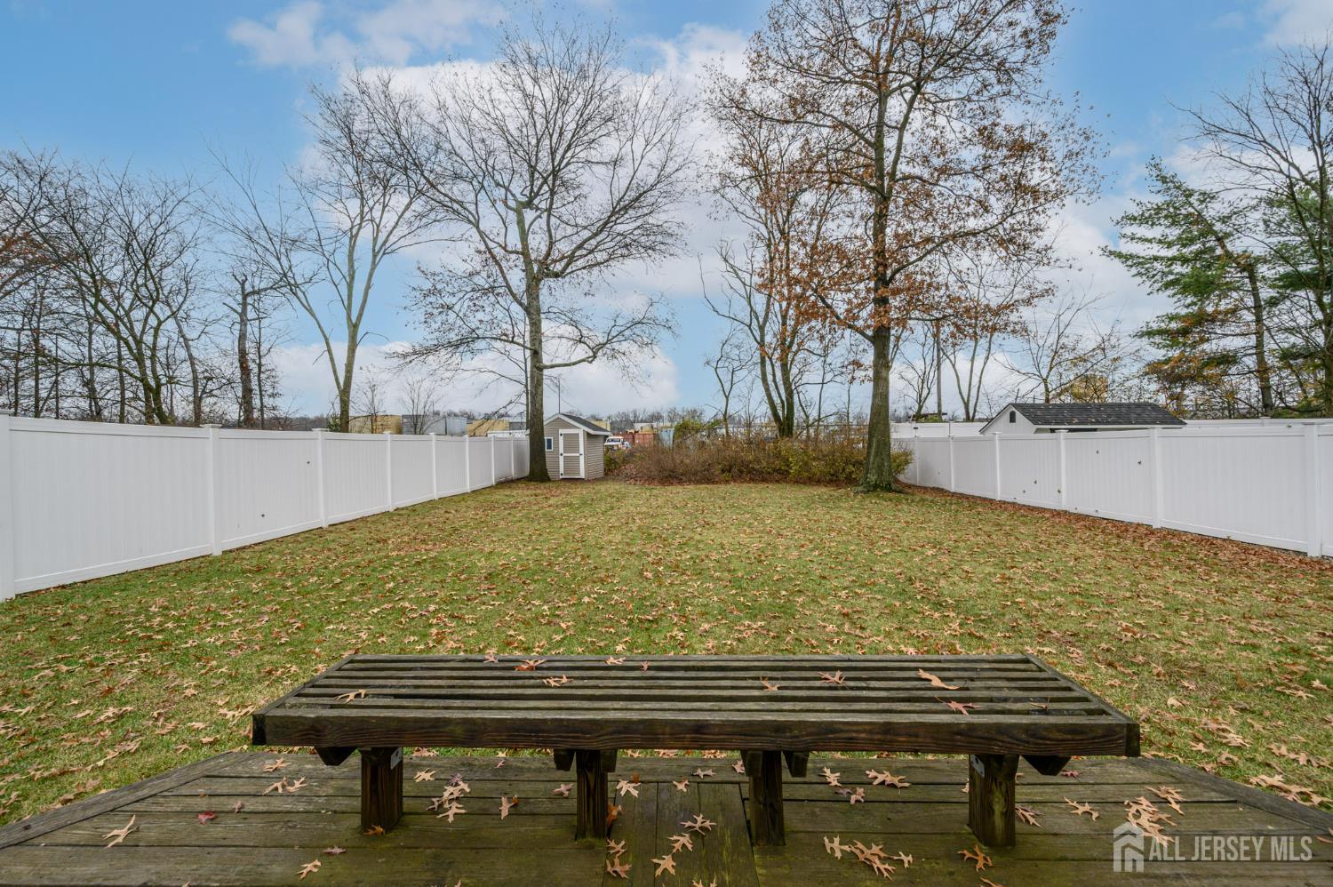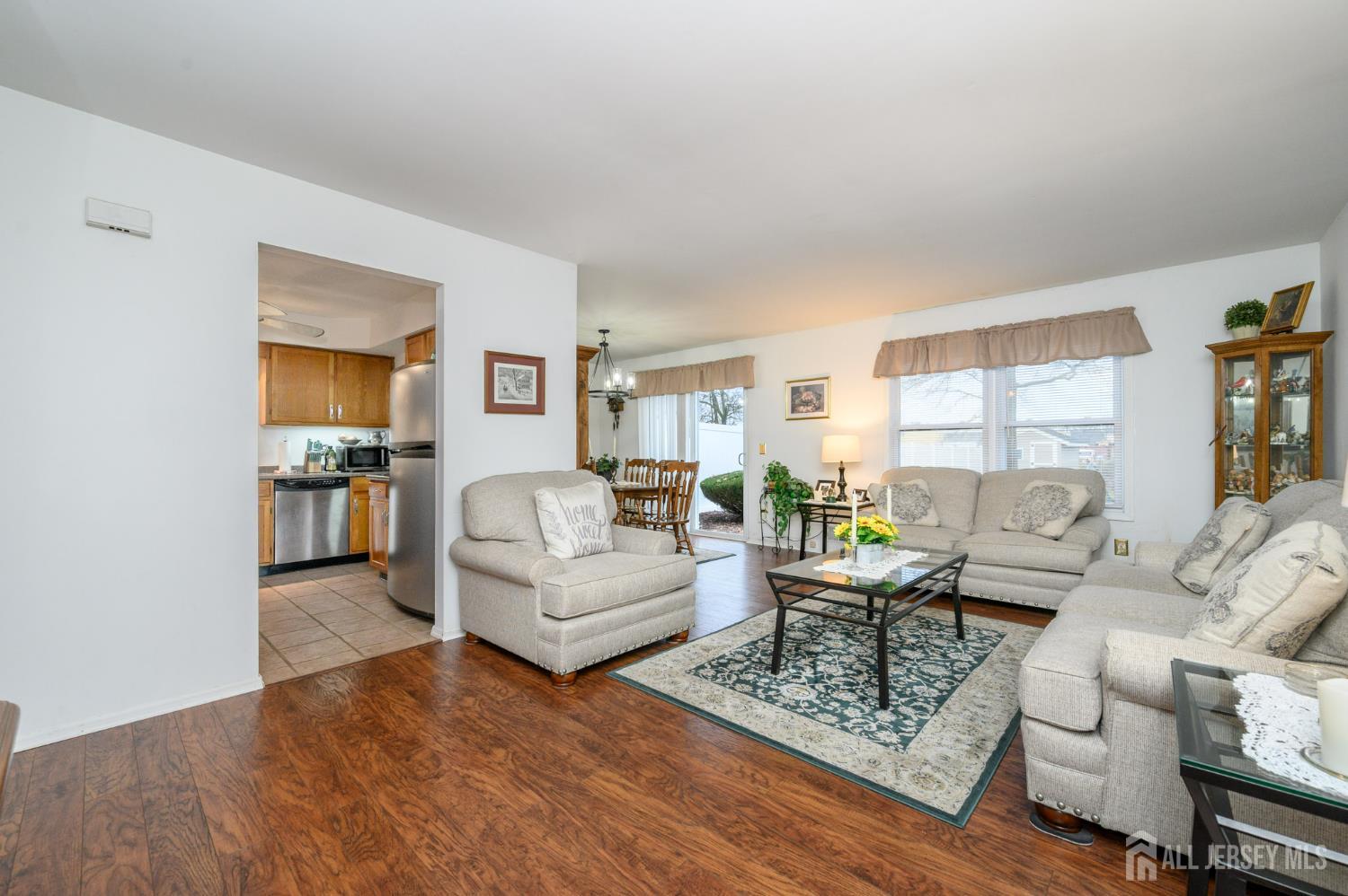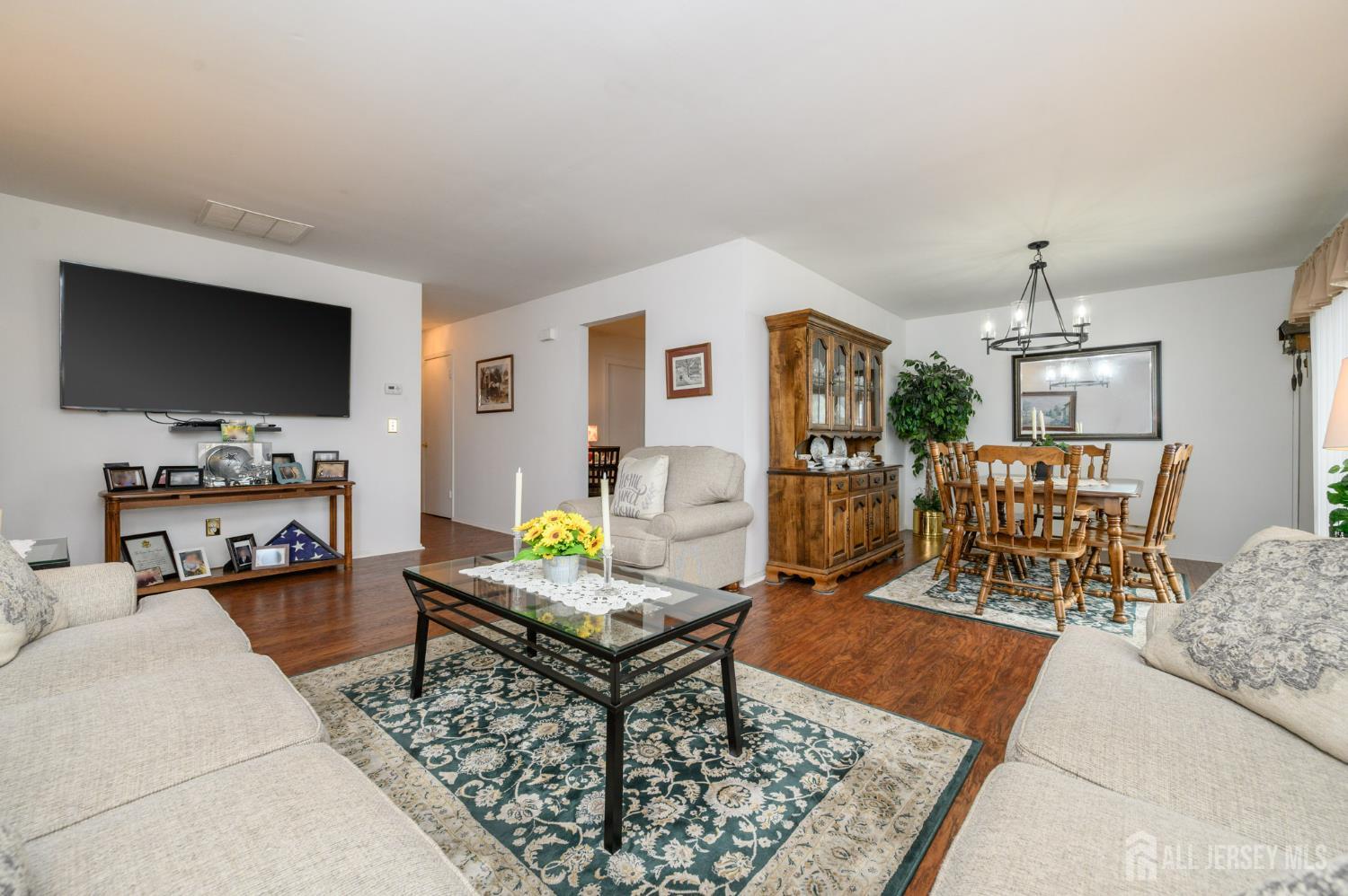 Home Sweet Home! Wood Hollow Estates premieres this lovely 3 Bed 2 Bath Ranch with Master Suite and 1 Car Garage, ready and waiting for you! Well maintained in a sought after South Plainfield neighborhood with plenty of upgrades all through, just pack your bags and move right in. Charming covered rocking chair front porch welcomes you into a light and bright interior with luxury laminate flooring that shines, a crisp neutral palette that is easy to customize, and plenty of natural light all through. Accessible open floorplan makes for comfortable living and entertaining, featuring a lovely living room that flows seamlessly into the sun soaked dining room. Sliders here open to your own private deck, great for al fresco dining. Down the hall, find the main renovated full bath, along with 3 generous bedrooms, inc the blissful Master Suite. MBR boasts its own private, renovated ensuite bath with stall shower. Park-like backyard with deck and brand new storage shed is your blank canvas, with plenty of extra space to expand and play, partially fenced-in for your privacy and comfort. 1 car garage with new garage door offers ample guest parking. Upgrades inc NEW windows (1 yr), NEW Central Air, Newer furnace (4 yrs), New hot water heater, and newer gutters/roof (12 yrs). This charming property backs to woods with no neighbors, ensuring peace and privacy year round. Conveniently located to parks, shopping, dining and more. Don't miss out! Claim your slice of South Plainfield today! CJMLS 2607973R
