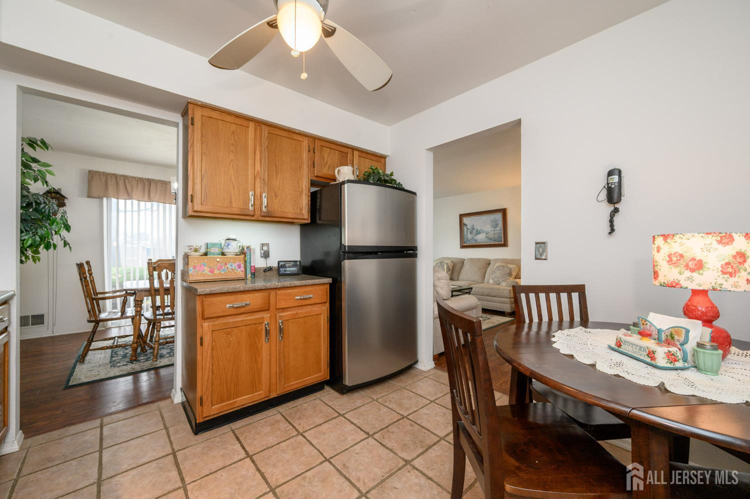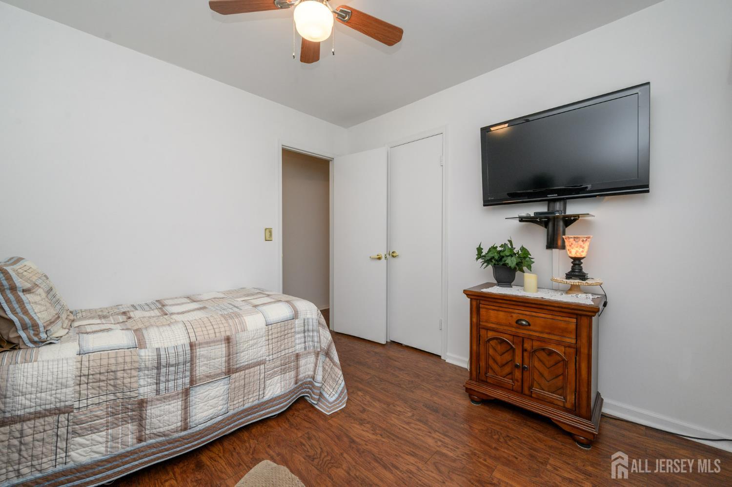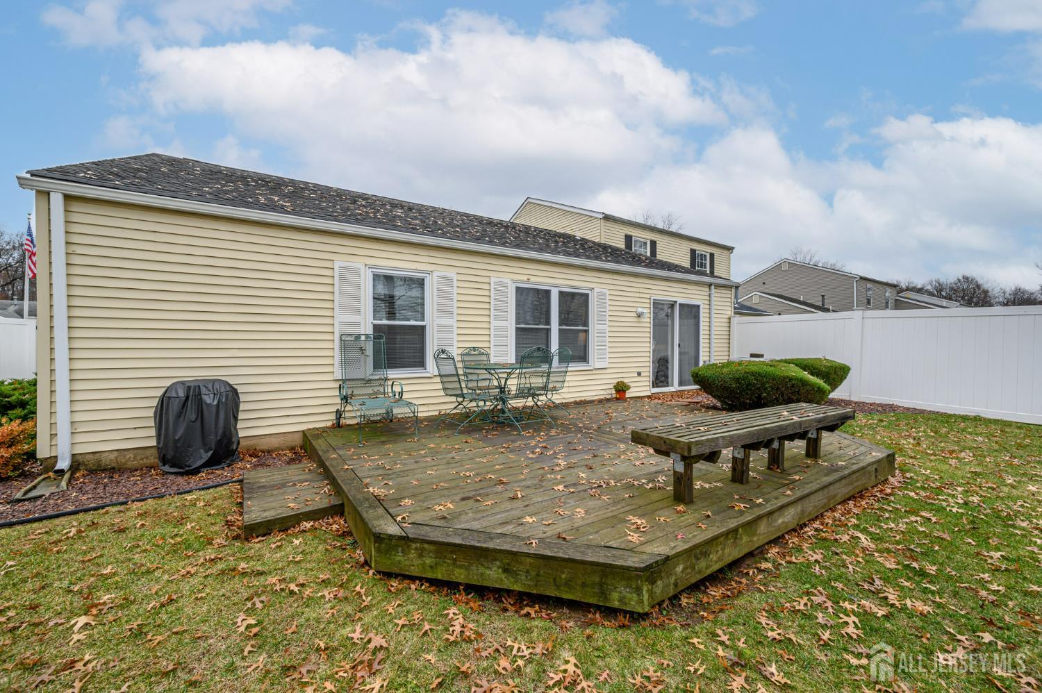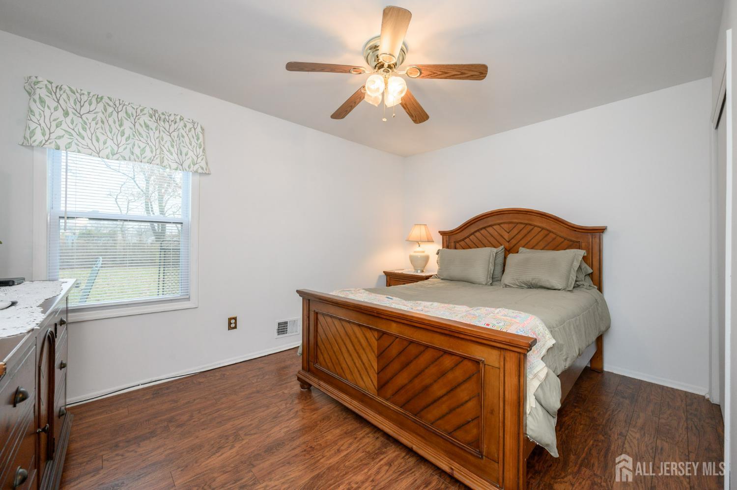 Home Sweet Home! Wood Hollow Estates premieres this lovely 3 Bed 2 Bath Ranch with Master Suite and 1 Car Garage, ready and waiting for you! Well maintained in a sought after South Plainfield neighborhood with plenty of upgrades all through, just pack your bags and move right in. Charming covered rocking chair front porch welcomes you into a light and bright interior with luxury laminate flooring that shines, a crisp neutral palette that is easy to customize, and plenty of natural light all through. Accessible open floorplan makes for comfortable living and entertaining, featuring a lovely living room that flows seamlessly into the sun soaked dining room. Sliders here open to your own private deck, great for al fresco dining. Down the hall, find the main renovated full bath, along with 3 generous bedrooms, inc the blissful Master Suite. MBR boasts its own private, renovated ensuite bath with stall shower. Park-like backyard with deck and brand new storage shed is your blank canvas, with plenty of extra space to expand and play, partially fenced-in for your privacy and comfort. 1 car garage with new garage door offers ample guest parking. Upgrades inc NEW windows (1 yr), NEW Central Air, Newer furnace (4 yrs), New hot water heater, and newer gutters/roof (12 yrs). This charming property backs to woods with no neighbors, ensuring peace and privacy year round. Conveniently located to parks, shopping, dining and more. Don't miss out! Claim your slice of South Plainfield today! CJMLS 2607973R